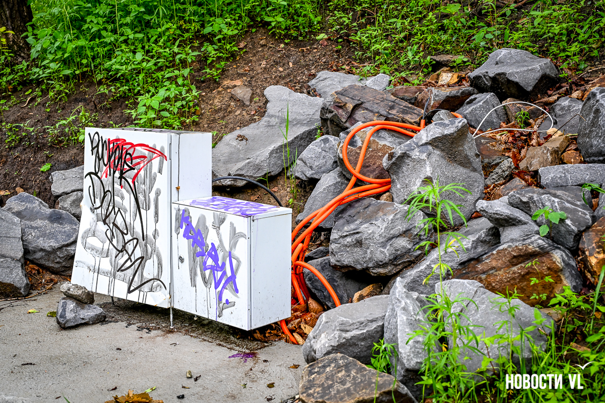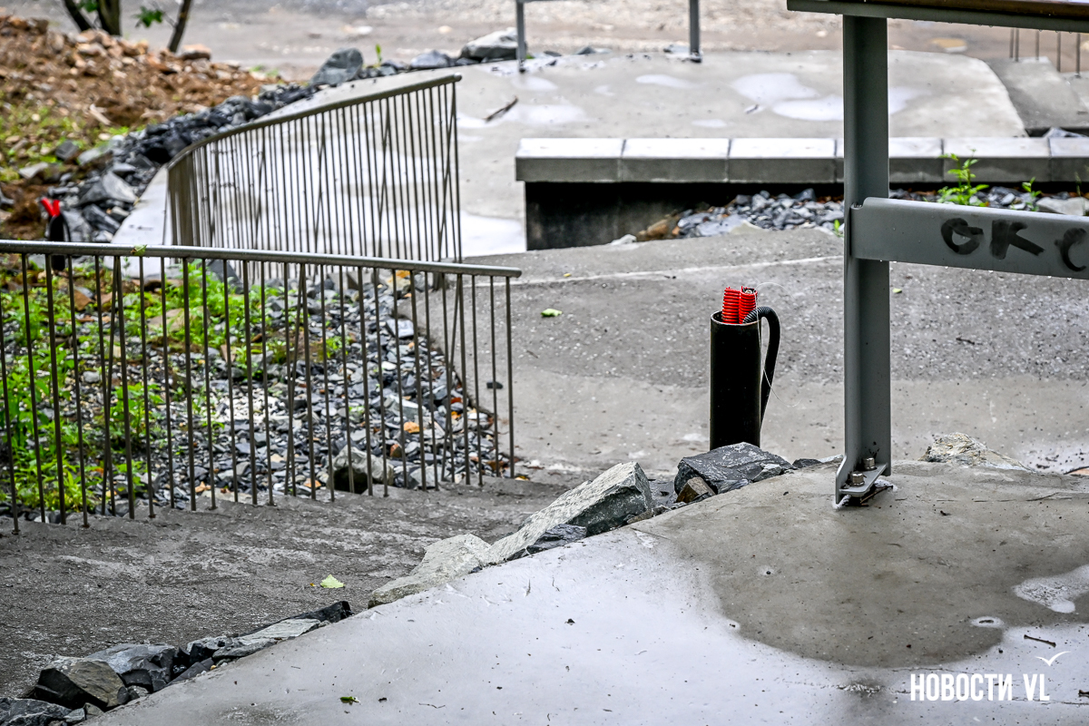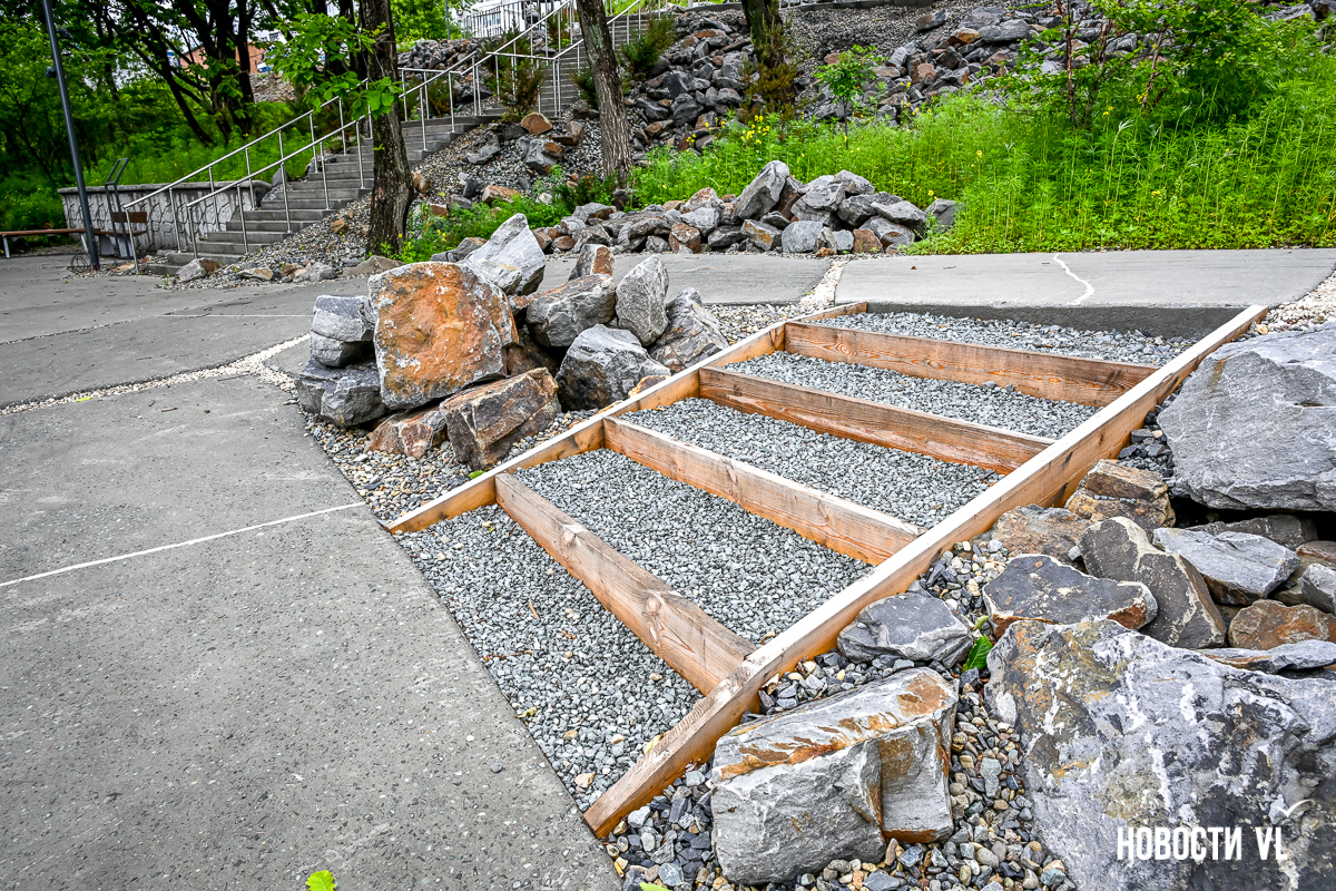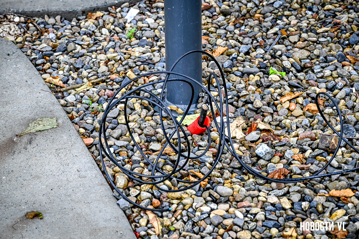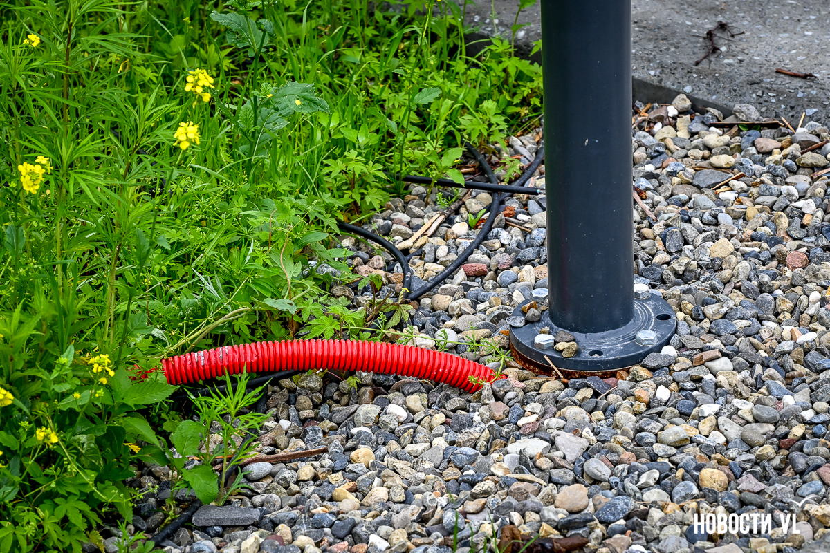 Среди недостатков отмечают всего одну урну, хотя в новом сквере на Кирова по тому же нацпроекту они стоят практически у каждой лавки. Щебёночные ступени не забетонировали, пандусы отсутствуют, местами ходить приходится по гравию. Также в некоторых местах до сих пор не смонтированы столбы освещения, вместо них из-под земли торчат провода. Однако эту проблему скоро должны решить. Как рассказали в администрации города корреспонденту Новостей VL.ru, всё подключить планируют до конца июня. Вот только сделать это изначально обещали ещё в конце 2024 года.