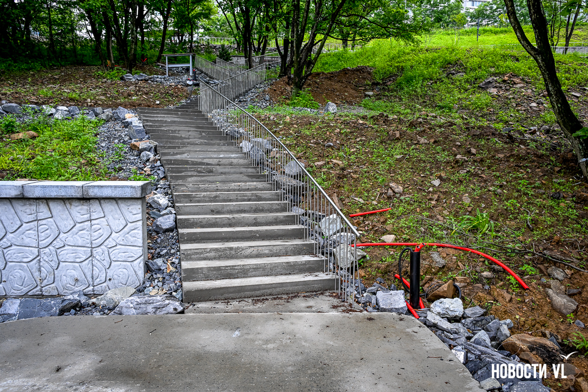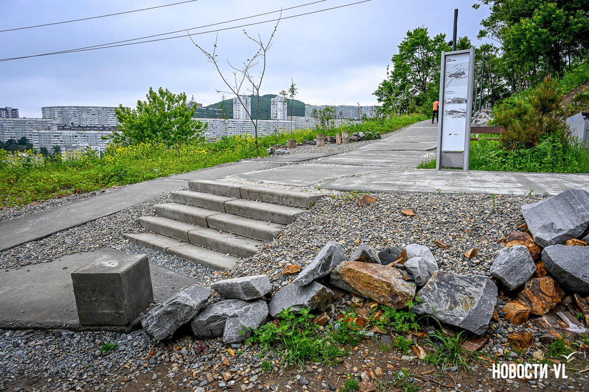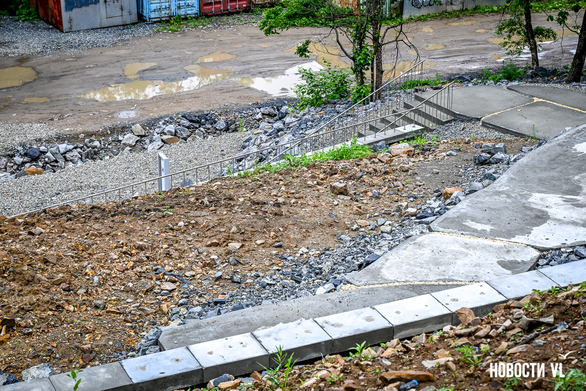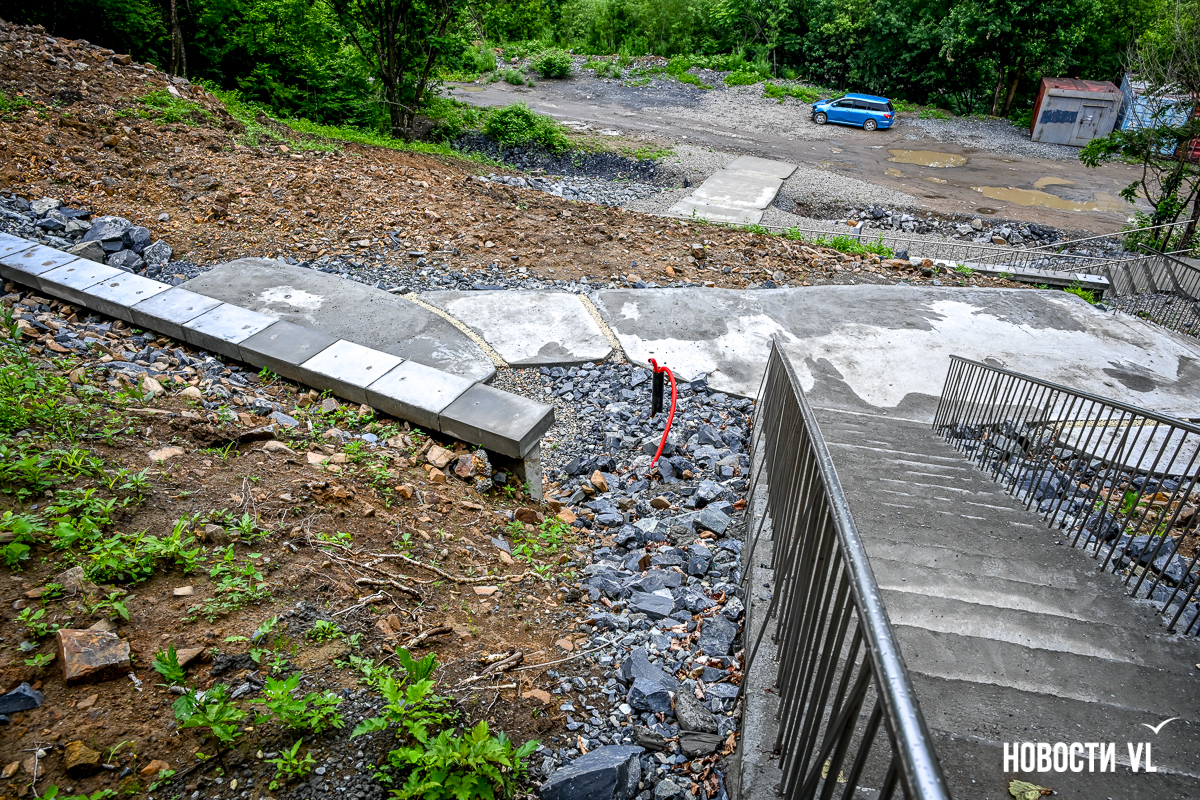 Среди недостатков отмечают всего одну урну, хотя в новом сквере на Кирова по тому же нацпроекту они стоят практически у каждой лавки. Щебёночные ступени не забетонировали, пандусы отсутствуют, местами ходить приходится по гравию. Также в некоторых местах до сих пор не смонтированы столбы освещения, вместо них из-под земли торчат провода. Однако эту проблему скоро должны решить. Как рассказали в администрации города корреспонденту Новостей VL.ru, всё подключить планируют до конца июня. Вот только сделать это изначально обещали ещё в конце 2024 года.
