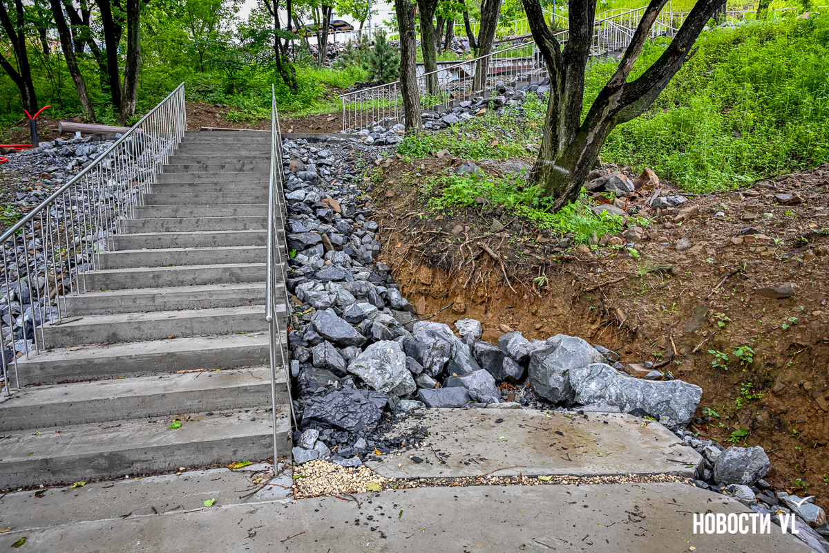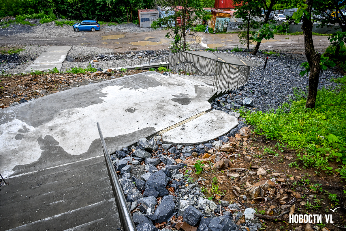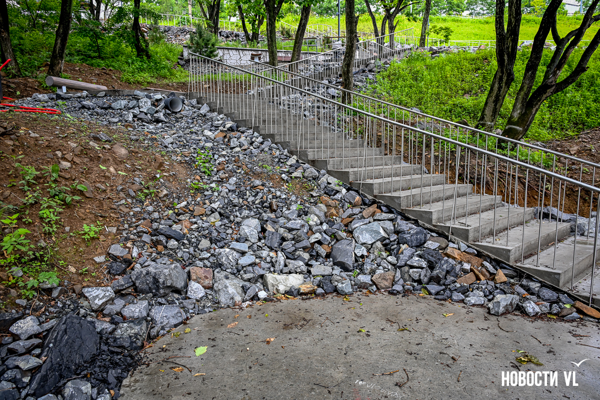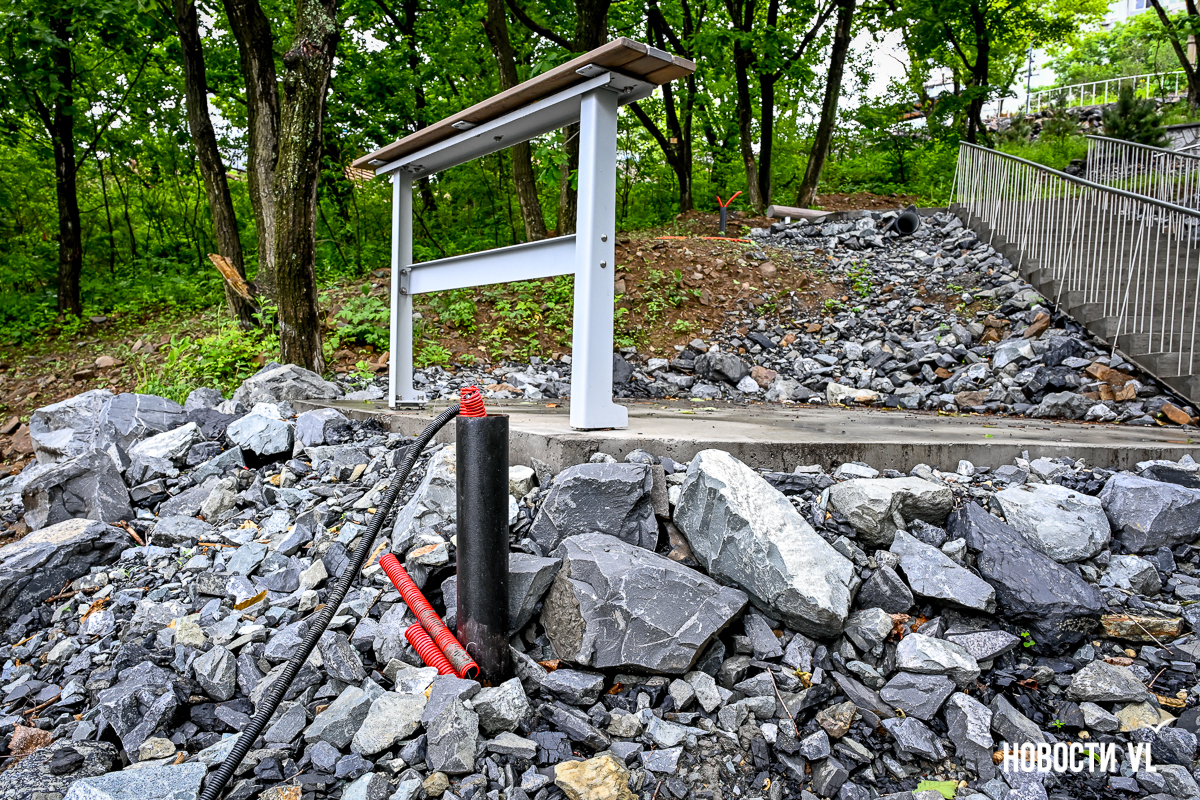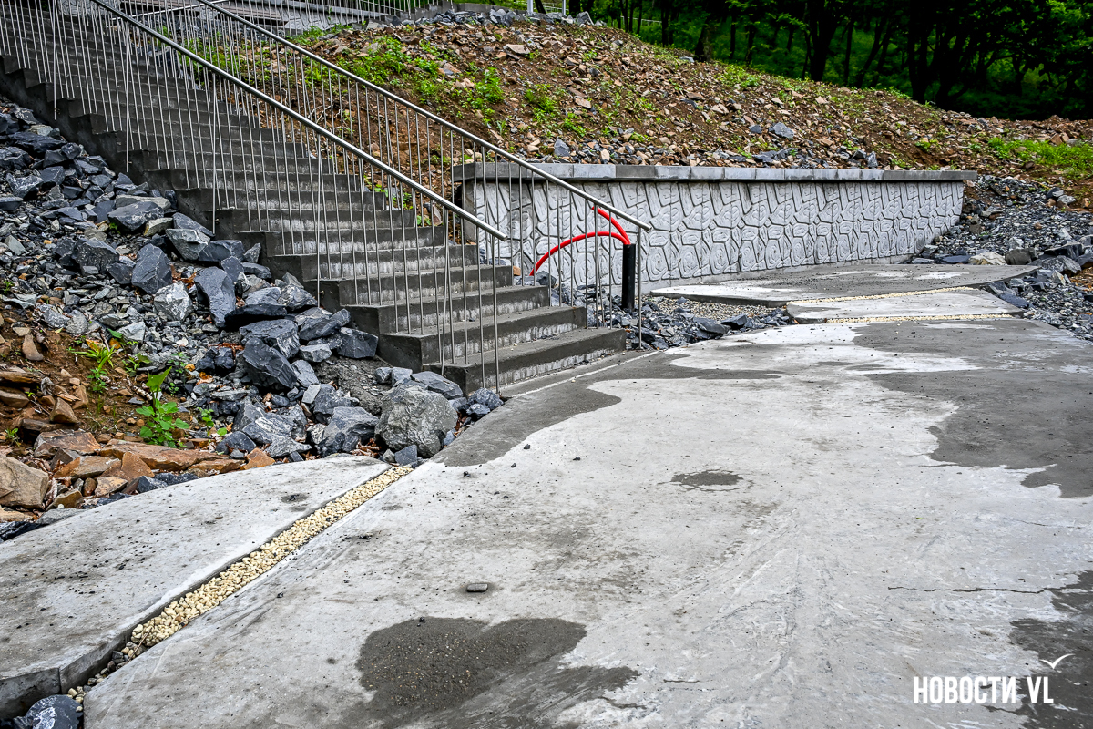 Среди недостатков отмечают всего одну урну, хотя в новом сквере на Кирова по тому же нацпроекту они стоят практически у каждой лавки. Щебёночные ступени не забетонировали, пандусы отсутствуют, местами ходить приходится по гравию. Также в некоторых местах до сих пор не смонтированы столбы освещения, вместо них из-под земли торчат провода. Однако эту проблему скоро должны решить. Как рассказали в администрации города корреспонденту Новостей VL.ru, всё подключить планируют до конца июня. Вот только сделать это изначально обещали ещё в конце 2024 года.