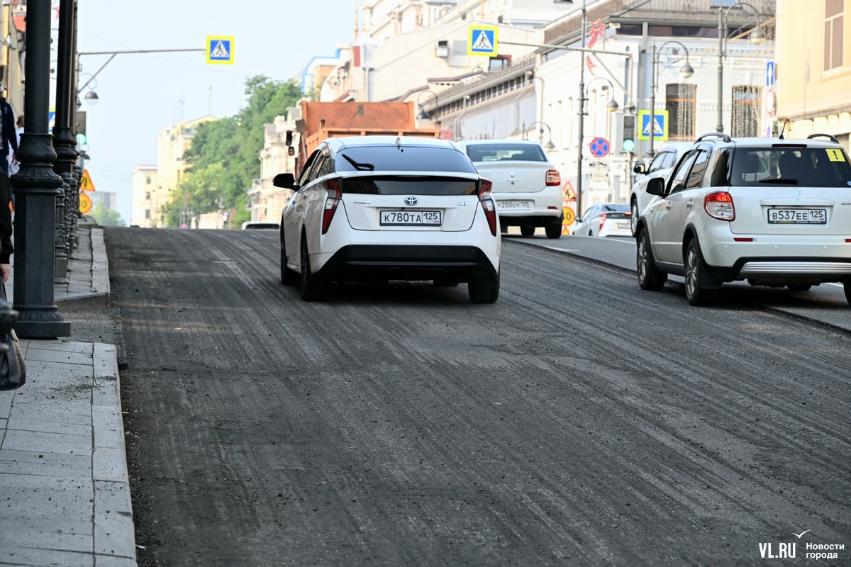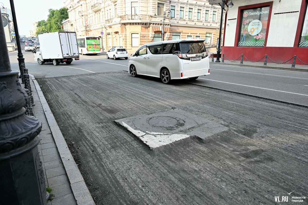 Масштабные работы по замене асфальтового покрытия в центре Владивостока начались в ночь с 16 на 17 июня. Тогда специалисты муниципальной службы «Содержание городских территорий» приступили к ремонту Алеутской в районе автобусной остановки «Серая лошадь». Сначала там поменяли просевшие люки, а вчера ночью заменили порядка 1270 квадратных метров старого асфальта на новое.