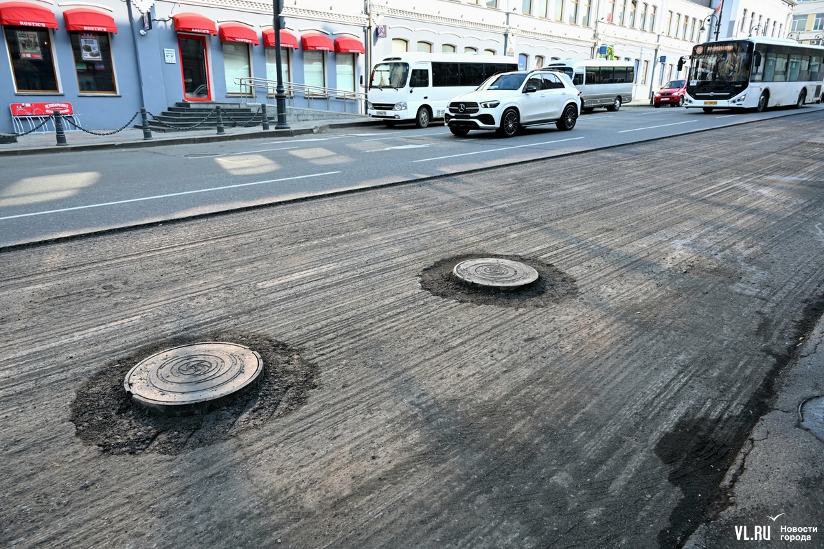«Специалисты сняли 1263 квадратных метра полотна, подняли люки, установили ливневые решётки. Работы завершатся асфальтированием участка, скорее всего, это будет сегодня ночью», – рассказали корреспонденту Новостей VL.ru в МБУ «СГТ». Там добавили, что говорить о ремонте других полос пока затруднительно, всё будет зависеть от погоды.