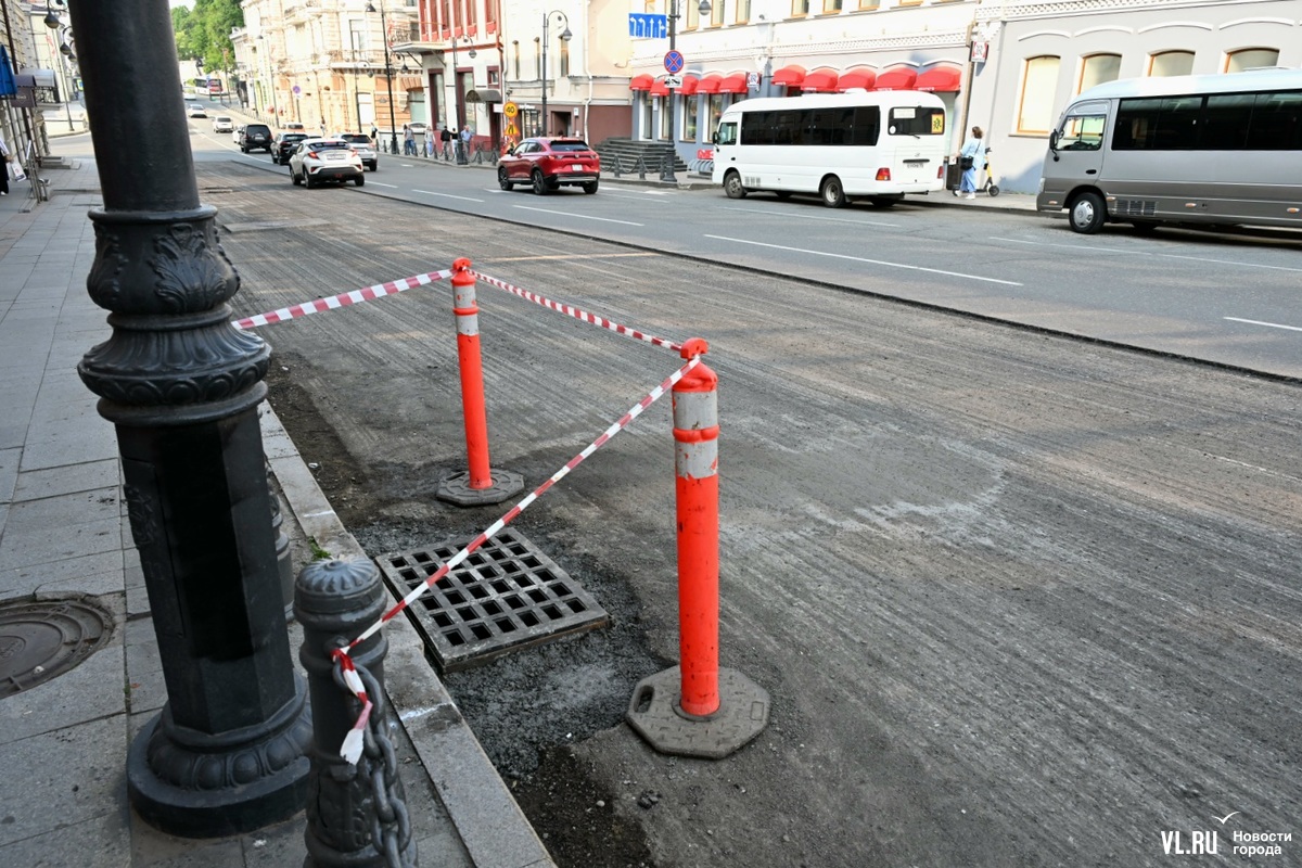В центре Владивостока ремонтируют улицу Алеутская. На ней с 16 июня уже заменили часть асфальта возле остановки «Серая лошадь» и просевшие люки. Сегодня ночью специалисты СГТ сняли асфальт от перекрёстка улиц Алеутской и Семёновской до поворота на Светланскую, чтобы поднять люки и установить ливнёвки. Укладывать новое покрытие, скорее всего, будут ближайшей ночью.