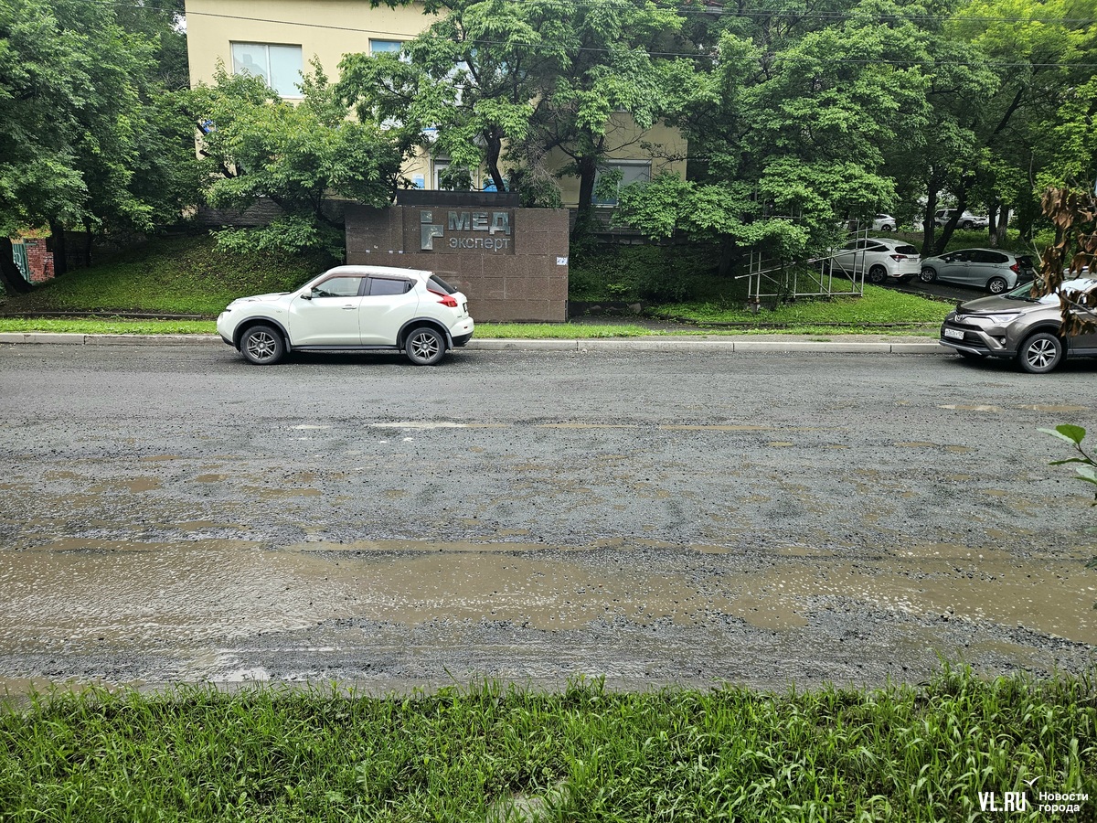 В районе Русской, 5 во Владивостоке повреждённое дорожное полотно размыло дождями до аварийного состояния. Даже в солнечный день там стоят лужи, которые не успевают высохнуть. Автомобили сбрасывают скорость почти до нуля, чтобы пробраться через эту «полосу препятствий». В администрации Владивостока уточнили, что участок уже включают в план локального ремонта, но пока не могут назвать его точные сроки.