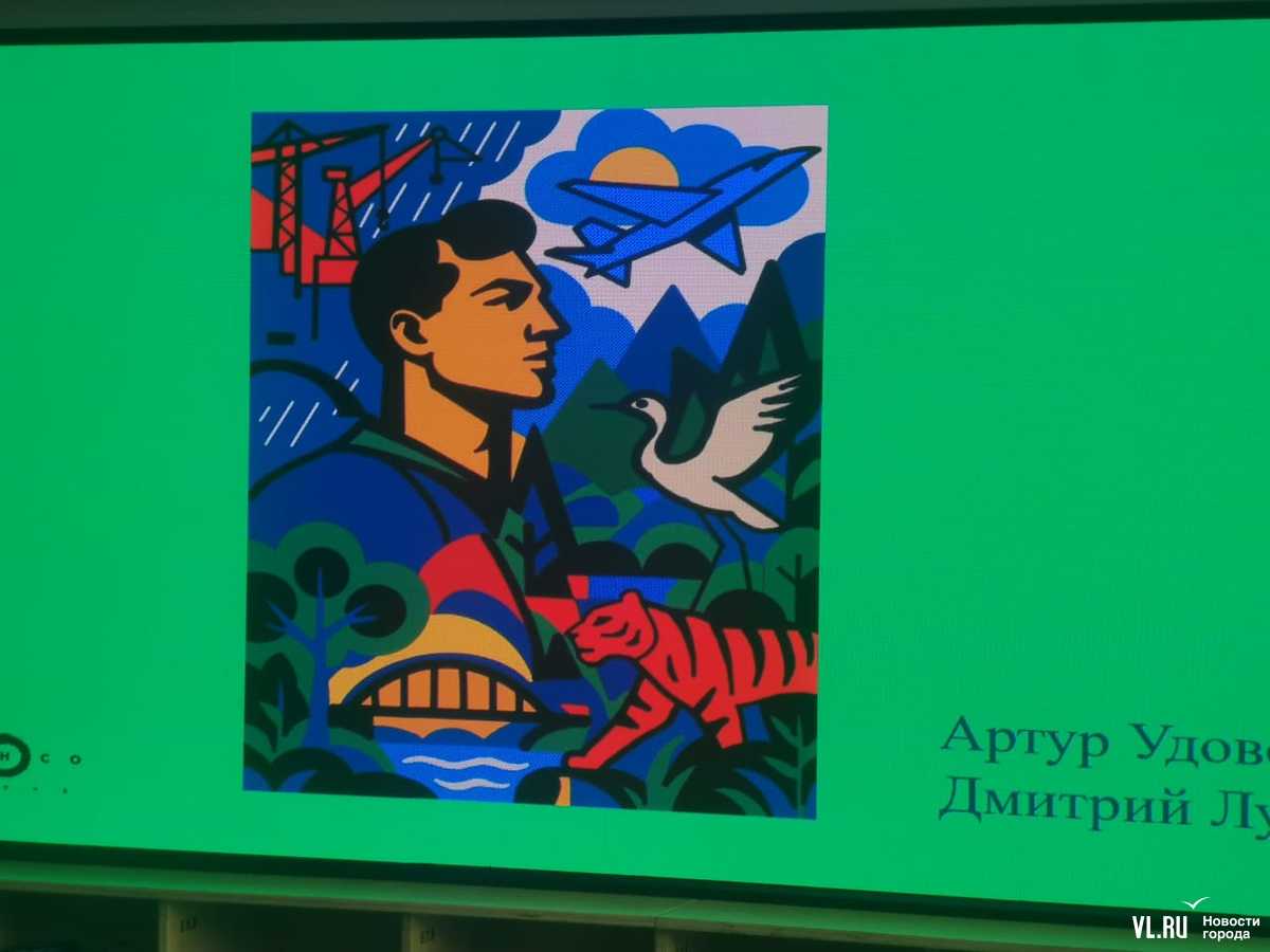 Во Владивостоке мурал разместят на торце дома № 9 по улице Светланской, почти напротив Музея имени Арсеньева. Это бывший доходный дом Купера, построенный в 1918 году. На пресс-конференции показали эскиз работы, а её автор, Ци Синхуа, разъяснил всё лично – по видеосвязи: