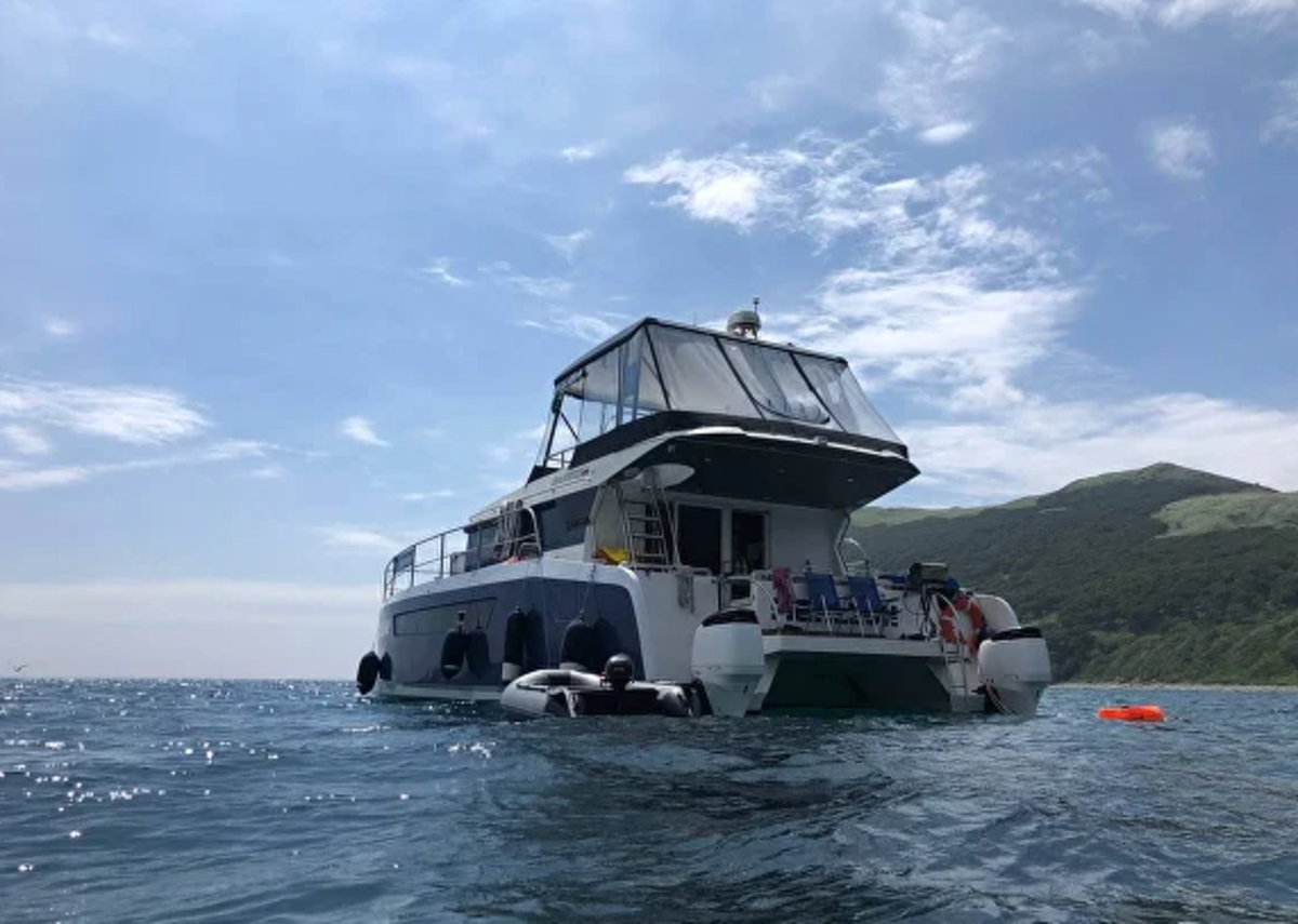 Сгоревший вчера под островом Шкота катамаран «Мерлион» перевозил больше пассажиров, чем разрешено – об этом говорят туристы, на помощь которым пришли два катера и гидроцикл. Судно было довольно новым, 2019 года постройки, но в него внесли несколько непредусмотренных конструкцией изменений, в том числе установили мангал над подвесным двигателем.