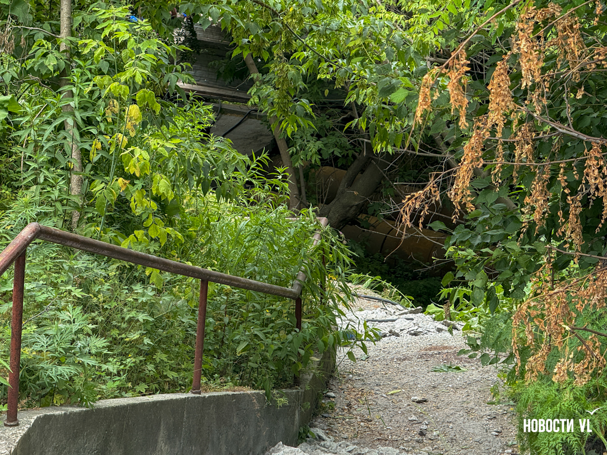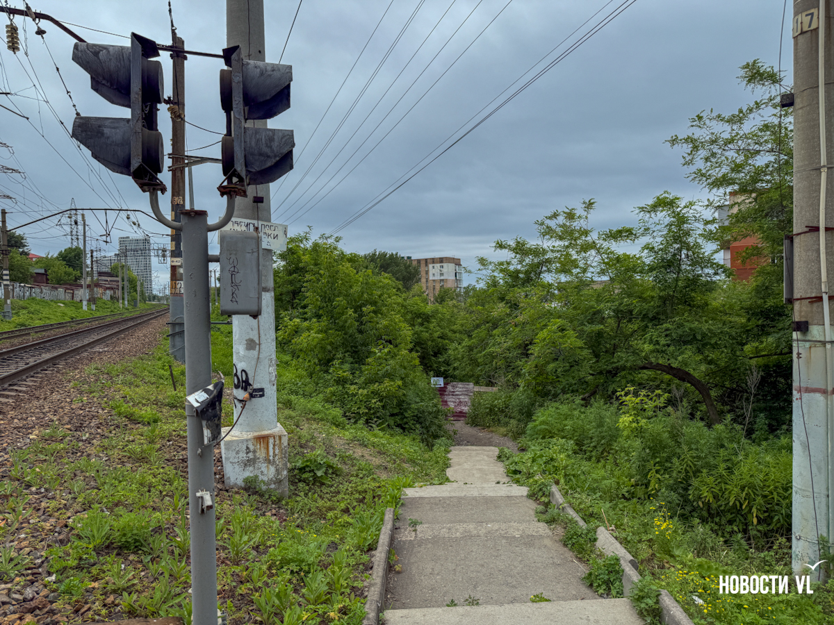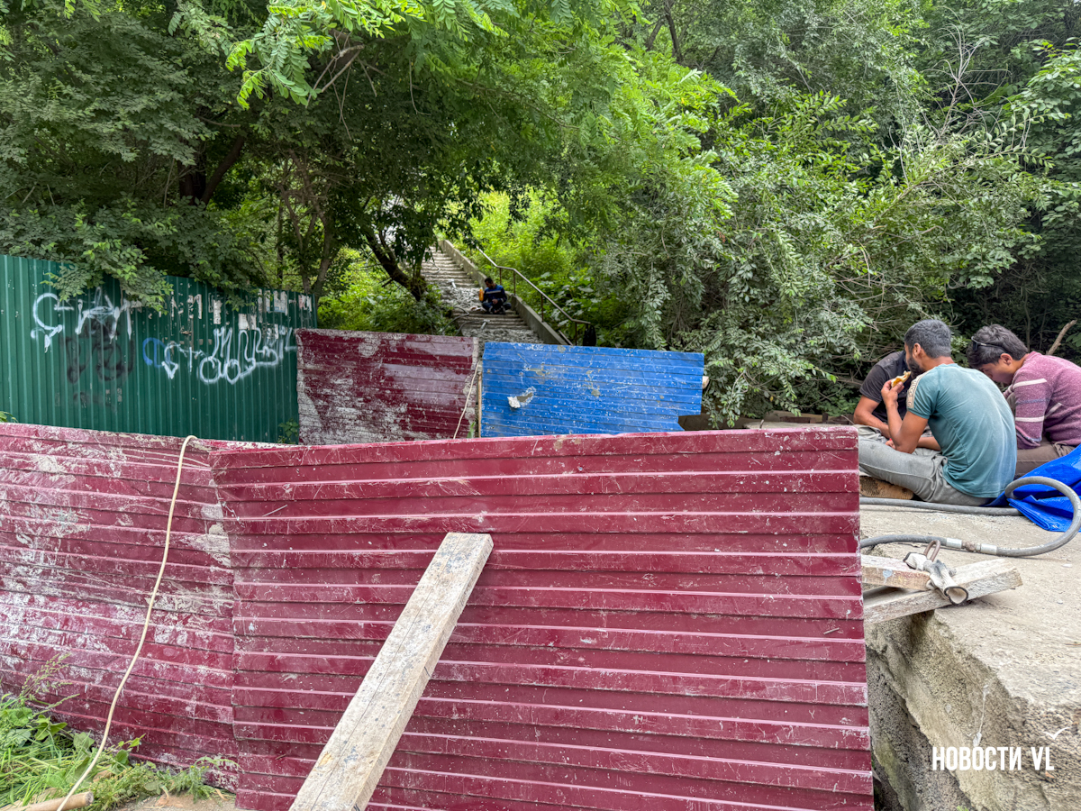 Корреспондент Новостей VL тоже съездил на место закрытого прохода. Там его встретила бригада рабочих за обедом. Один из них рассказал, что они действительно никого не пускают. Аргументировал рабочий это тем, что люди, которые пойдут по лестнице, могут получить травму, а отвечать за это будет руководитель компании. Но вот на вопрос о том, как тогда пройти наверх, никто из бригады тружеников не ответил.