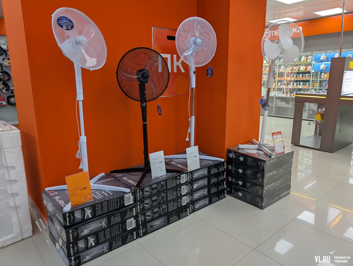 Уже несколько недель во Владивостоке стоит жара, а в последние дни – температура аномально высокая. Кондиционеры в крупных магазинах бытовой техники остались в основном под заказ, а ждать установки придётся от нескольких дней до недель. Вырос спрос и на мастеров по ремонту. Среди альтернатив «здесь и сейчас» – мобильные кондиционеры, но они подойдут далеко не всем, и вентиляторы, но самые популярные модели сейчас тоже не в наличии.