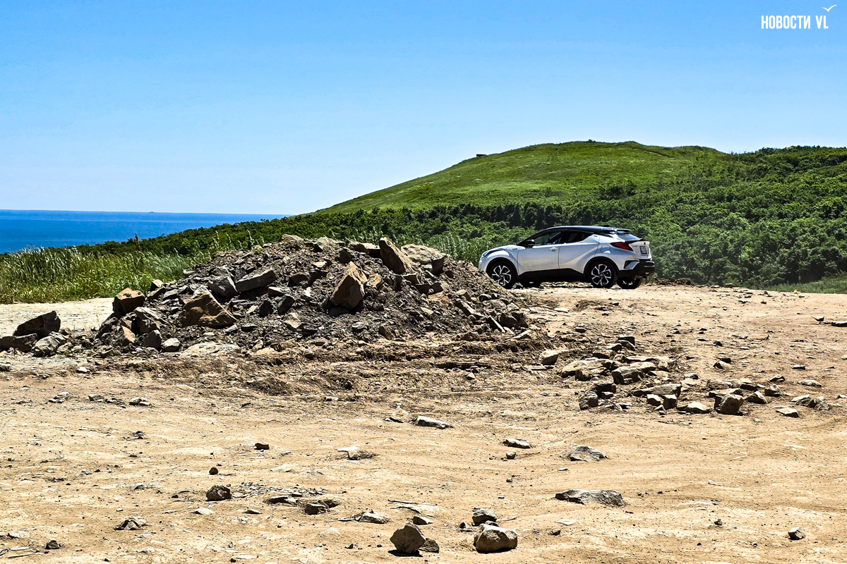 Намного хуже ситуация с дорогой на находящийся неподалёку мыс Тобизина. Поначалу кажется, что её тоже отгрейдировали, но вот мы попадаем в лесок – и в глаза бросаются гигантские пробоины, камни и оставленные в закутках машины. Разъехаться двум авто тоже сложно – и дело даже не в том, что дорога узкая, а в том, что по её краям прячутся опасные камни и обрывы, на которые водители боятся заезжать, так что столпотворения авто здесь происходят регулярно.