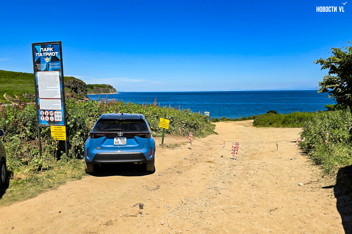 Наше небольшое, но опасное приключение начинается с подъезда к мысу Вятлина – здесь уже давно обещали провести благоустройство в рамках обустройства парка «Патриот». Началось всё как раз с самого очевидного – создания более комфортной дороги – отгрейдировали подъезд к мысу в июне. Сейчас проехать можно – чуть-чуть потряхивает на возвышенностях, да и летящую во все стороны пыль убрать просто так не получится, зато крупных провалов или булыжников нет, хотя остались проблемные участки.