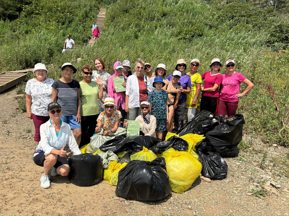 Ещё 100 килограммов мусора вывезли с побережья бухты Стеклянной. В акции приняли участие активисты лиги ходьбы «Женьшень».