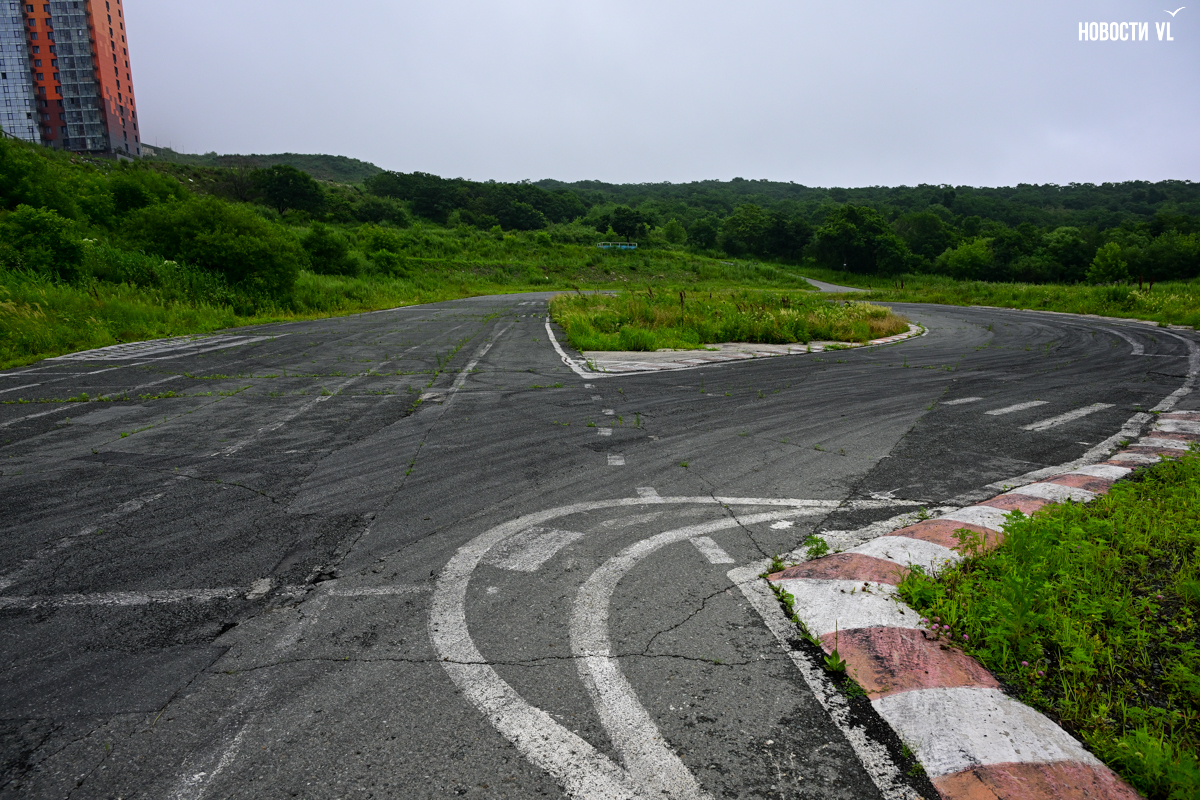 Здесь ведутся работы по подготовке трассы для мотокросса. Она будет расположена на прилегающей территории. Судя по всему, речь идёт о насыпном участке ниже трассы – кто его насыпал, до сих пор доподлинно не известно – вероятно, это были одни из предыдущих пользователей картодрома. Когда-то дрифтеров хотели вывести за пределы основного кольца и сделать для них отдельную трассу. Туда некоторое время назад стали свозить грунт со стройки, отсыпали часть территории. Но для новой трассы этого мало, нужно вбивать сваи по 50 метров, чтобы удержаться на мягком грунте. Бюджет сумасшедший, так что проект пока заморожен. В декабре 2023 года корреспонденты Новостей VL.ru зафиксировали там уничтожение деревьев, а также свал грунта. Мы передали все данные администрации города, те обратились в полицию. Виновных не нашли.