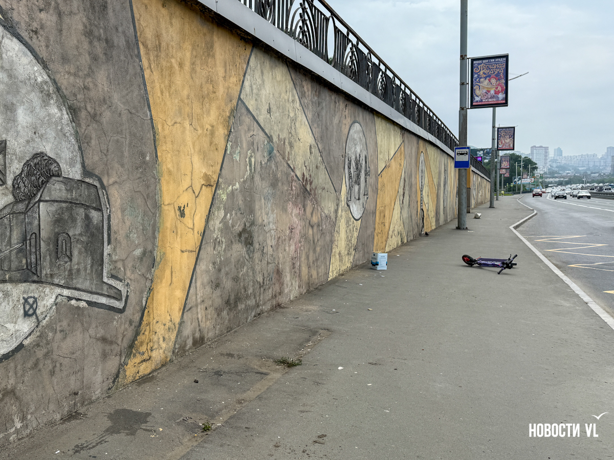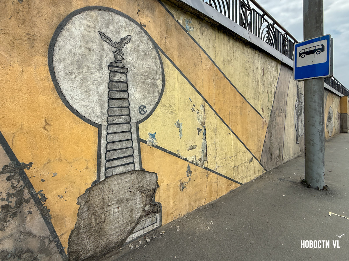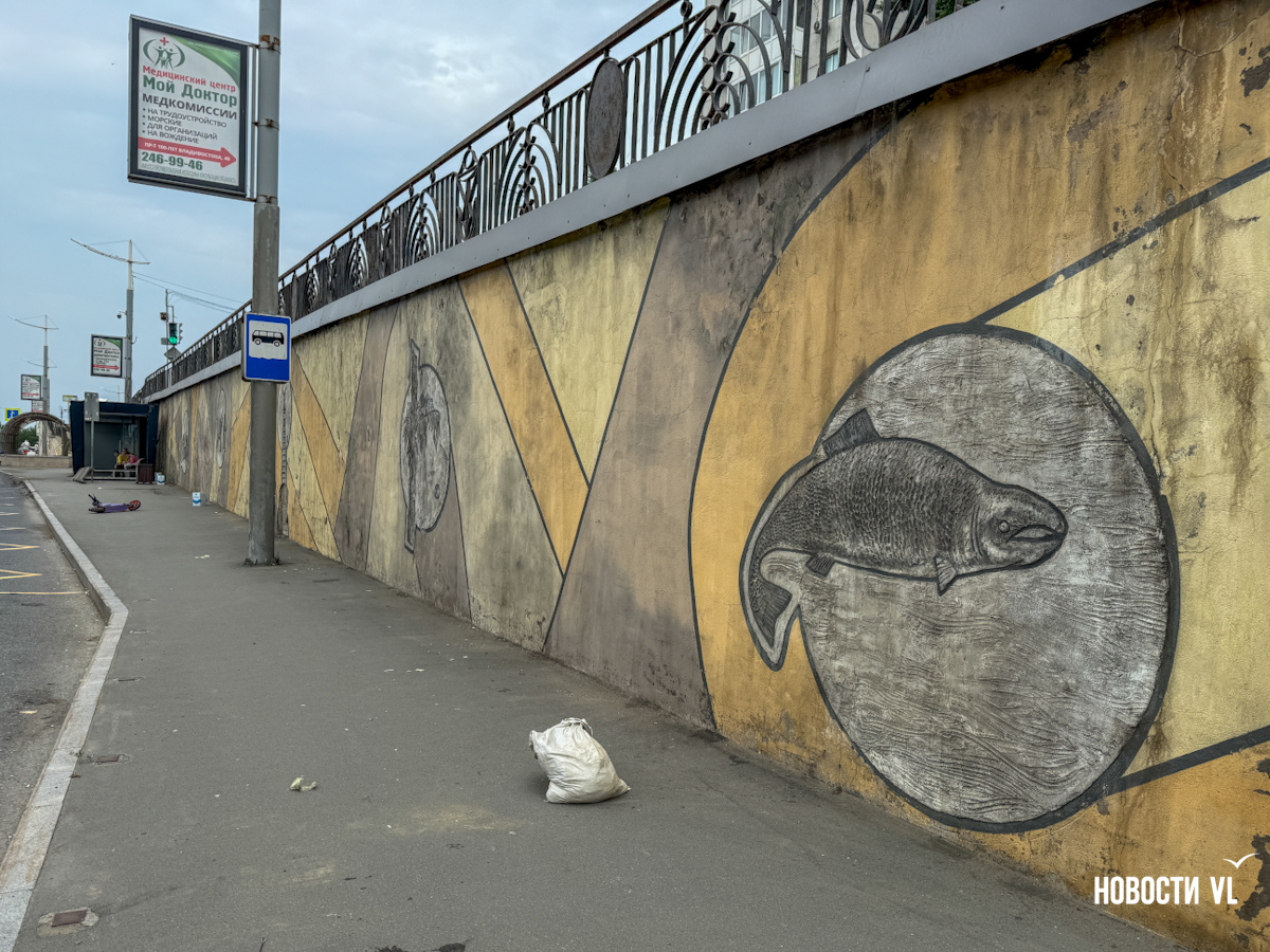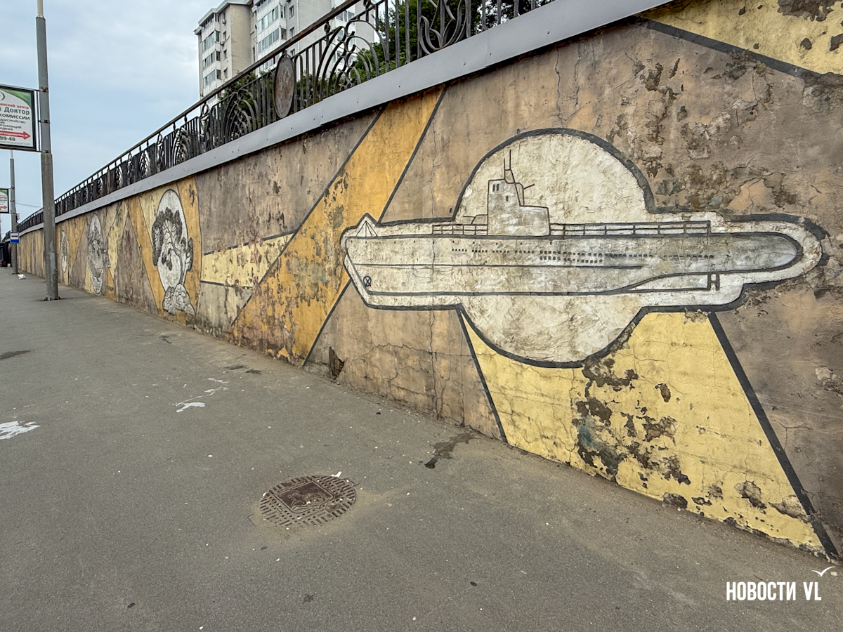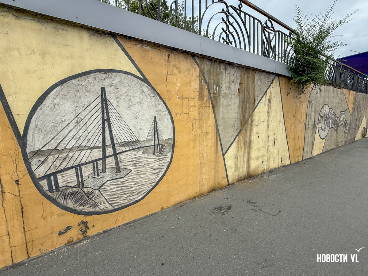 Подпорную стену в районе остановки «Молодёжная» начали зачищать от старых барельефов. Из них останутся только Русский мост и рыба. Вместо музыкантов, триумфальной арки и кита с городом на спине появится история торгового флота на Дальнем Востоке. Это подарок Владивостоку от транспортной компании к прошедшему Дню города. Эскиз будущего мурала проходит окончательное согласование в мэрии.