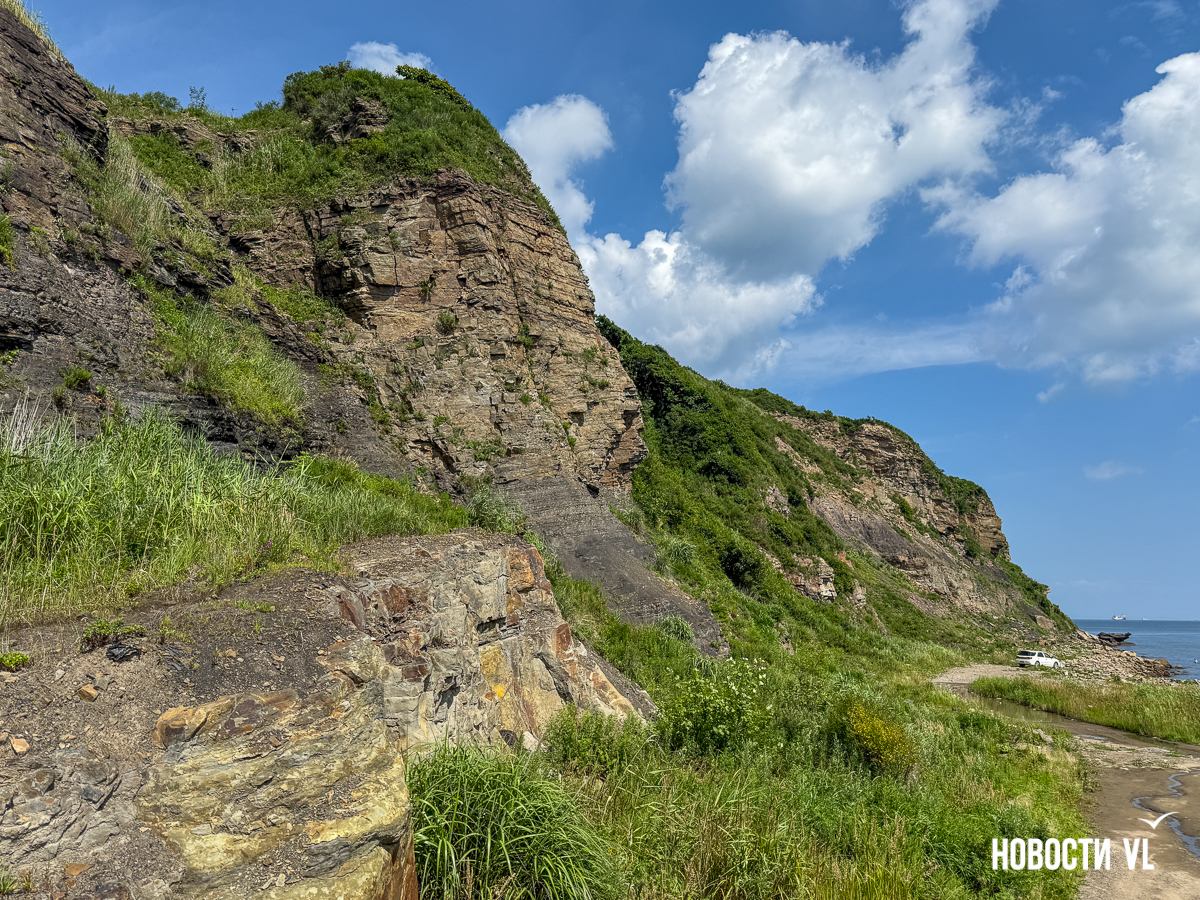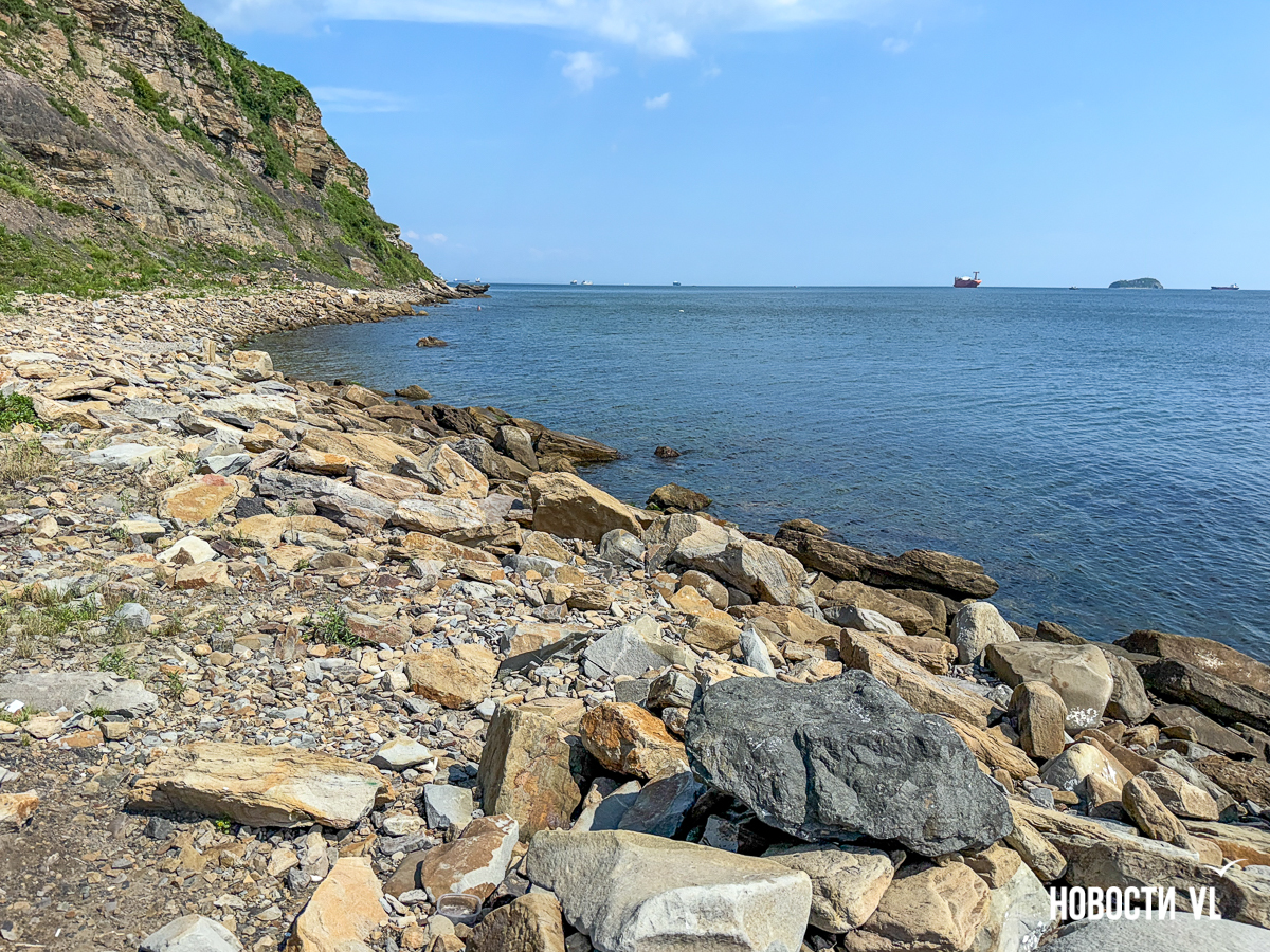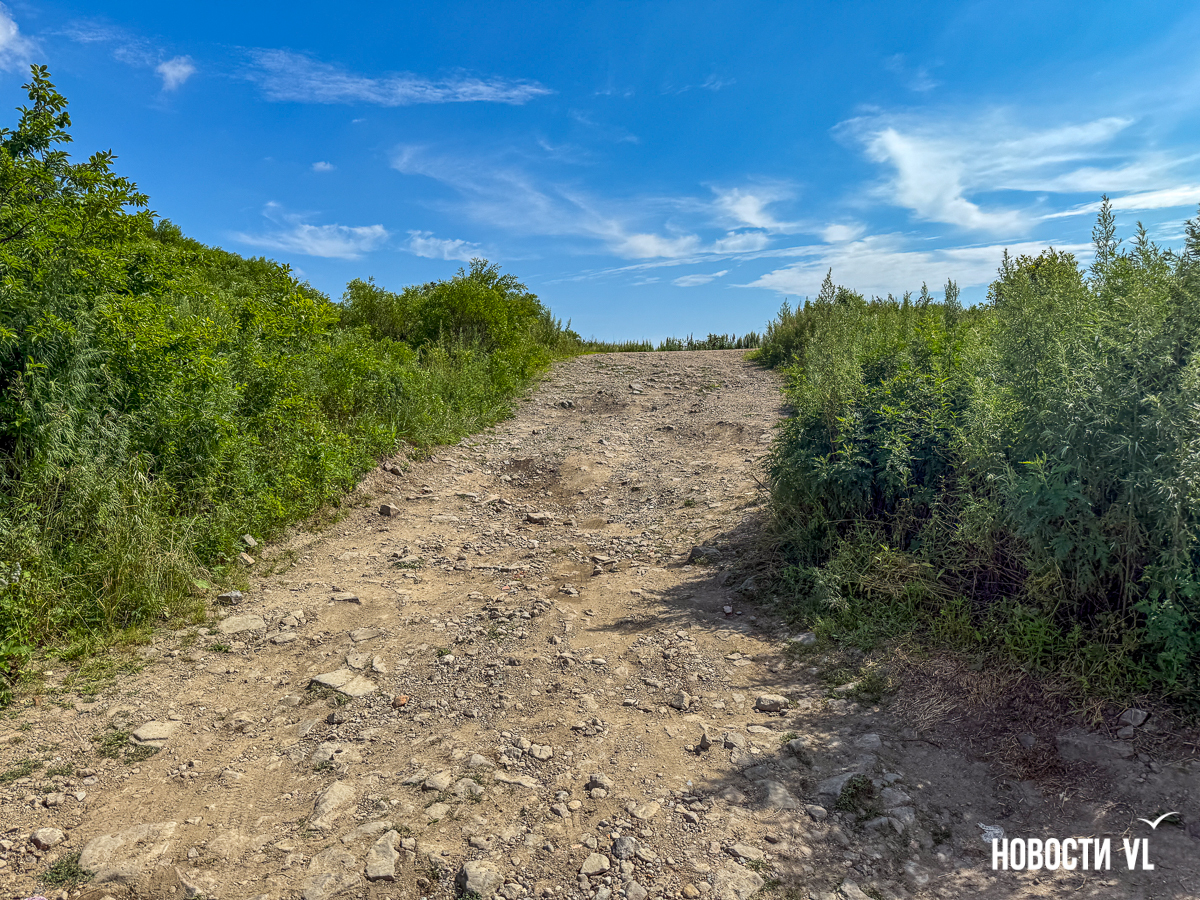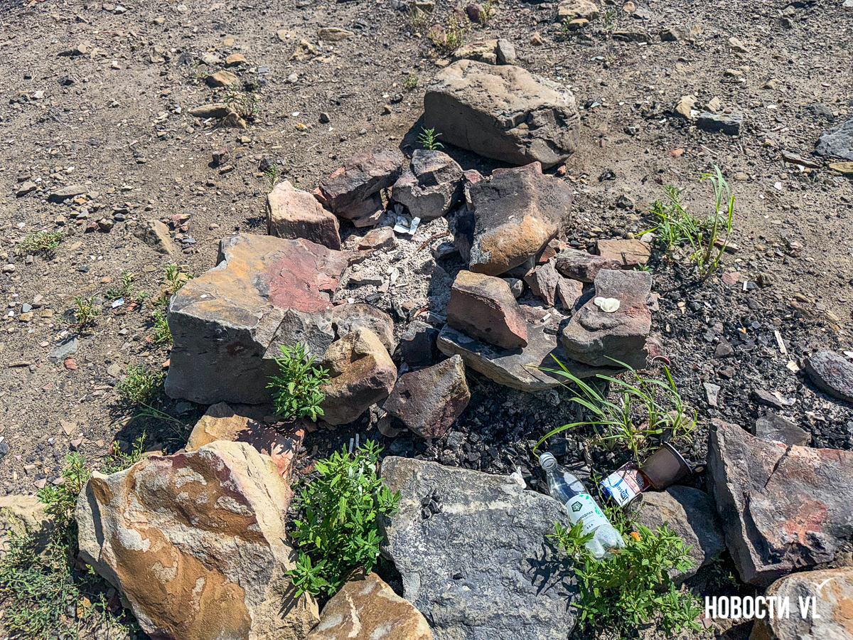 Из-за своей недоступности берег остаётся безлюдным и в целом чистым – из мусора корреспондент Новостей VL.ru обнаружил лишь пустую пачку сигарет, пластиковые бутылку и стаканчик в кострище, а также несколько кучек навоза от лошадей с ближайших конюшен, на которых сюда устраивают верховые прогулки.