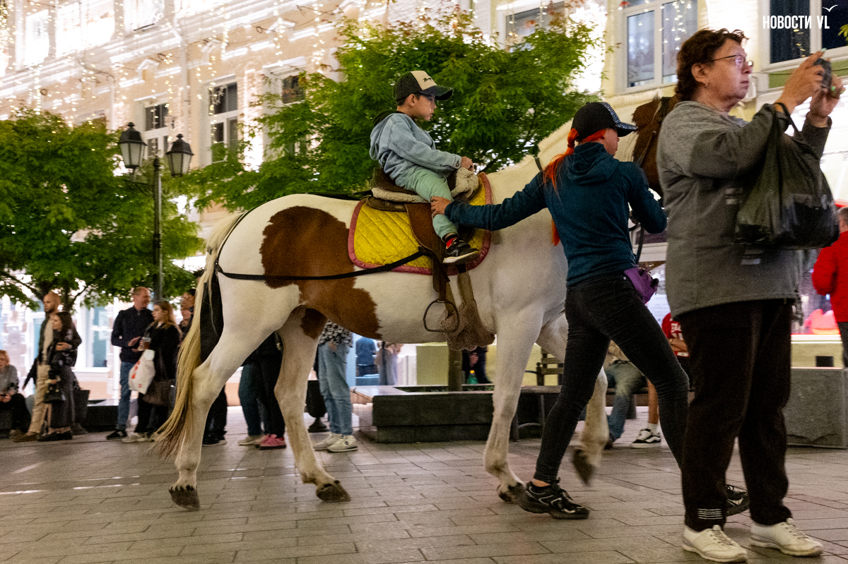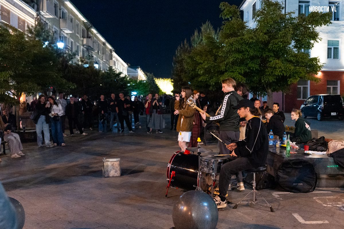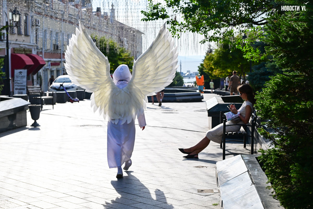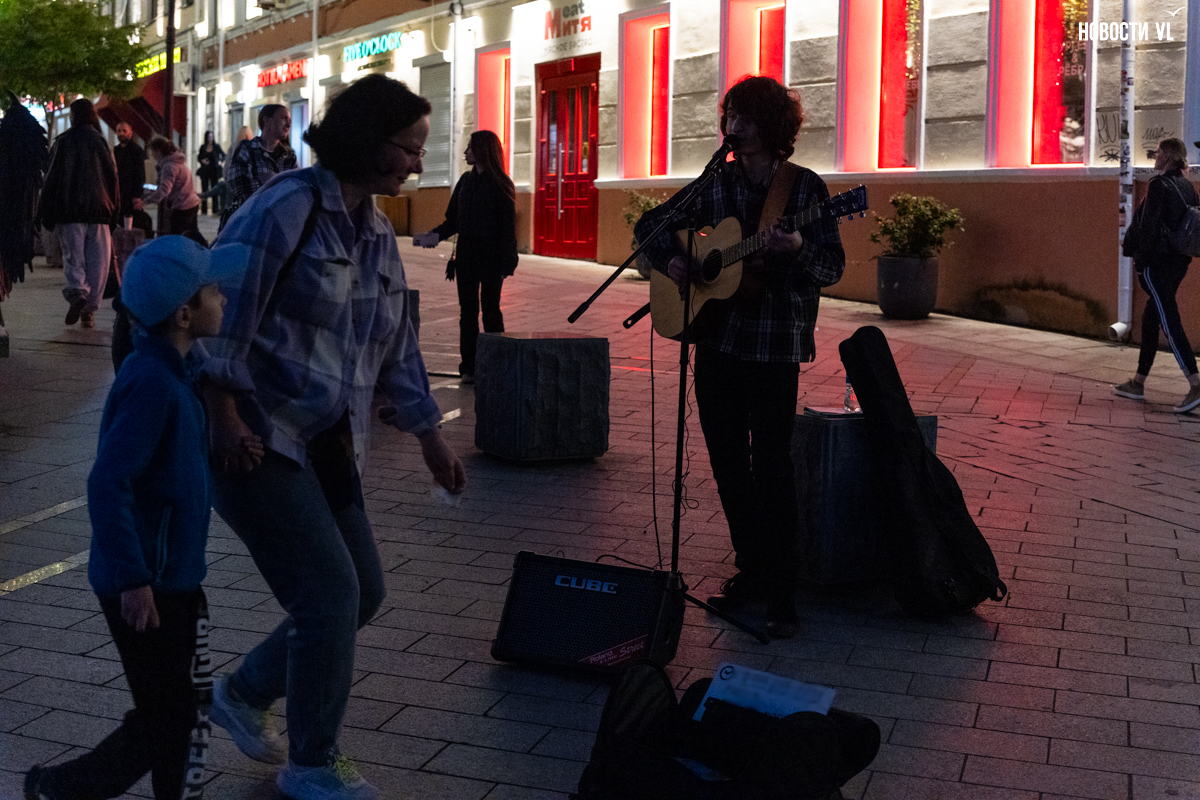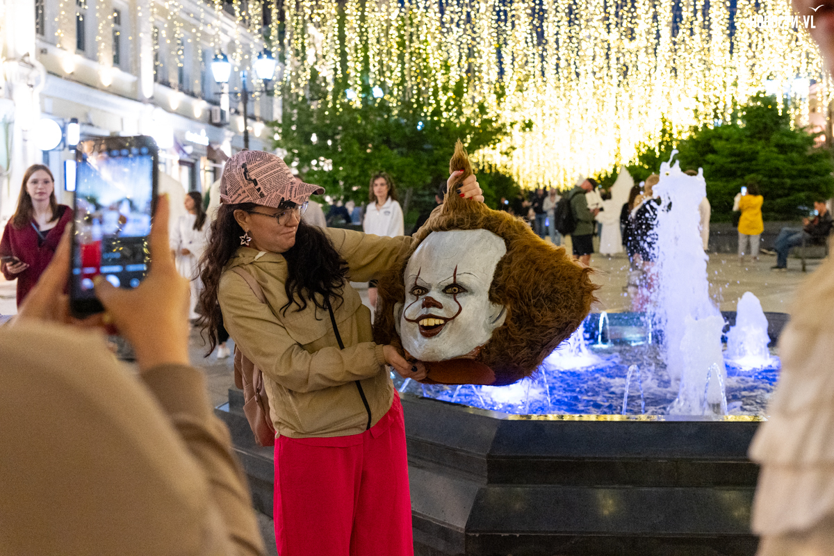 Вечером над всей этой вакханалией загорается сияющая гирлянда, фасады исторических зданий тоже начинаются светиться, но горожане, кажется, так рассеяны из-за буйства сиюминутных развлечений, преграждающих им путь, что у них вряд ли есть время оглянуться на отреставрированные фасады и вглядеться в исторический центр Владивостока повнимательнее.