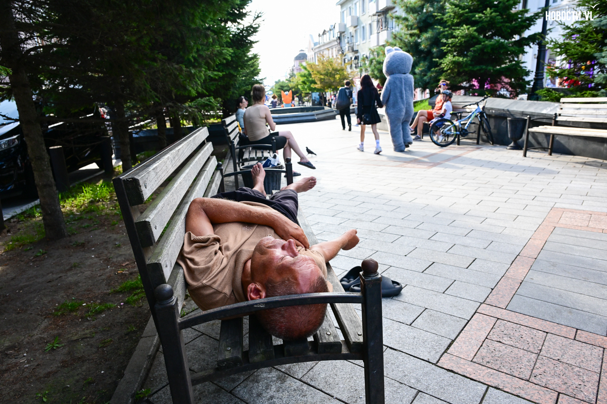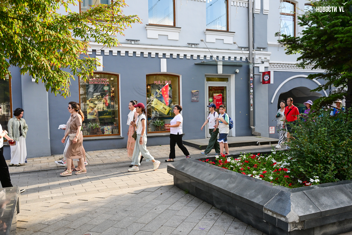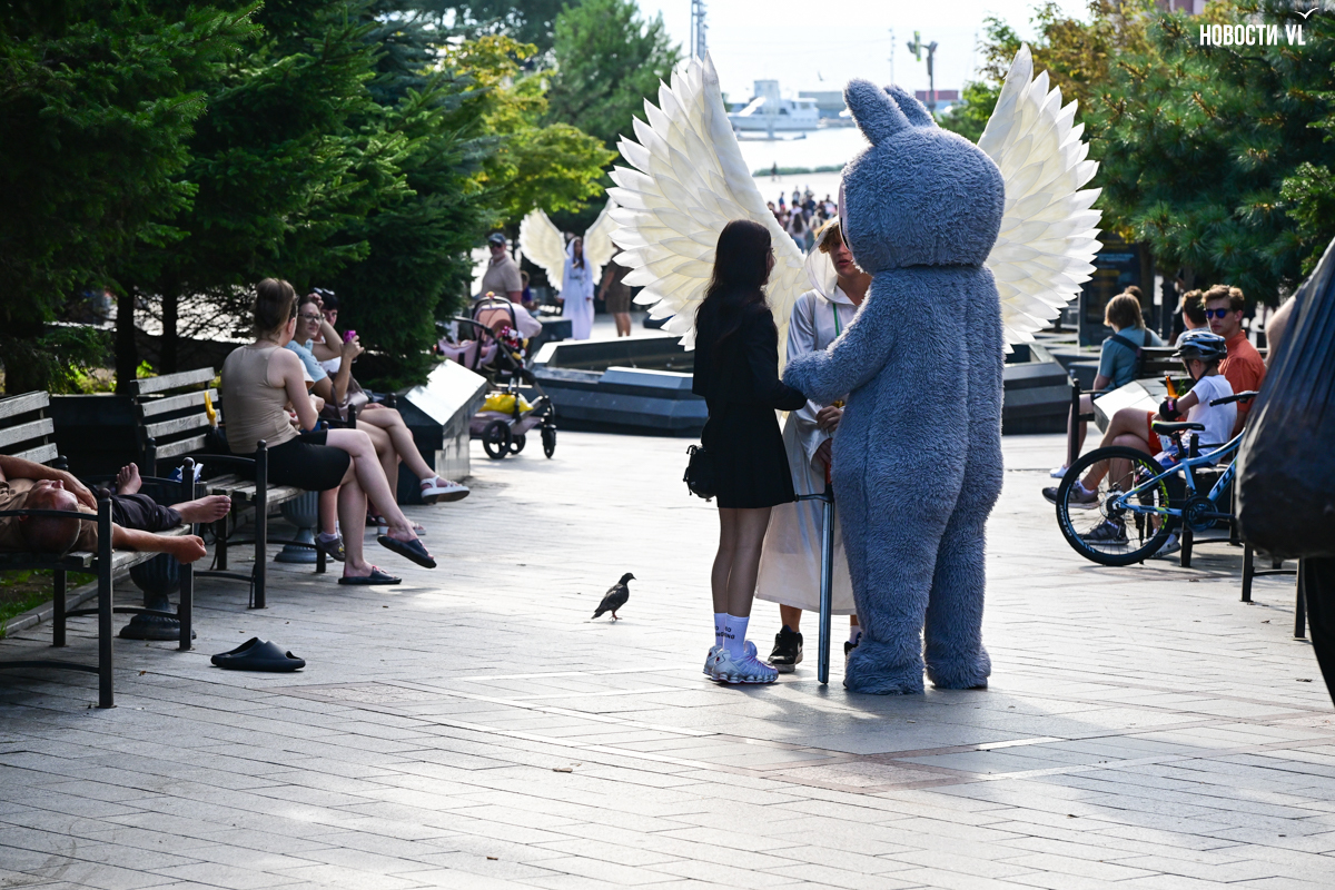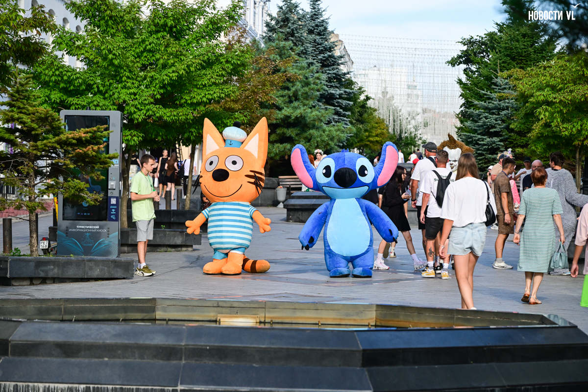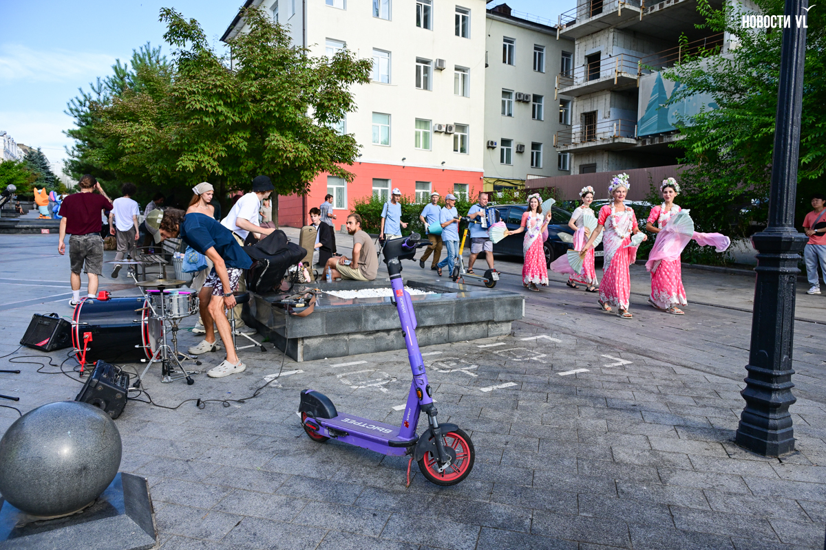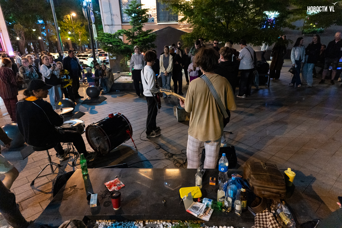 Вечером над всей этой вакханалией загорается сияющая гирлянда, фасады исторических зданий тоже начинаются светиться, но горожане, кажется, так рассеяны из-за буйства сиюминутных развлечений, преграждающих им путь, что у них вряд ли есть время оглянуться на отреставрированные фасады и вглядеться в исторический центр Владивостока повнимательнее.