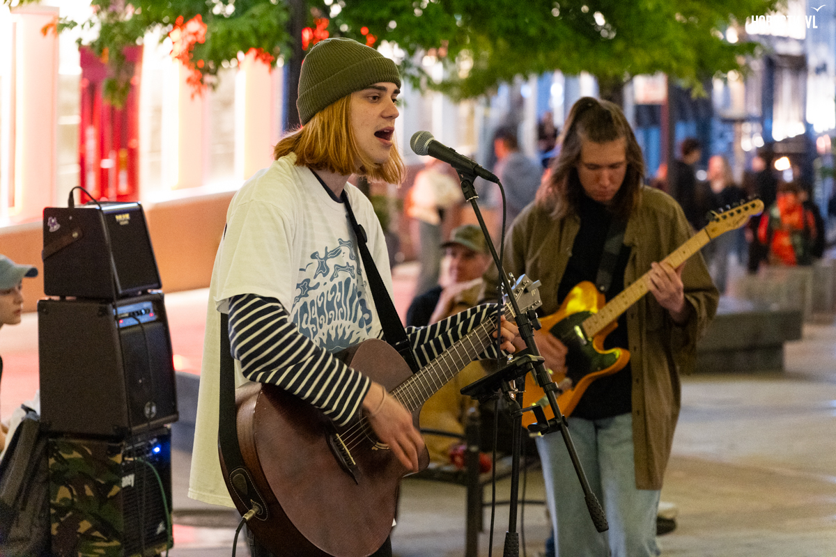 Аниматоры делят улицу Фокина с виолончелистами и портретистами, которым горожане гораздо охотнее отдают деньги. А в самом конце небольшой прогулочной улицы традиционно каждый вечер собираются музыкальные группы – играют каверы на известные песни или что-то из своего репертуара.