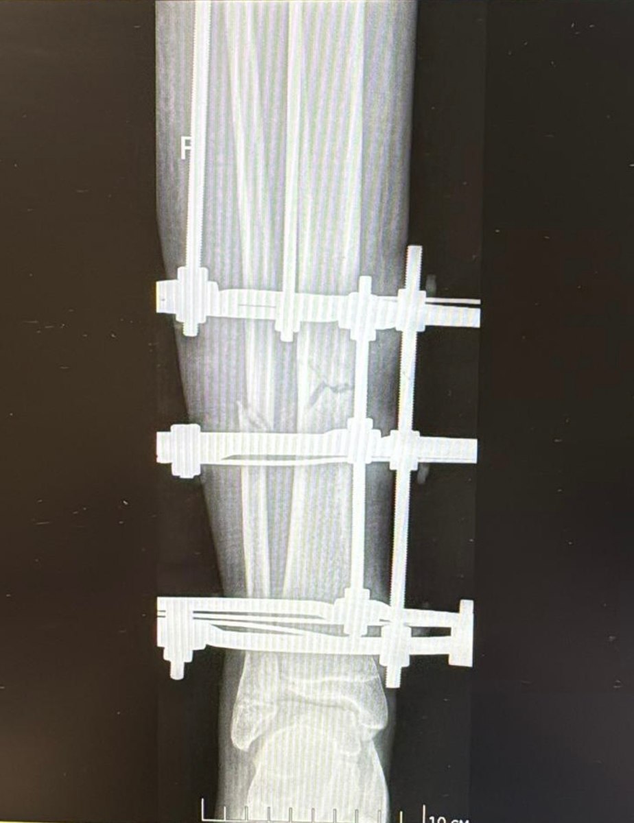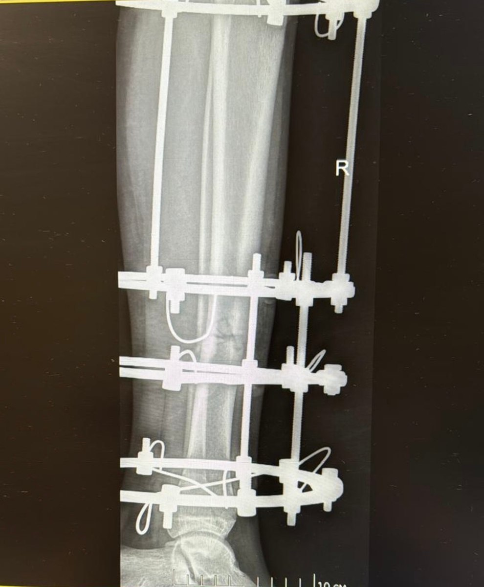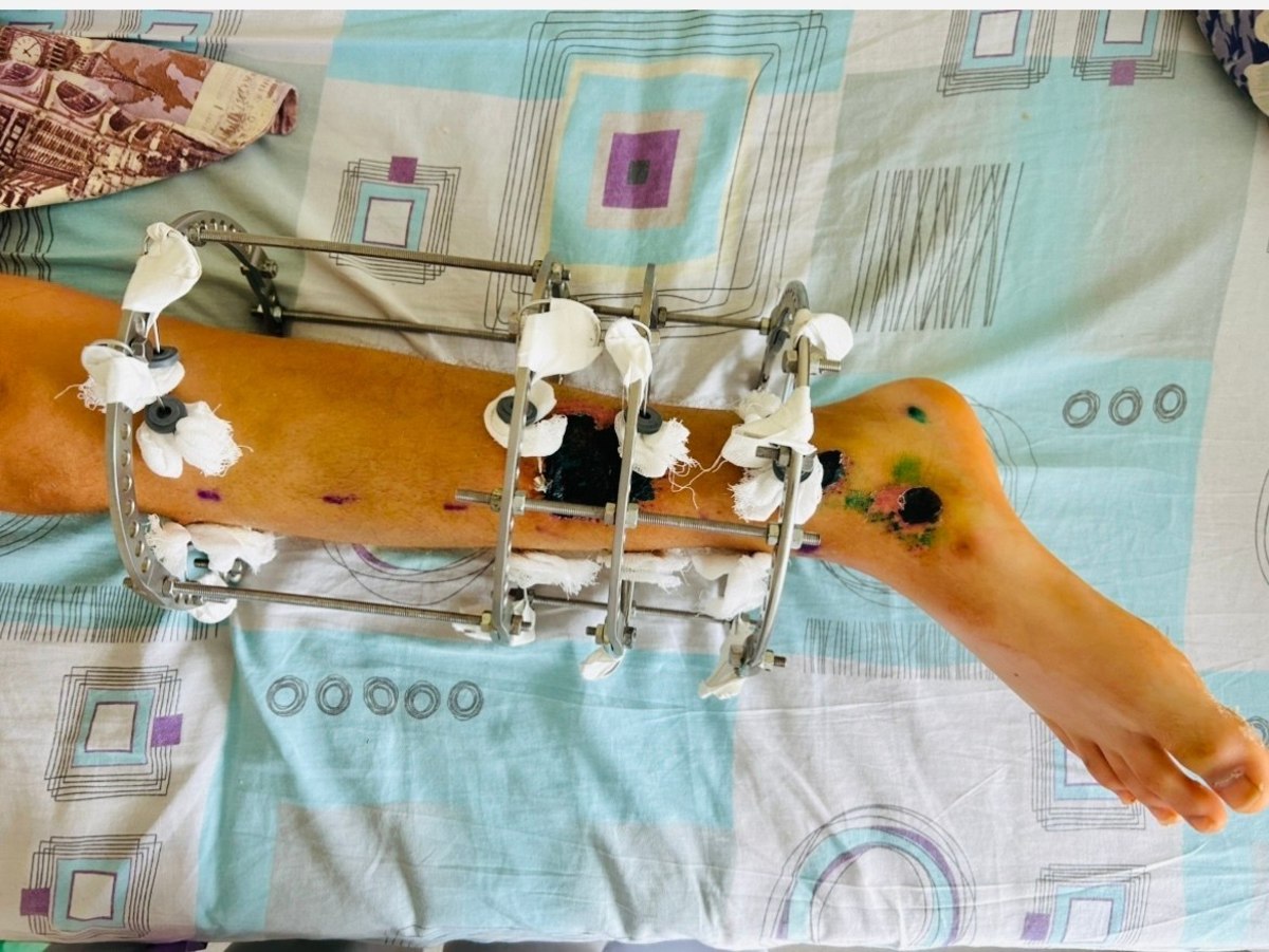 «Сначала пациент находился на скелетном вытяжении, чтобы привести повреждённые костные отломки в правильное анатомическое положение. На этапе хирургического вмешательства врачи произвели репозицию костных отломков с наложением аппарата Илизарова, что позволит обеспечить правильное сращение костей и минимизировать риск осложнений», – сообщили в Тысячекоечной больнице.