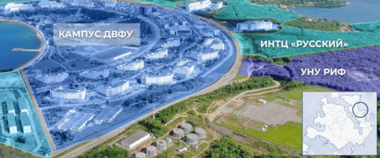 Как следует из презентации ДВФУ двухлетней давности, УНУ «РИФ» – это 46 гектаров территории, площадь объектов займёт 20 тысяч кв. м. В структуру войдут синхротрон, лабораторные и административные здания, инженерная и производственная инфраструктура. Он расположится возле вертодрома. Через дорогу от него строят ИНТЦ «Русский».