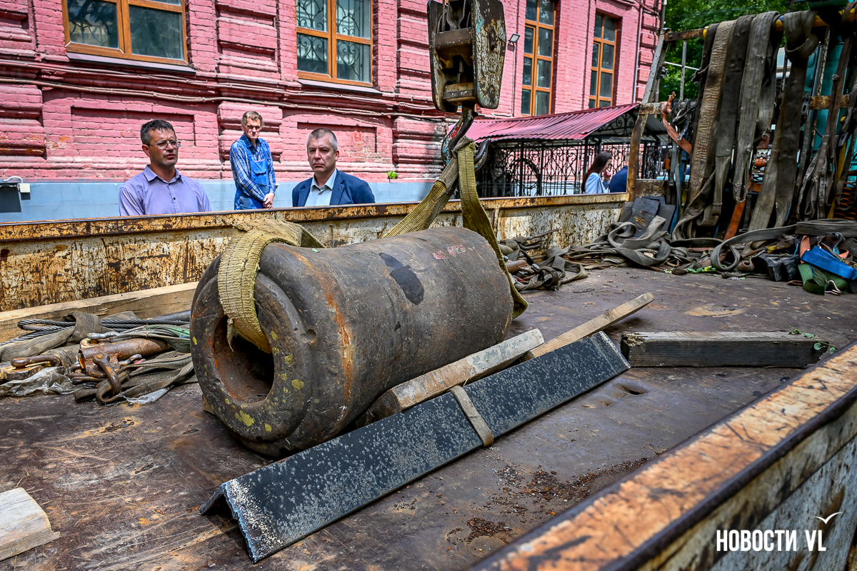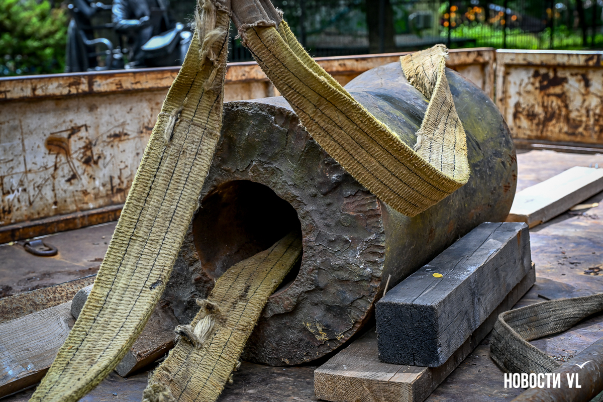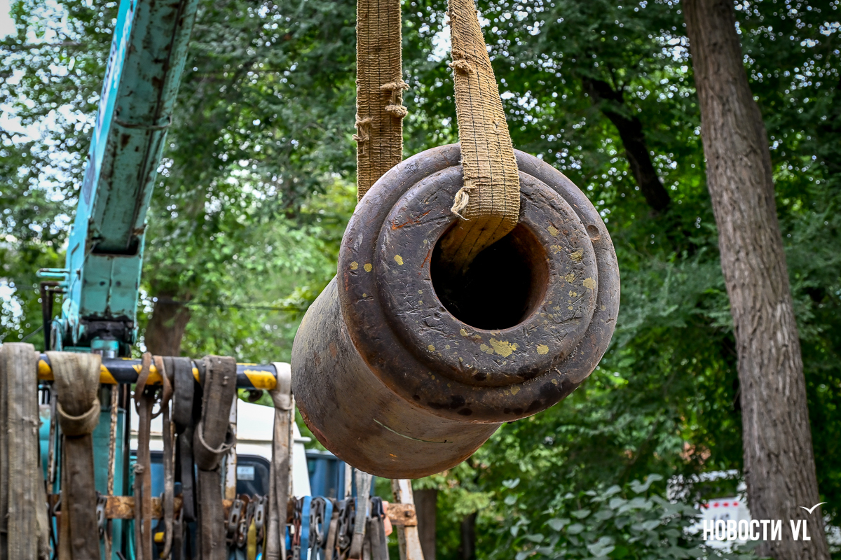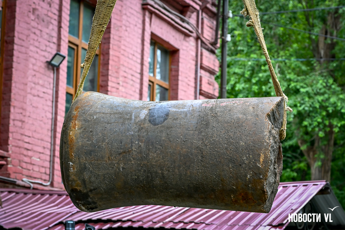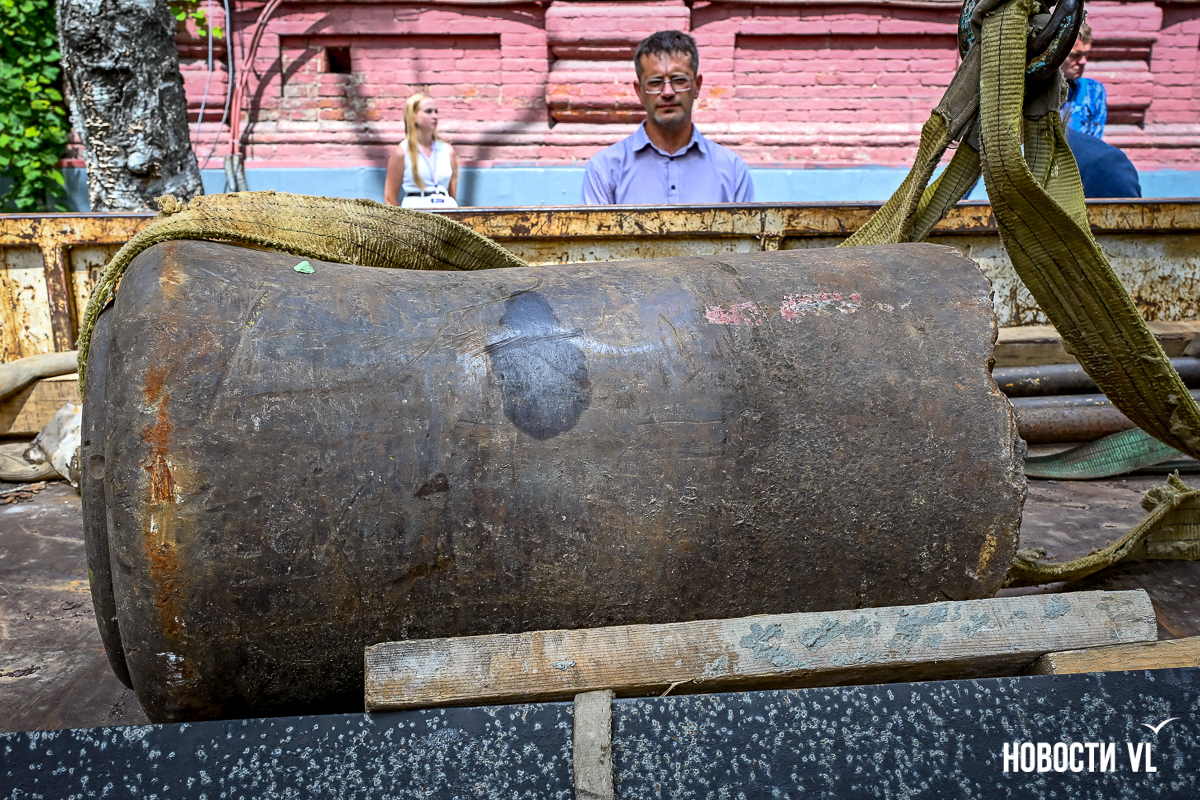 Заместитель генерального директора по коммерческой работе «Владморрыбпорта» Вячеслав Квашнин рассказал, что артефакт нашли водолазы при осмотре причальных шпунтов. Для портовых кранов поднять 660 кг – можно сказать, вообще не работа. И чугунную дульную часть извлекли из воды.