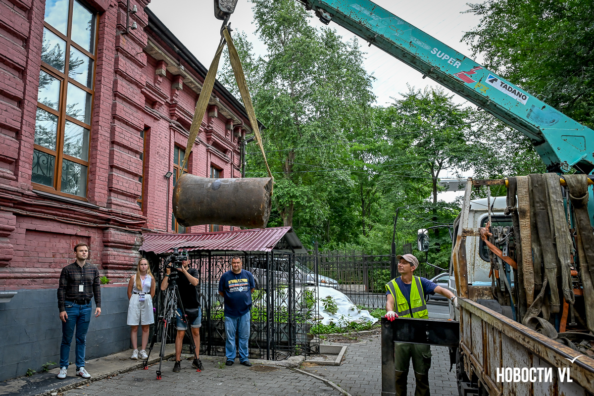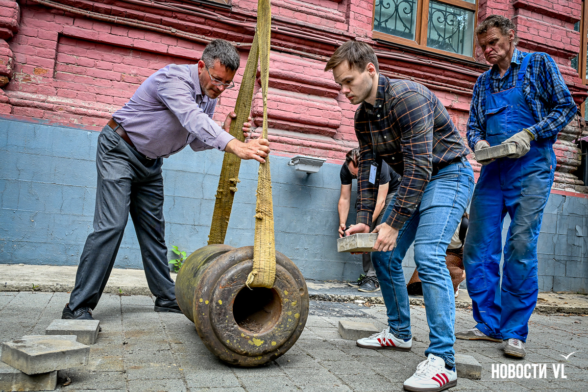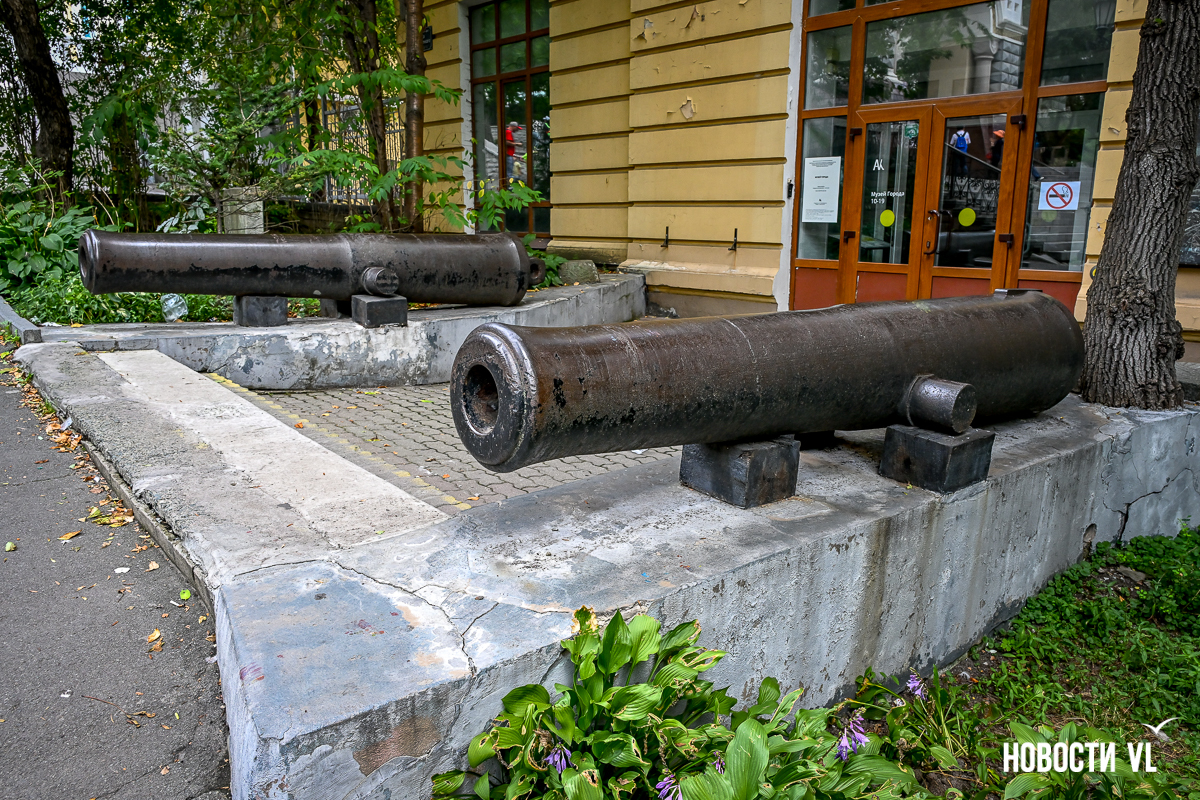 Фонды Дальневосточного музея-заповедника истории Дальнего Востока им. В. К. Арсеньева пополнились интересным экспонатом – дульной частью пушки, предположительно, атрибутированной началом XIX века. Механически отпиленную часть орудия нашли специалисты «Владморрыбпорта» под своими причалами, почистили и торжественно передали музею. Теперь новый экспонат «поселился» во дворике Музея города на Петра Великого, 6.