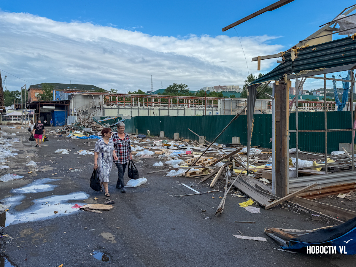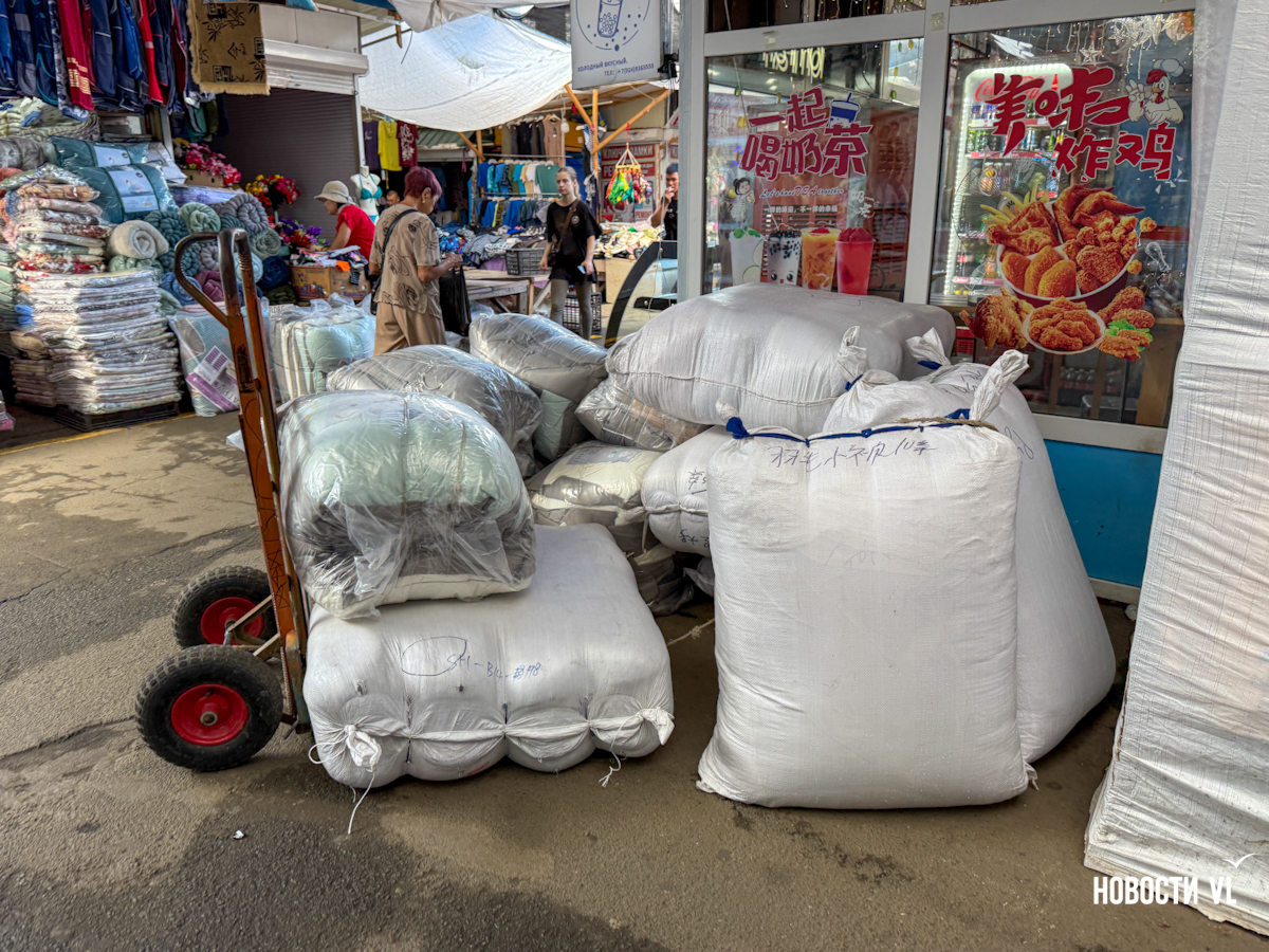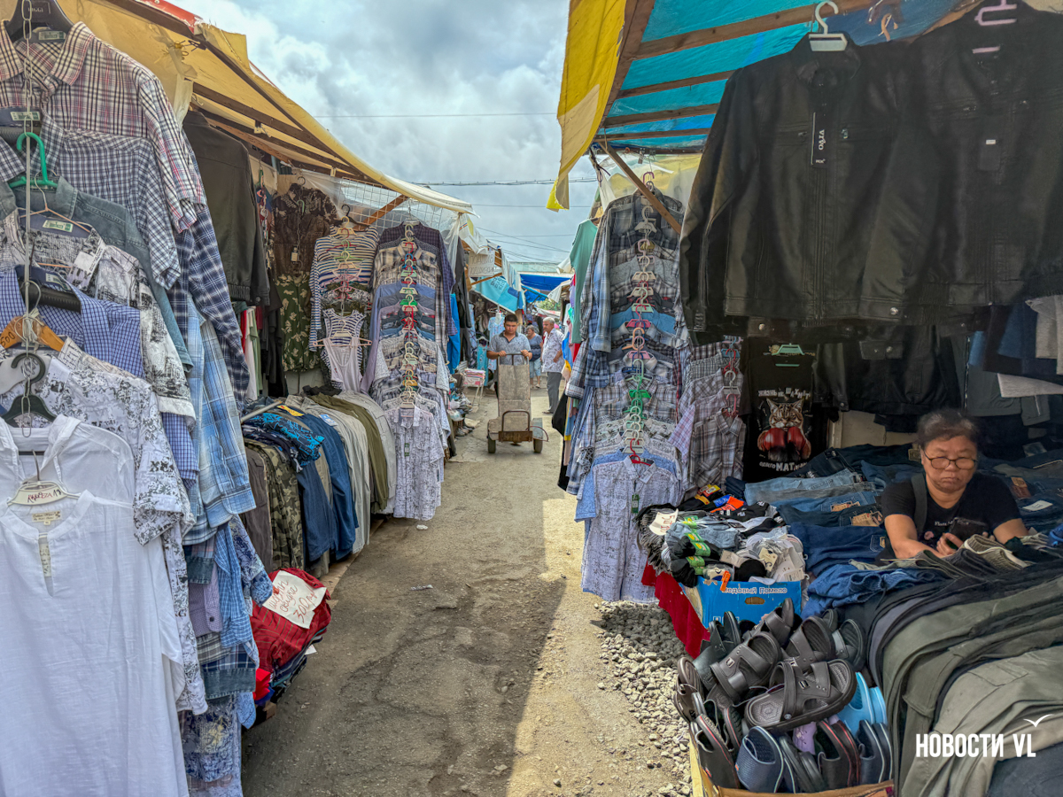 Часть продавцов с торговых рядов, которые сейчас сносят погрузчиком, перешли на ту часть рынка, что пока легальная – от «Мясного рынка» на Фадеева до мостика на Борисенко. Кто-то устанавливает раскладные столики и выкладывает на них товар, а кто-то в рядах таких же продавцов находит знакомых и пристраивается к ним. А вот в «Китай-город» пока никто не заявлялся. Да и мест там не так много, торговые ряды и так стоят впритык друг к другу.