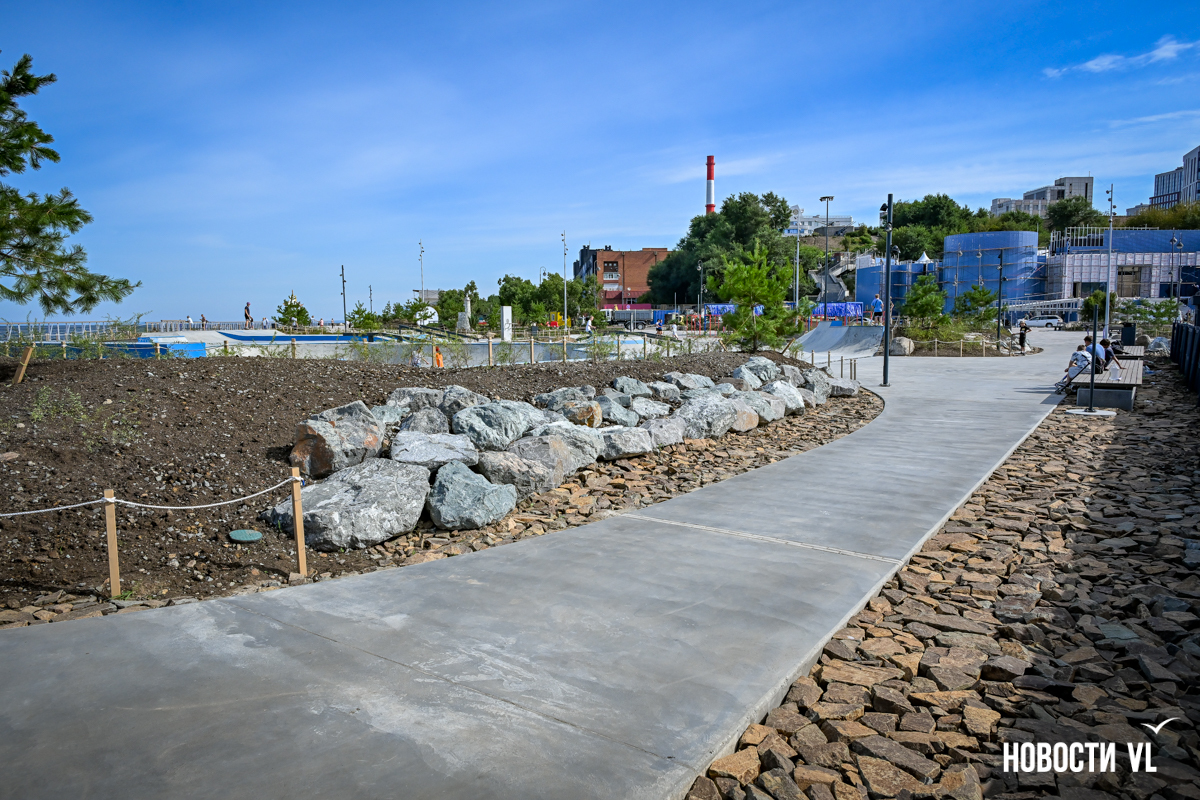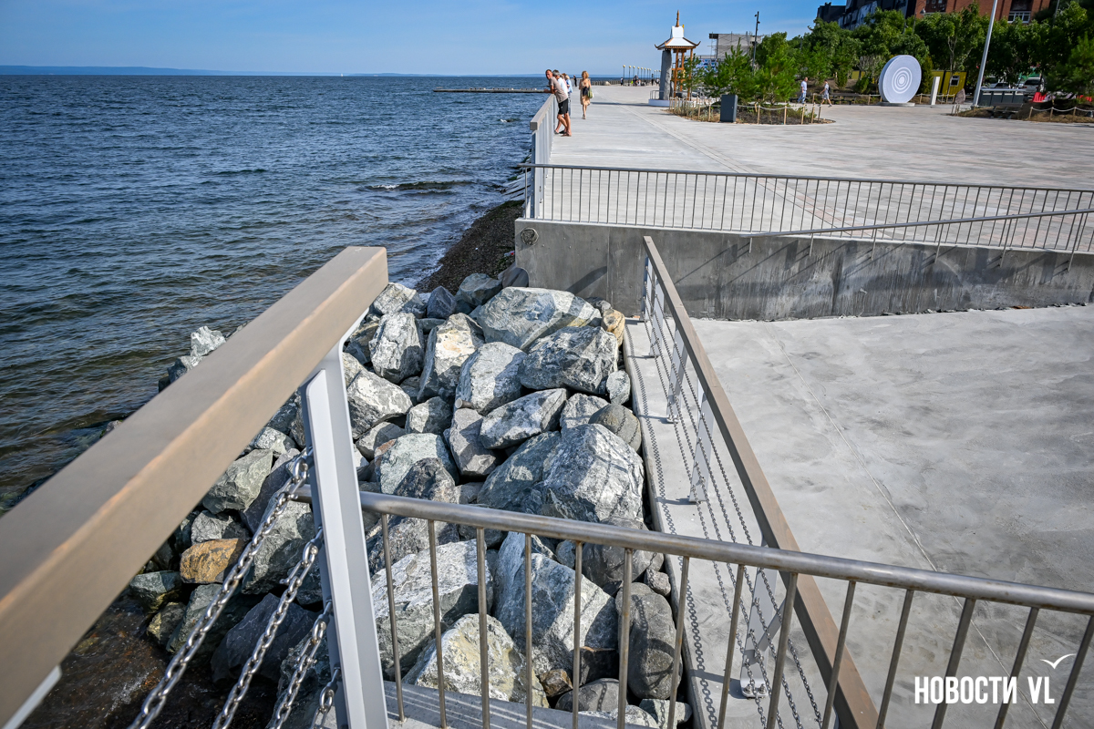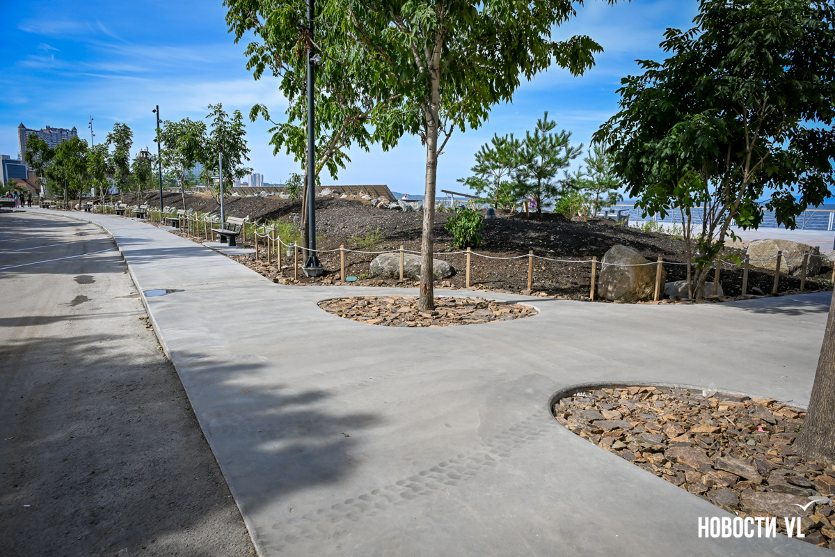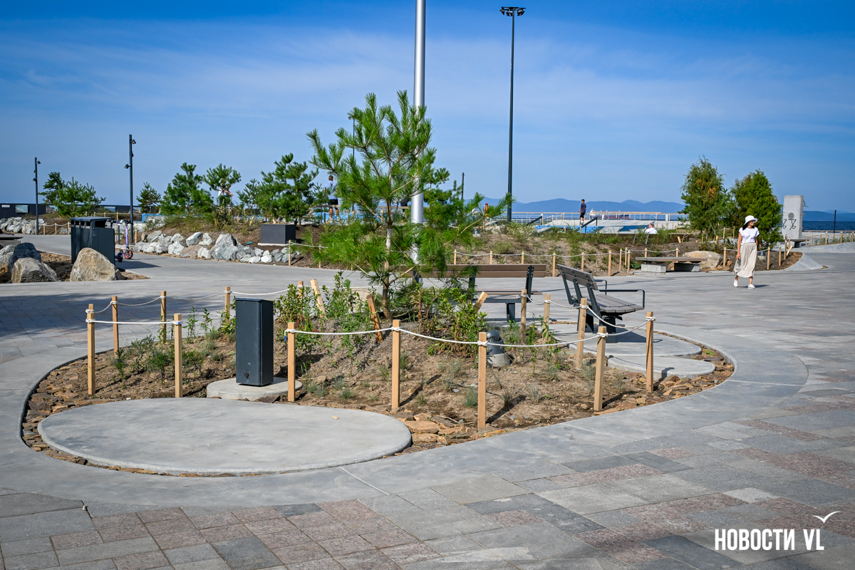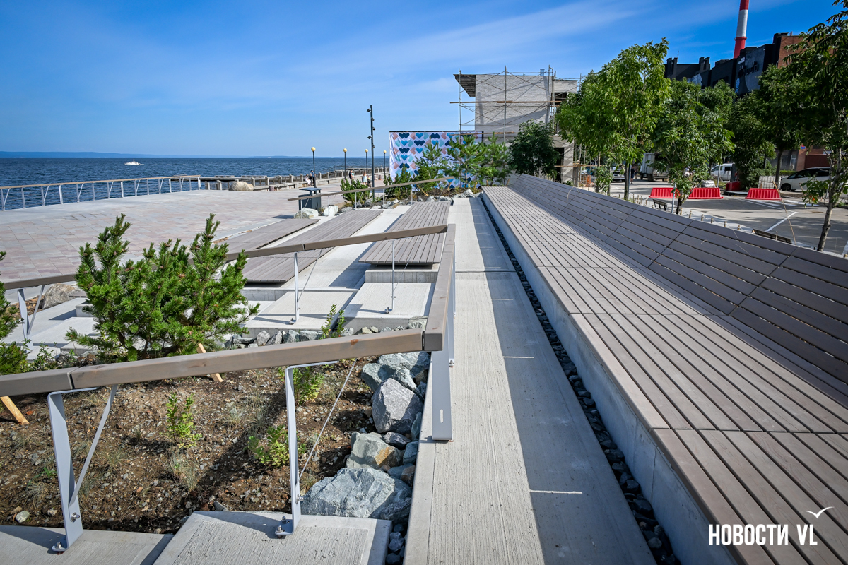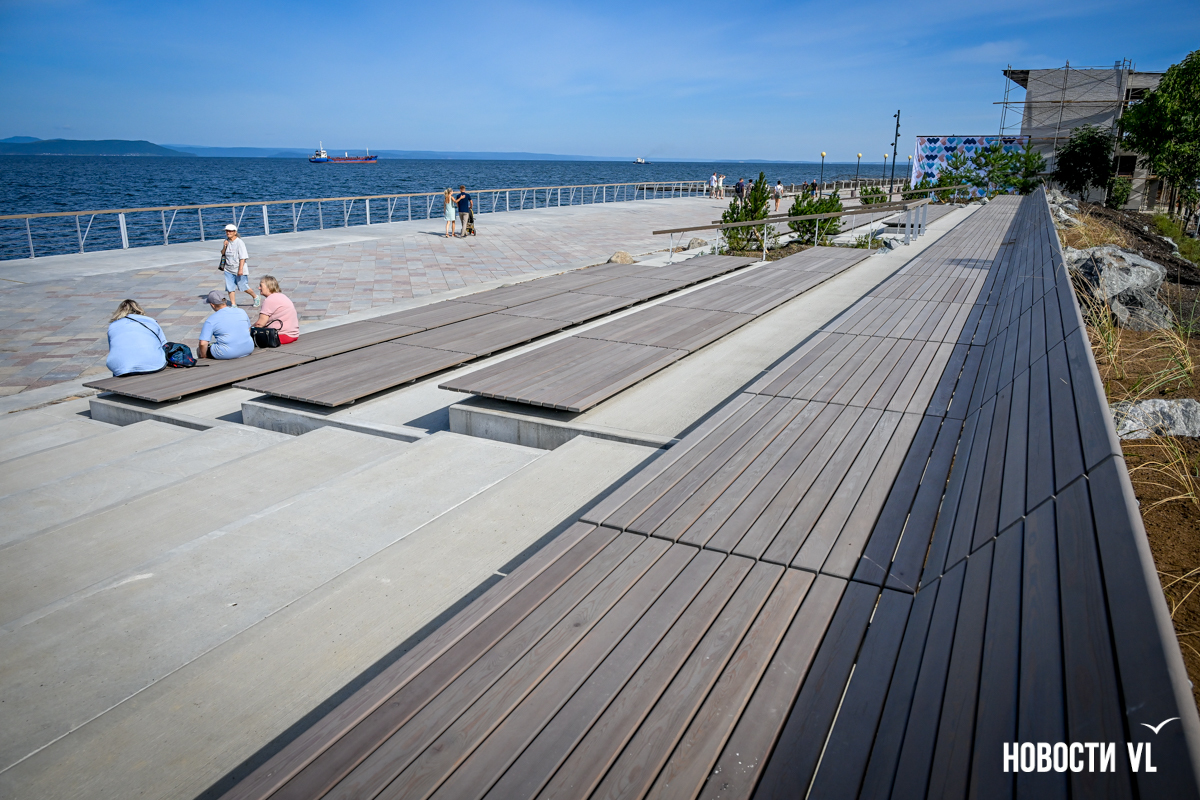 В среду, 20 августа, во Владивостоке после реконструкции неожиданно открыли набережную около «Олимпийца», убрав все строительные заборы. По первоначальным планам, это собирались сделать на два дня позже. Проезд на парковку около спорткомплекса пока ещё ограничен, зато пешеходы уже могут в полной мере пользоваться обновлённым общественным пространством. Главные изменения – появились клумбы-островки, зона амфитеатра с лежаками, новые ограждения не перекрывают вид на море, но уменьшилась площадь парковки. Украсили территорию несколько арт-объектов, ранее стоявших на «Улице Дальнего Востока» на ВЭФ.