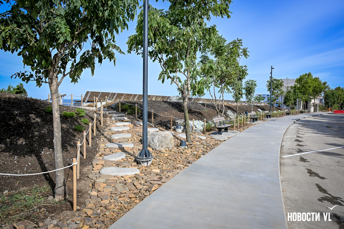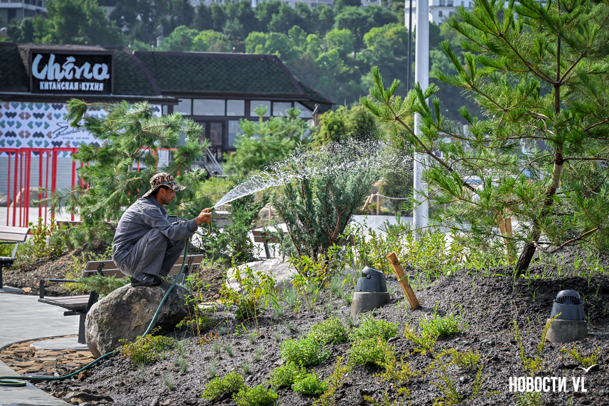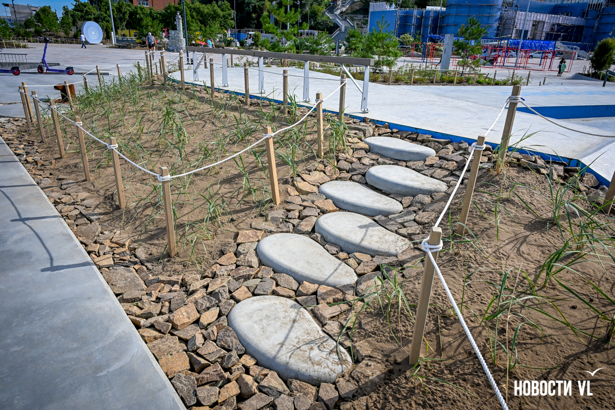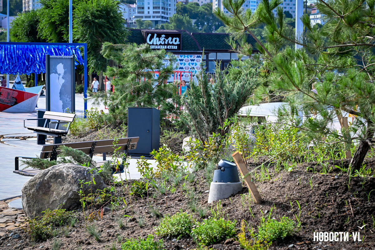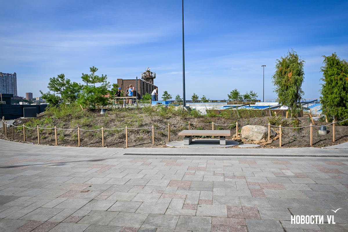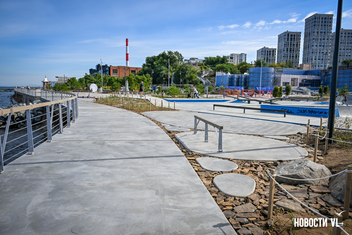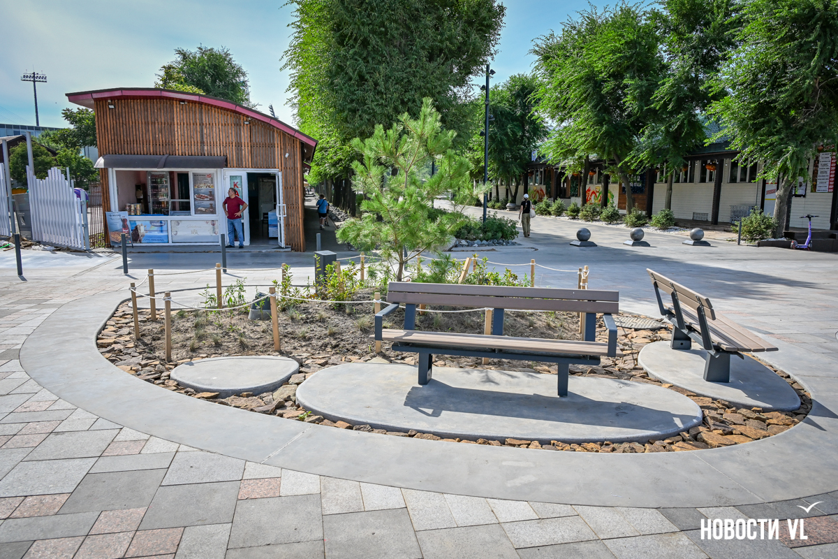 В среду, 20 августа, во Владивостоке после реконструкции неожиданно открыли набережную около «Олимпийца», убрав все строительные заборы. По первоначальным планам, это собирались сделать на два дня позже. Проезд на парковку около спорткомплекса пока ещё ограничен, зато пешеходы уже могут в полной мере пользоваться обновлённым общественным пространством. Главные изменения – появились клумбы-островки, зона амфитеатра с лежаками, новые ограждения не перекрывают вид на море, но уменьшилась площадь парковки. Украсили территорию несколько арт-объектов, ранее стоявших на «Улице Дальнего Востока» на ВЭФ.