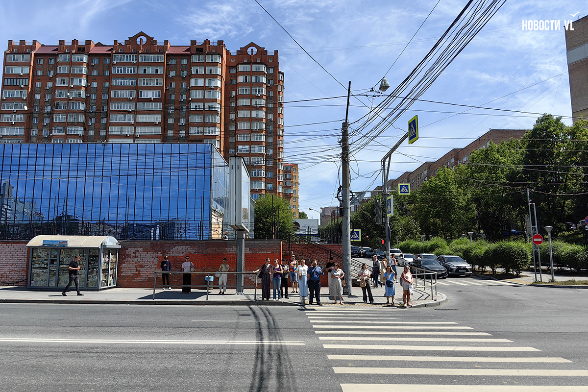 Осенью прошлого года в районе Дальпресса наконец-то убрали ограждение стройки жилого комплекса, а для пешеходов оборудовали тротуар на опасном повороте – раньше здесь была только вытоптанная за годы тропа. Однако ровно посреди тротуара остался столб. Когда-то он был частью контактной трамвайной сети. Но когда троллейбусы с улиц Владивостока исчезли, сети не убирали.