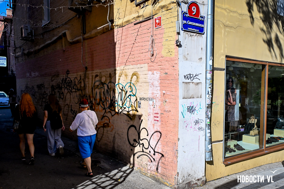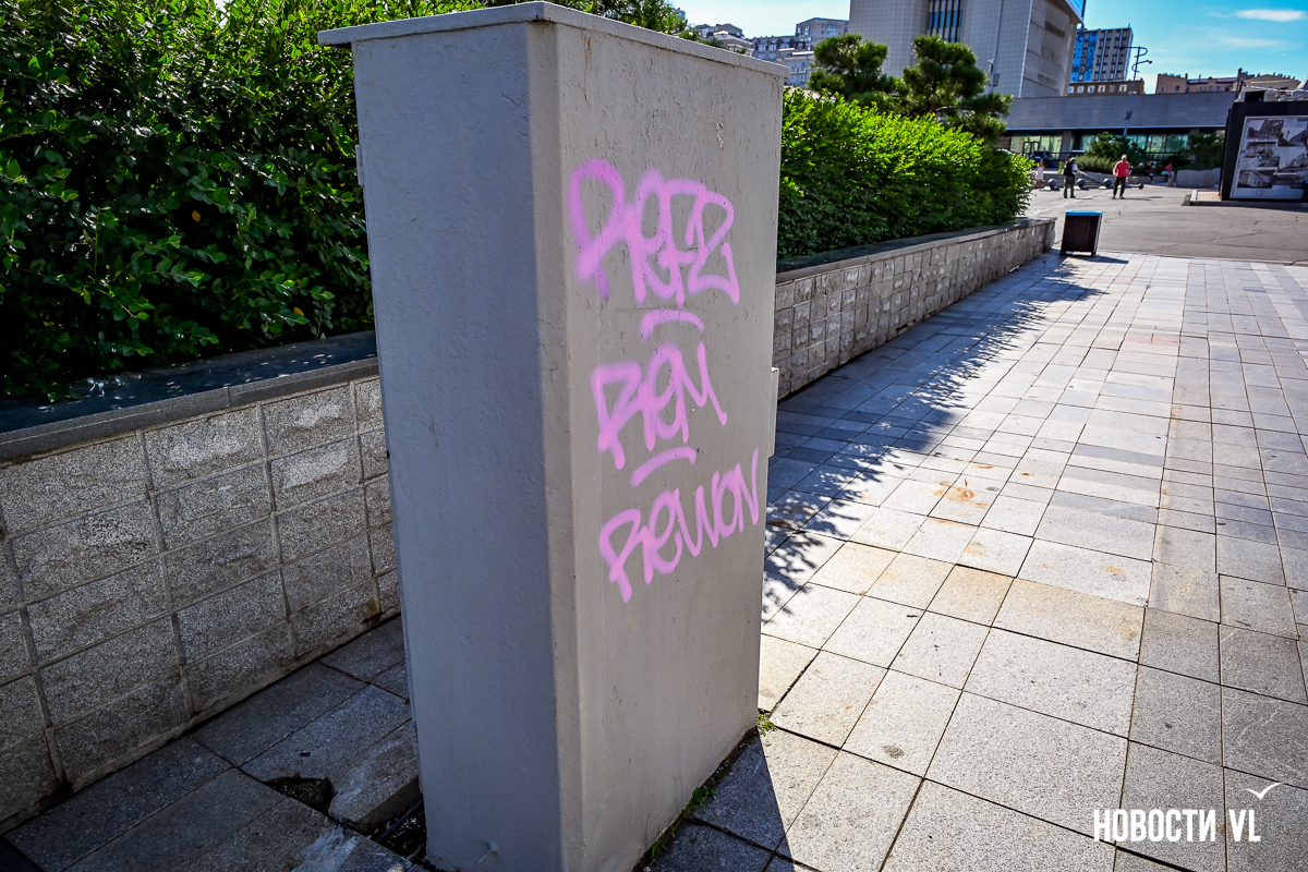 Светланская улица во Владивостоке, казалось бы, должна быть лицом города, его визитной карточкой. Но самый «центр центра», участок от Дальрыбвтуза до гостиницы «Версаль», представляет собой печальное зрелище – подсохшие зловонные лужи и пятна от жвачки под ногами. Отваливающая плитка и облупившаяся краска на стенах. И почти каждая поверхность изуродована граффити.