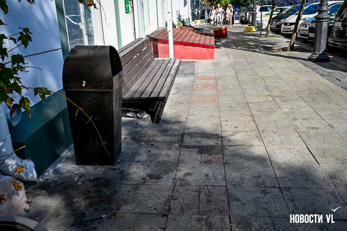 Создаётся впечатление, что этой части города давно не уделяли должного внимания, хотя это не так. Городские службы исправно моют Светланскую почти ежедневно, но либо не очень тщательно, либо недостаточно эффективно. Такое состояние главной улицы города не просто вызывает грусть – оно кричит о необходимости срочных мер по поддержанию достойного вида одного из важнейших городских пространств.