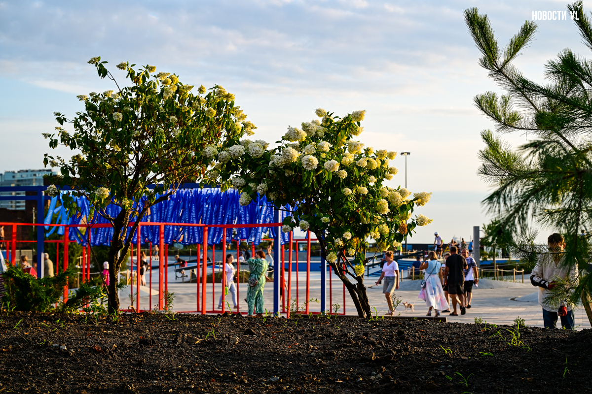 «Из положительных моментов – набережная стала плоская, широкая, очень стало просторно. Вызывает вопросы подбор растений, конечно, но это время покажет – выживут у нас туи или нет», – делится сомнениями Августа.