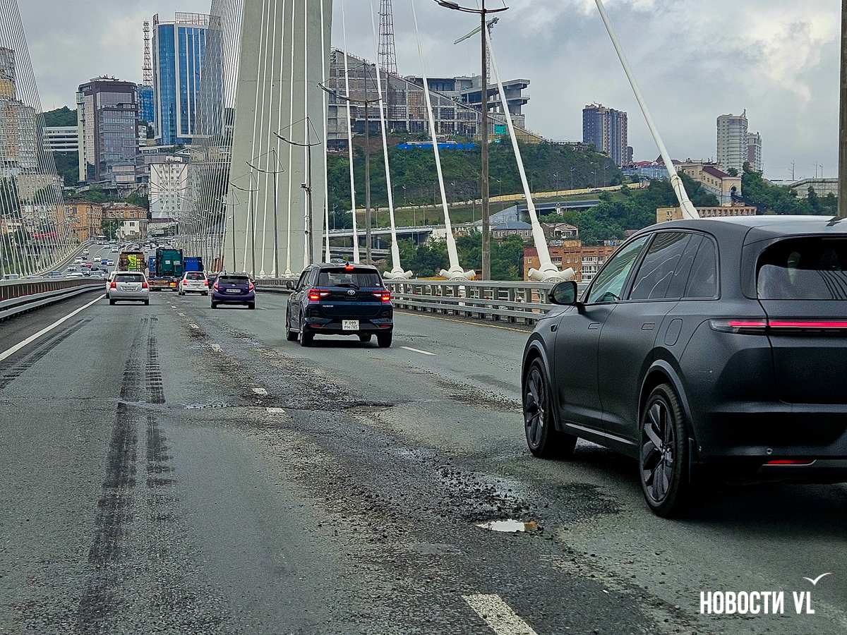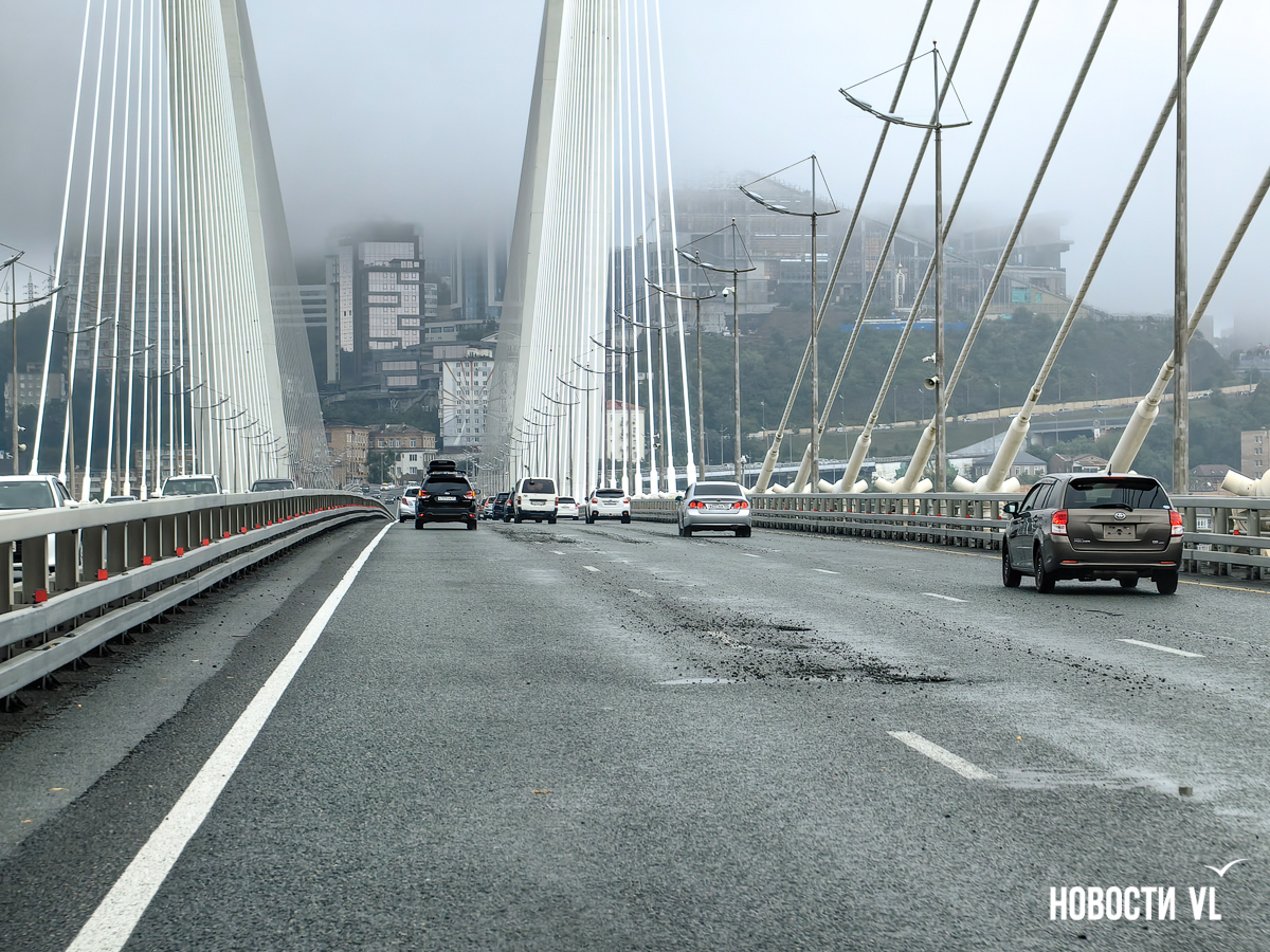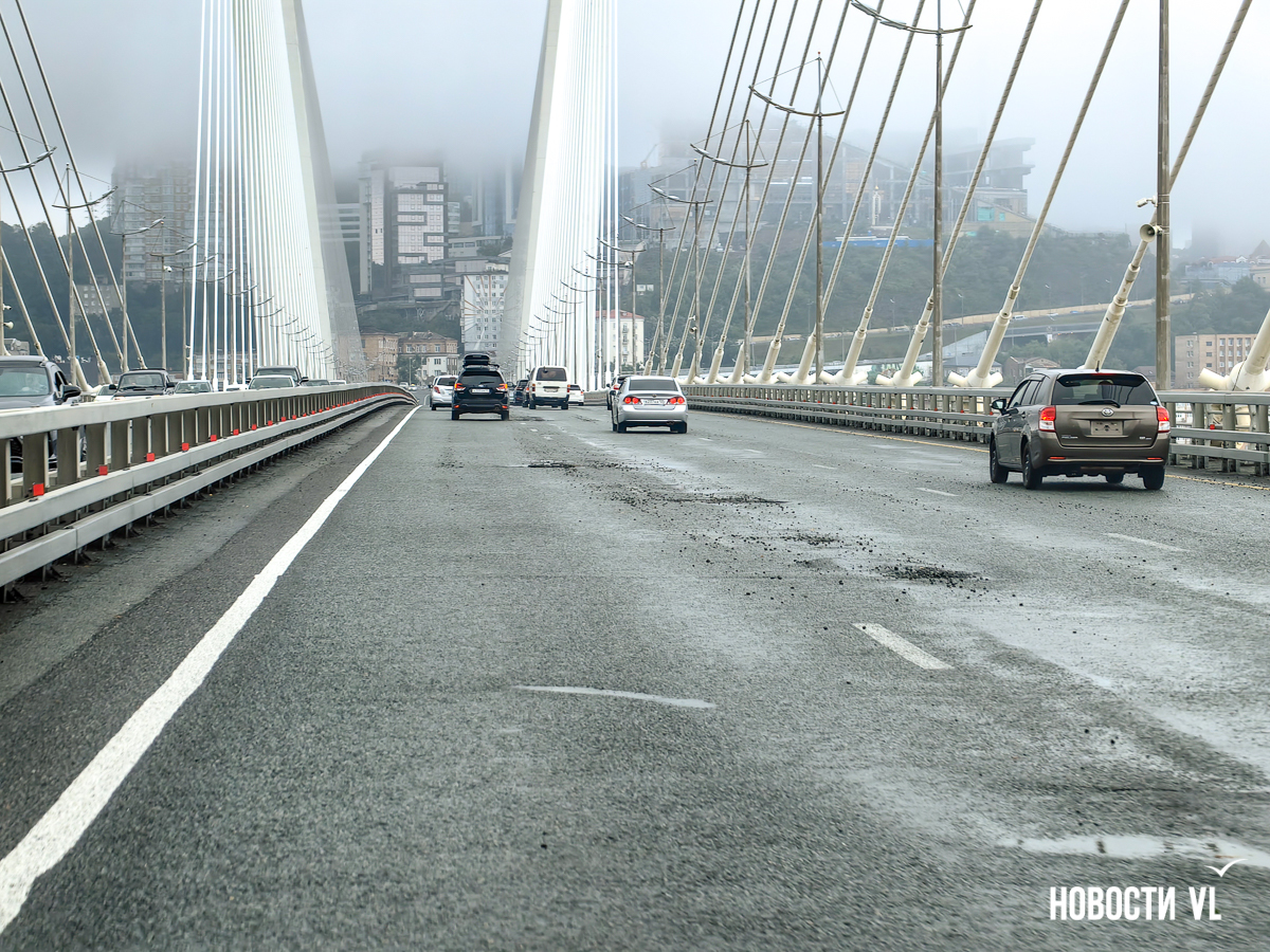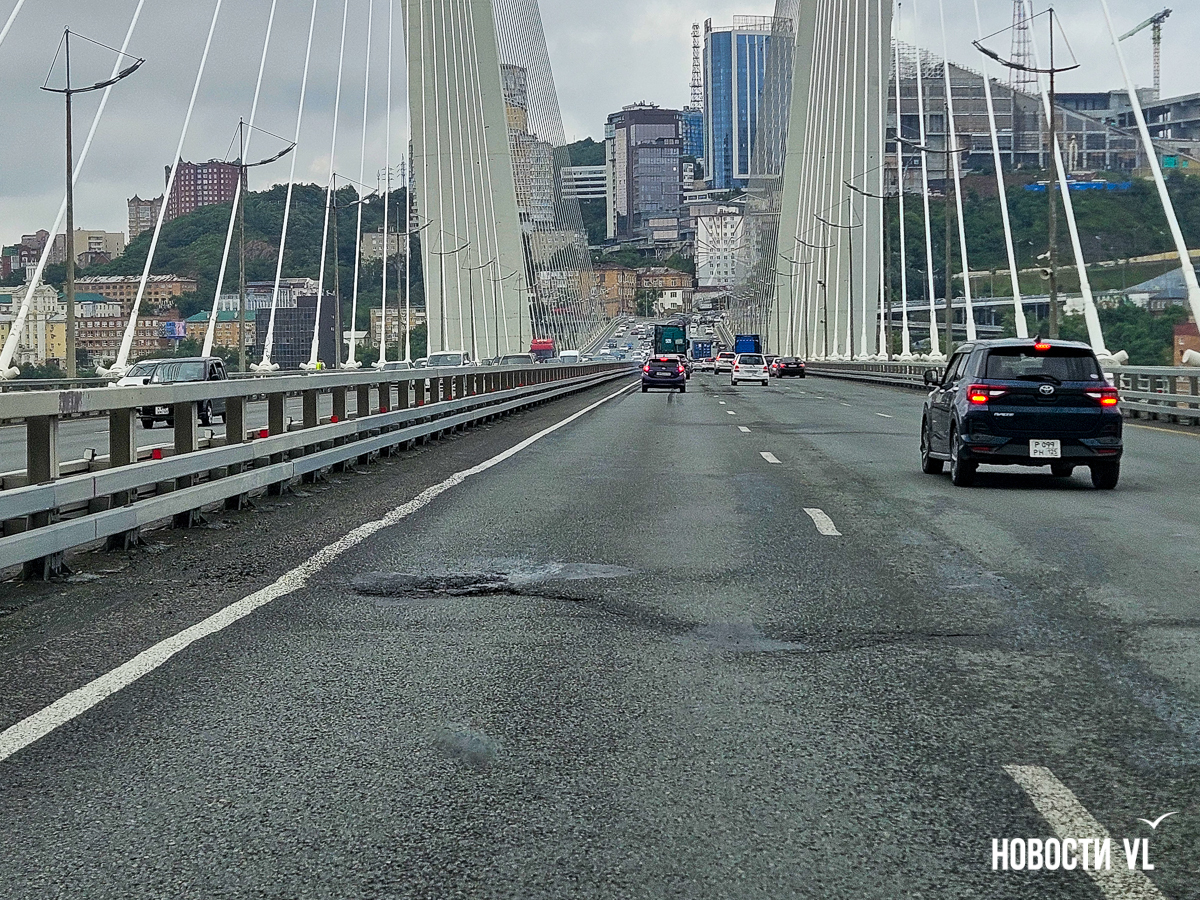Морскому городу положен морской асфальт – и он синхронизировался с сегодняшней погодой. Осадки «разогнали волну» на дорожном покрытии Золотого моста, и он как минимум в третий раз за это лето требует срочного ремонта. Его, вероятно, начнут делать завтра, когда распогодится.