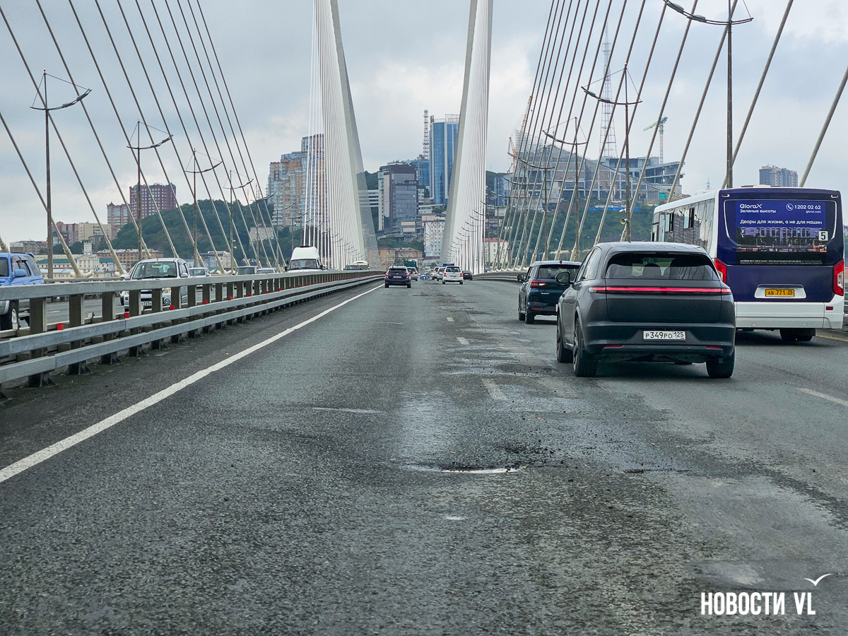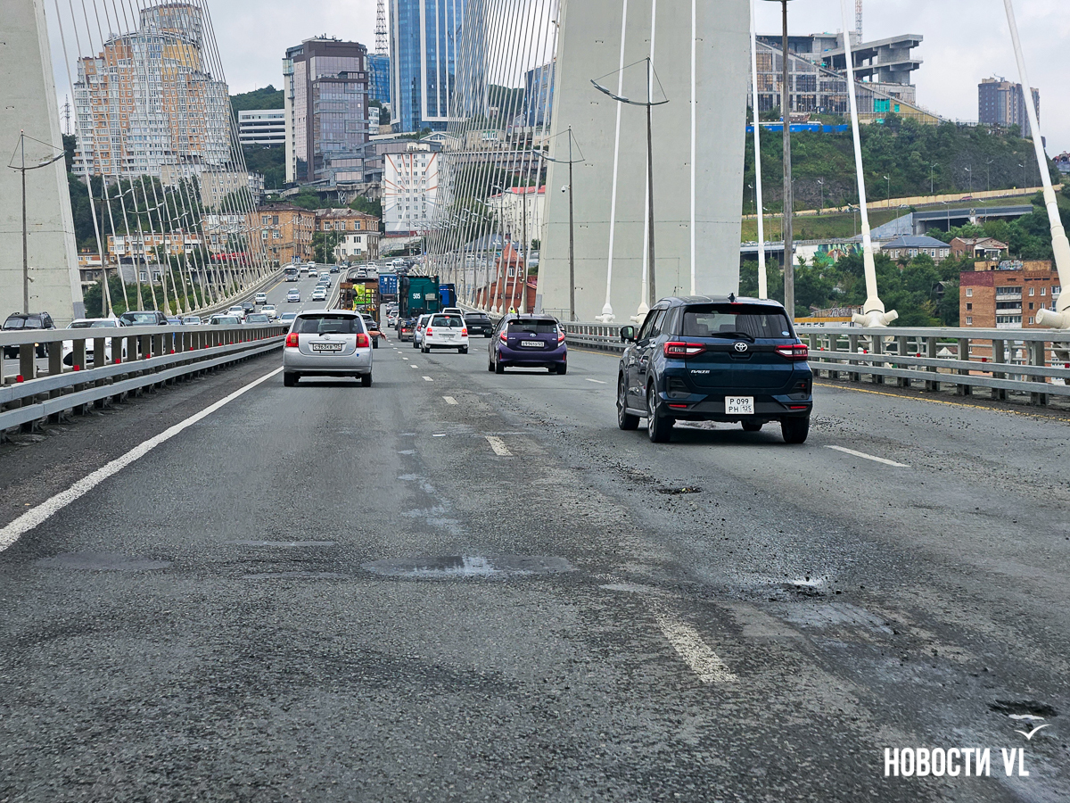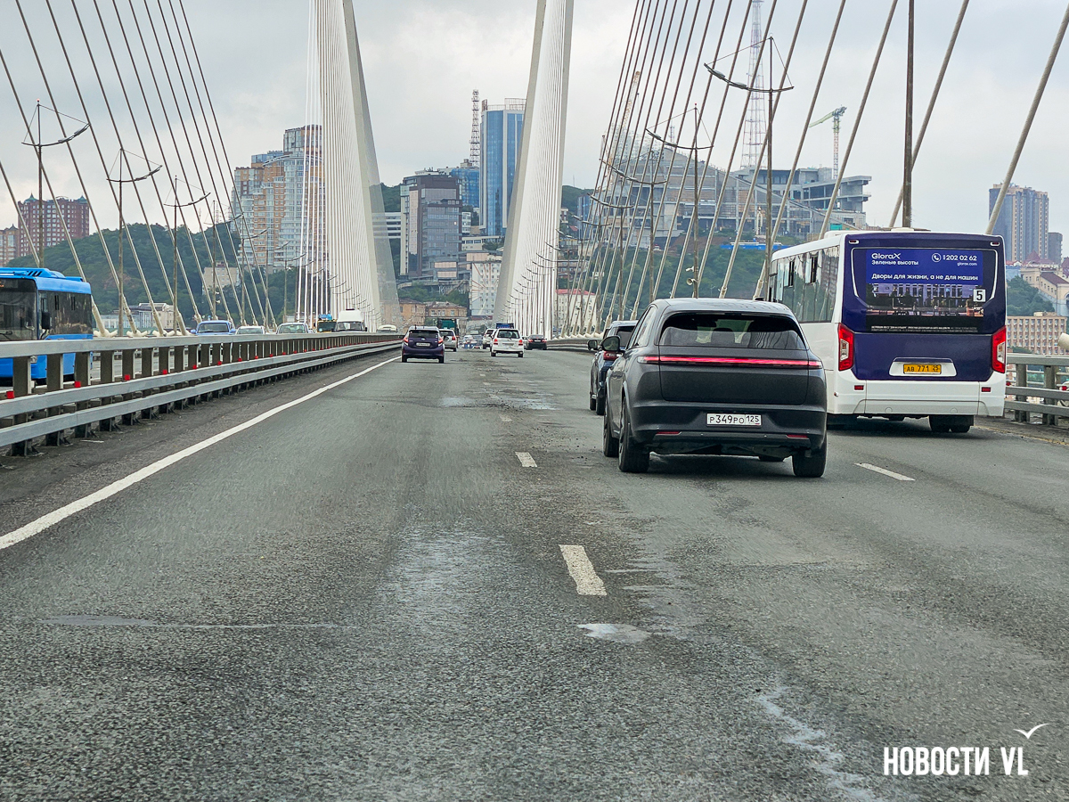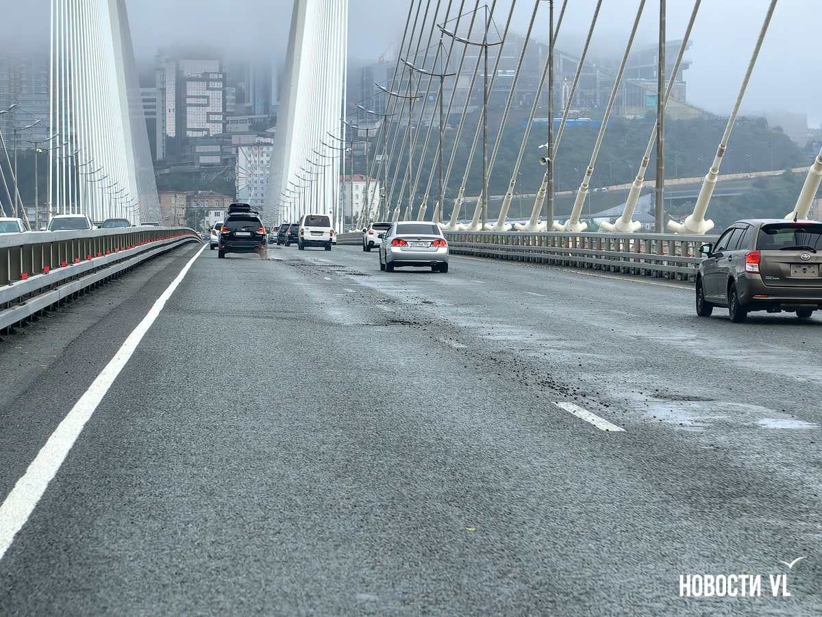 Морскому городу положен морской асфальт – и он синхронизировался с сегодняшней погодой. Осадки «разогнали волну» на дорожном покрытии Золотого моста, и он как минимум в третий раз за это лето требует срочного ремонта. Его, вероятно, начнут делать завтра, когда распогодится.