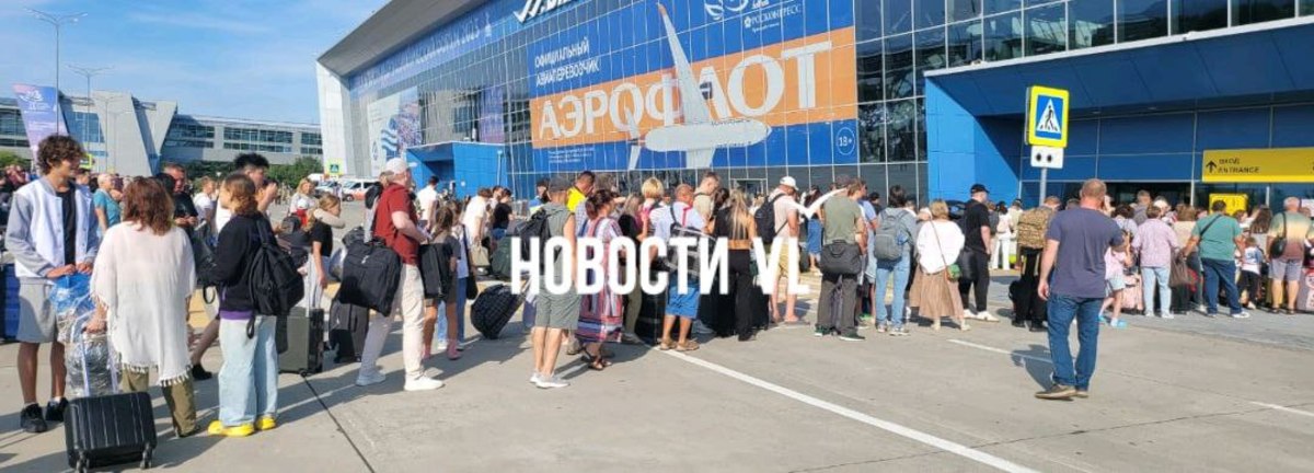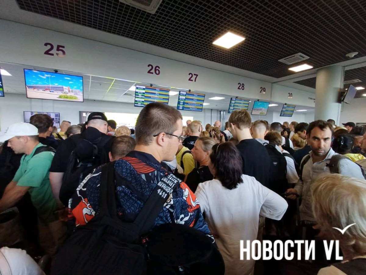 Задержки рейсов в аэропорту Владивостока из-за тумана привели к огромным очередям, которые начинаются ещё до входа в здание. Пассажиры боятся не улететь и возмущаются, что им ничего не говорят. В аэропорту Новостям VL сообщили, что к ажиотажу привела одновременная регистрация сразу на несколько рейсов.