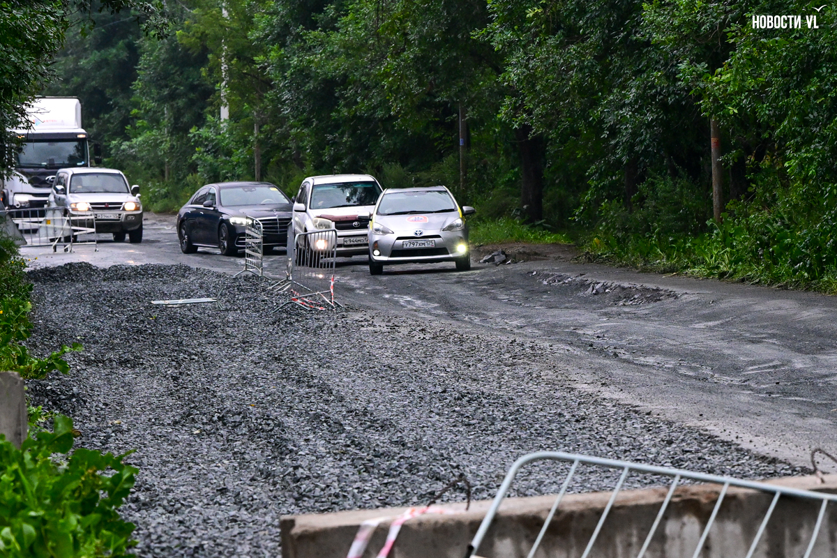 Приморцы, которые вынуждены ездить по этому маршруту, рассказывают, что путь – настоящая западня. Ямы раскопали в шахматном порядке, и двусторонняя дорога стала способна уместить только один ряд машин. О реверсивном движении подрядчик не позаботился, поэтому водителям приходится выкручиваться.