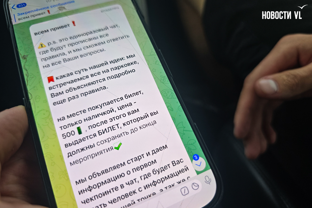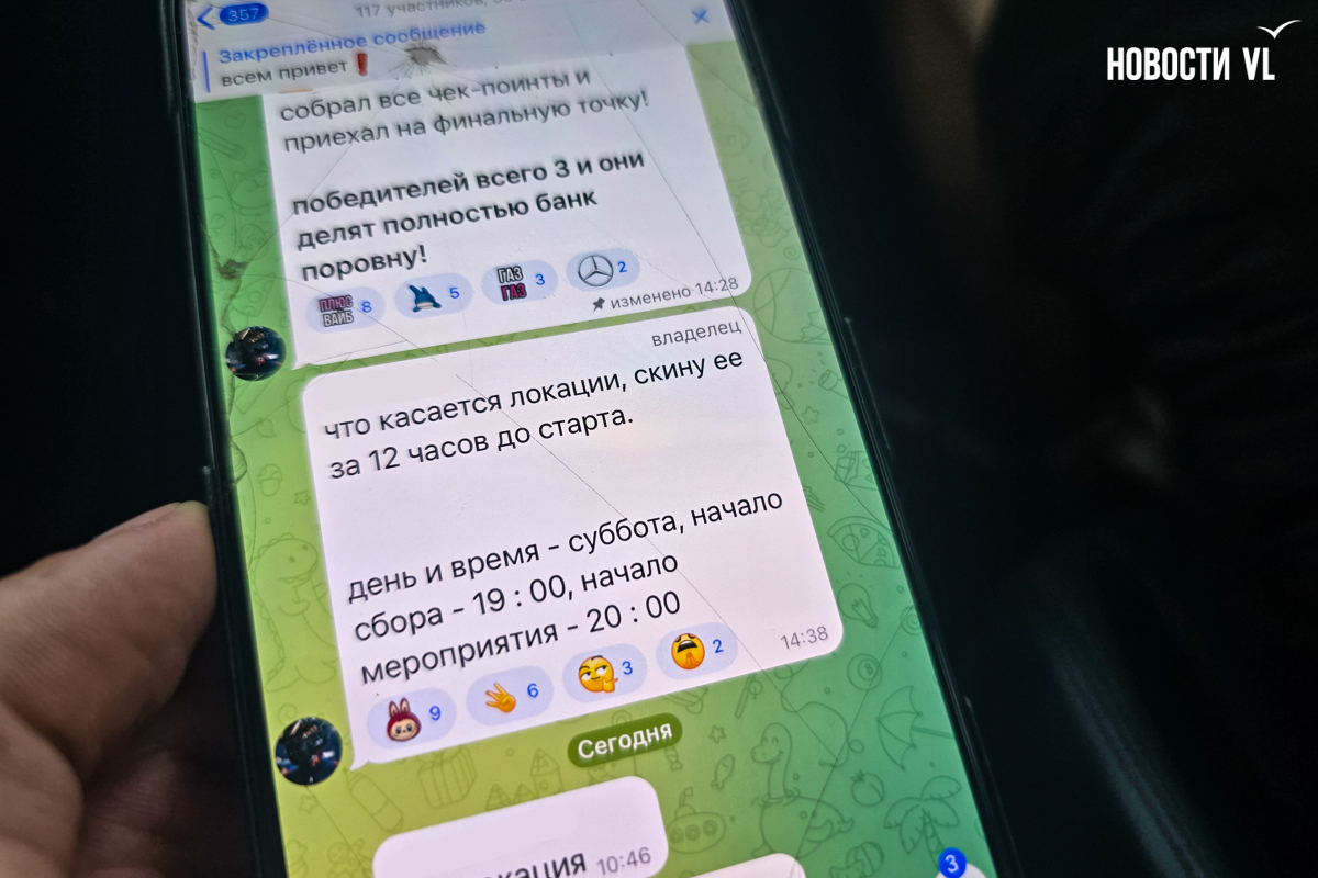 Организаторы этих гонок стали хитрее и теперь устраивают не заезды по острову, а квесты по городу на скорость. Участие стоит 500 рублей, точку сбора сообщают за 12 часов до начала. Один из таких квестов должен был стартовать от бывшей парковки на «Зелёном углу». Наш корреспондент там тоже был. Но к 20:00, когда участникам должны были объяснить правила, приехали два экипажа ГИБДД. Одному из участников выписали штраф за громкую музыку, а остальные поехали на стелу.