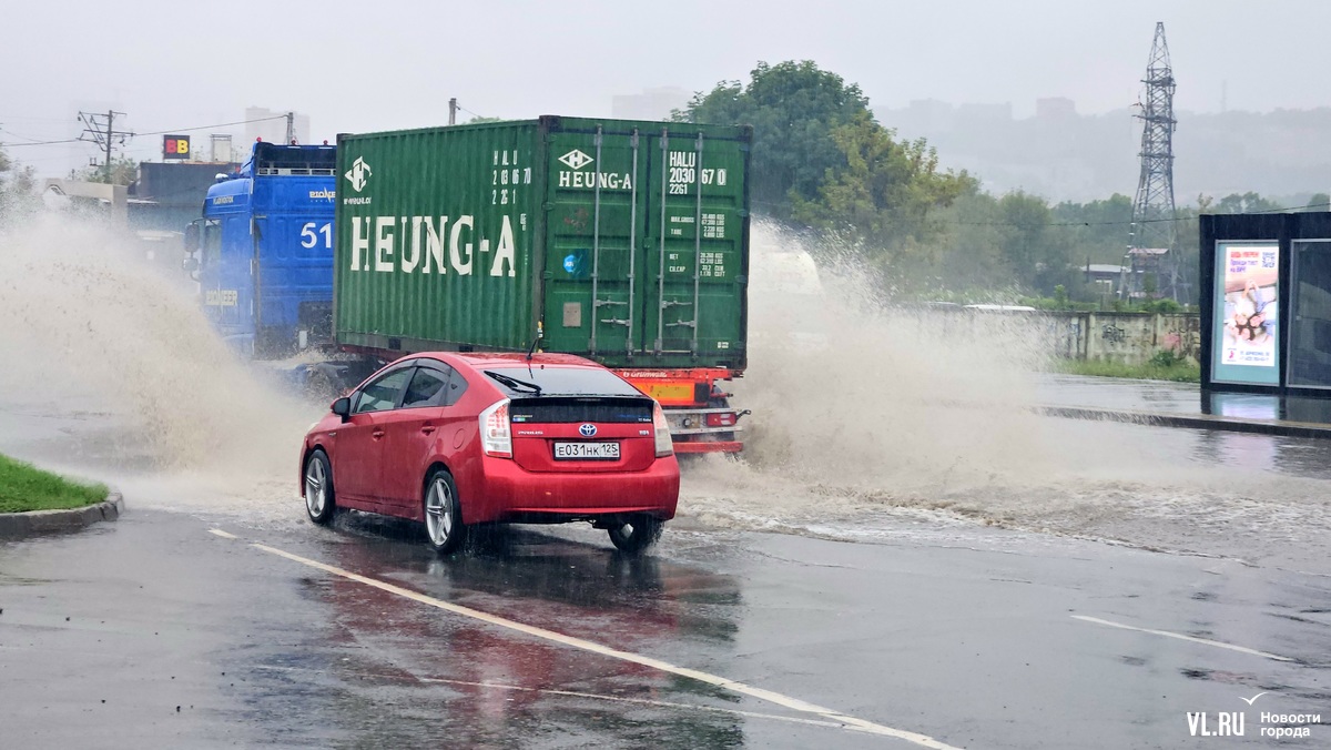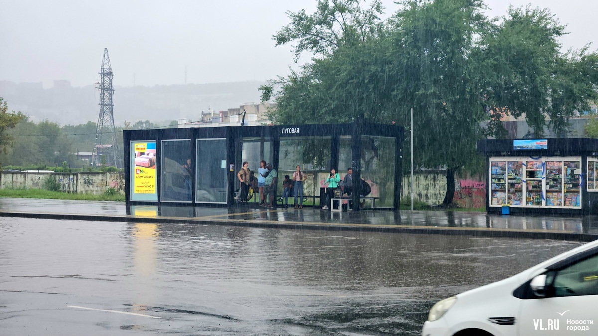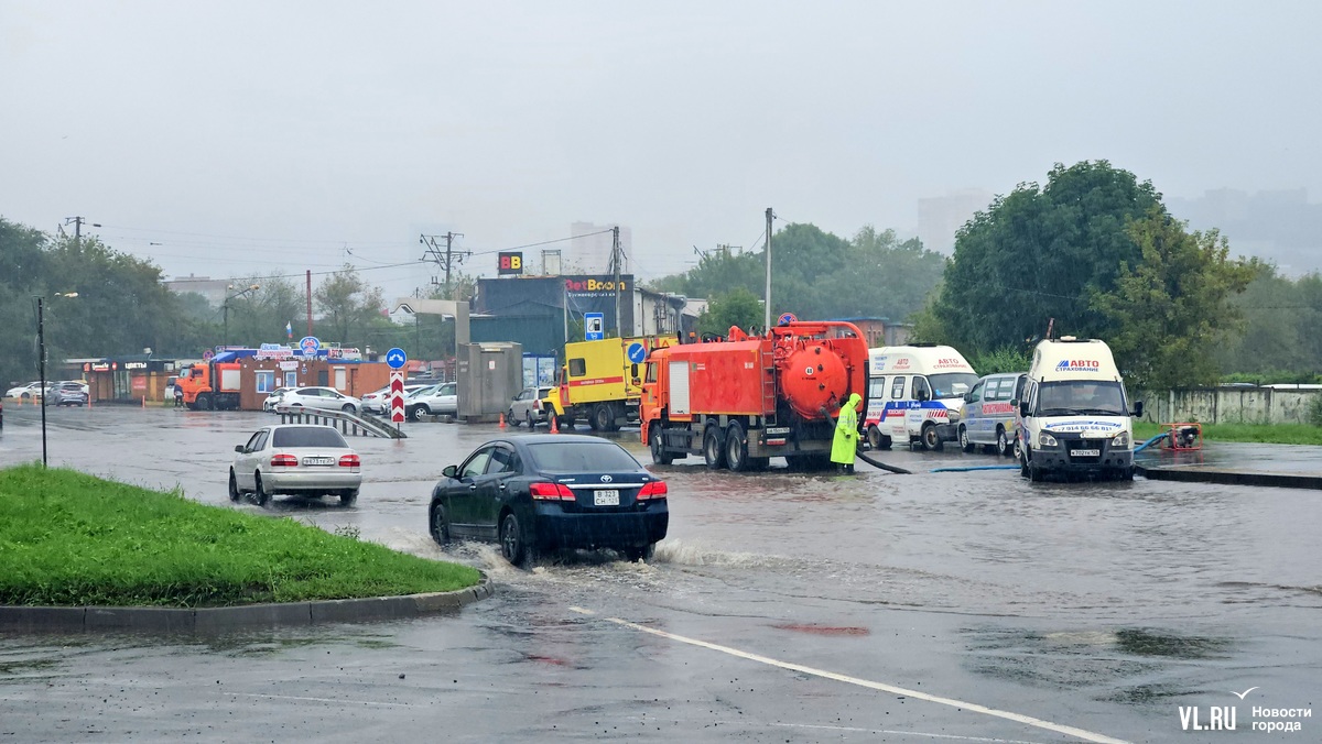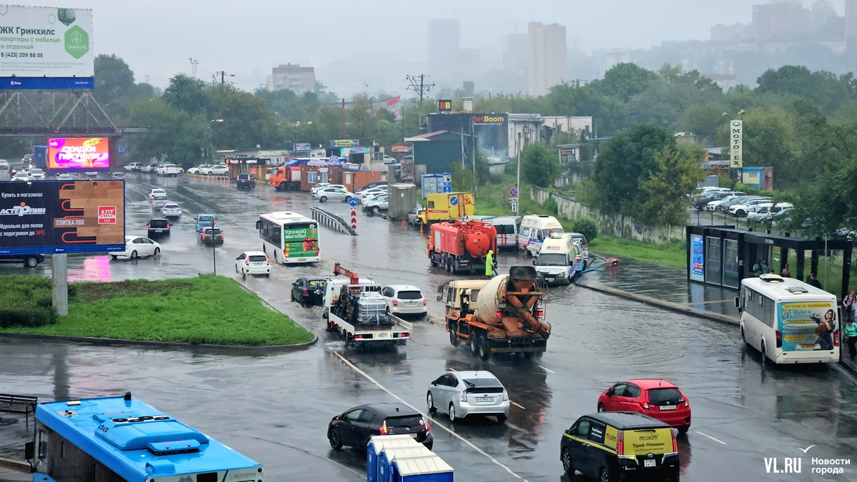 Владивосток начинает тонуть под натиском сильного ливня. Традиционно ушла под воду Луговая площадь. Проезд здесь есть, но воду уже откачивают.
