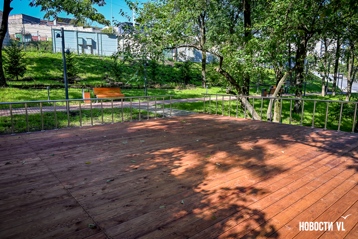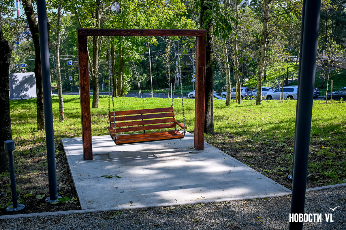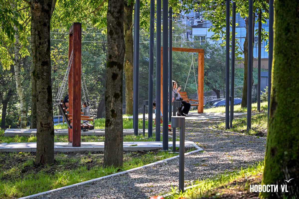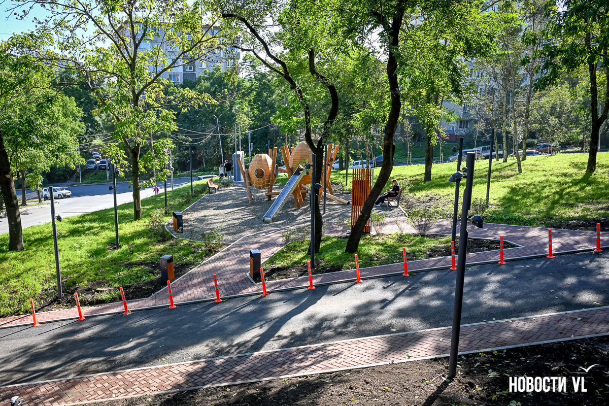 Подрядчик закончил благоустраивать сквер около остановки «Энерготехникум» в районе Борисенко, 102 во Владивостоке. Здесь установили качели, скамейки, урны, делиниаторы, чтобы не парковались машины, деревянную детскую площадку, сцену для мероприятий и стелу «Бухта Тихая». Сквер осталось озеленить – это планируют сделать в конце сентября.