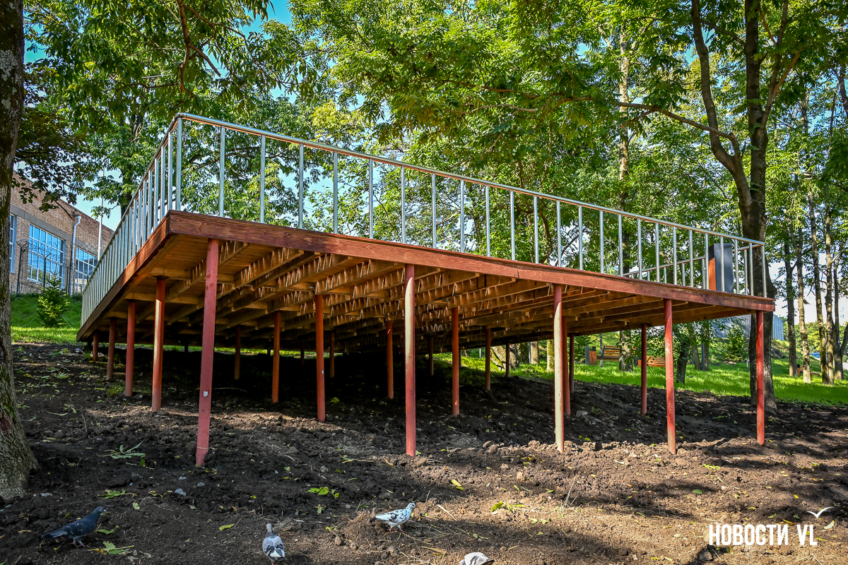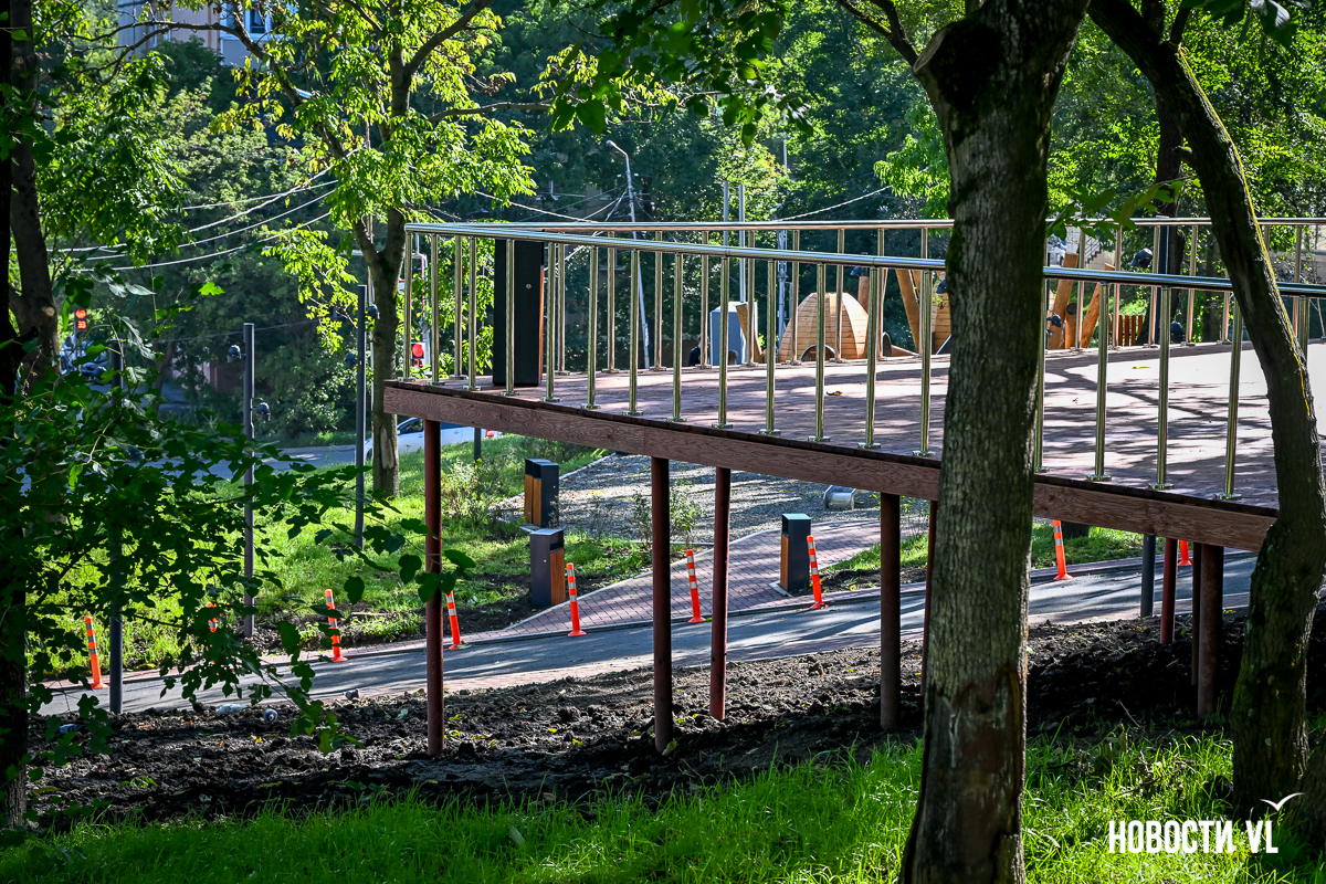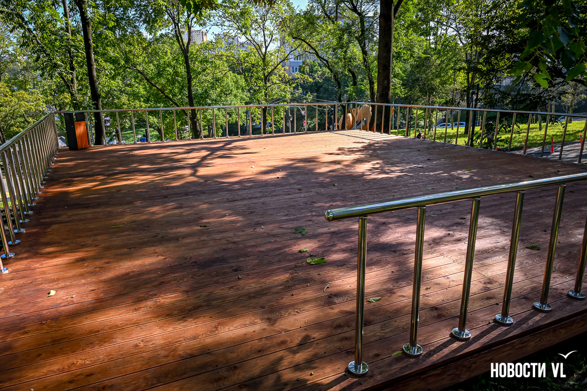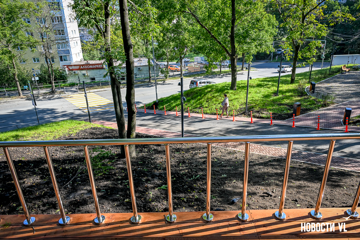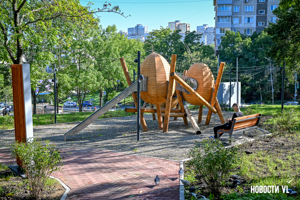 Подрядчик закончил благоустраивать сквер около остановки «Энерготехникум» в районе Борисенко, 102 во Владивостоке. Здесь установили качели, скамейки, урны, делиниаторы, чтобы не парковались машины, деревянную детскую площадку, сцену для мероприятий и стелу «Бухта Тихая». Сквер осталось озеленить – это планируют сделать в конце сентября.
