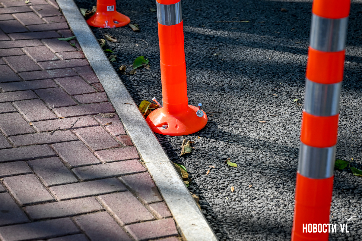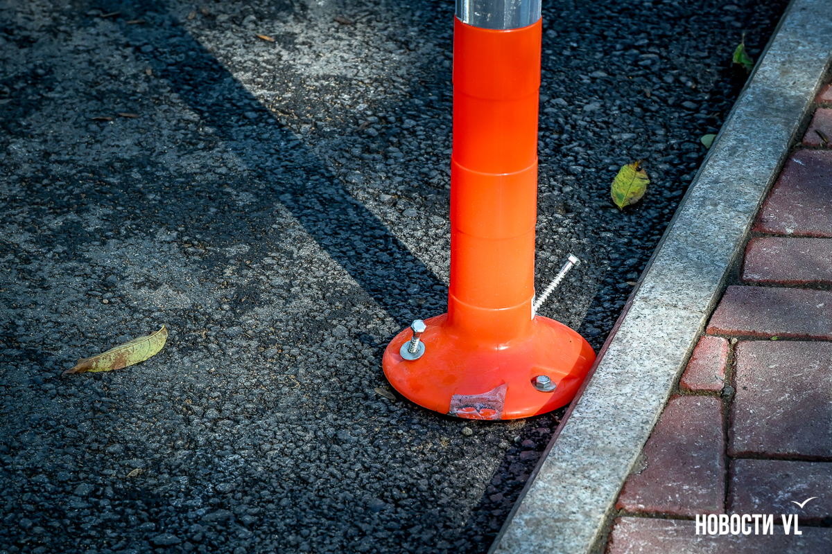 Ближе к остановке «Сахалинская, 38» на проезде к колледжу установили делиниаторы – вероятно, от хаотичной парковки машин и чтобы обеспечить безопасность детей на новой игровой площадке.