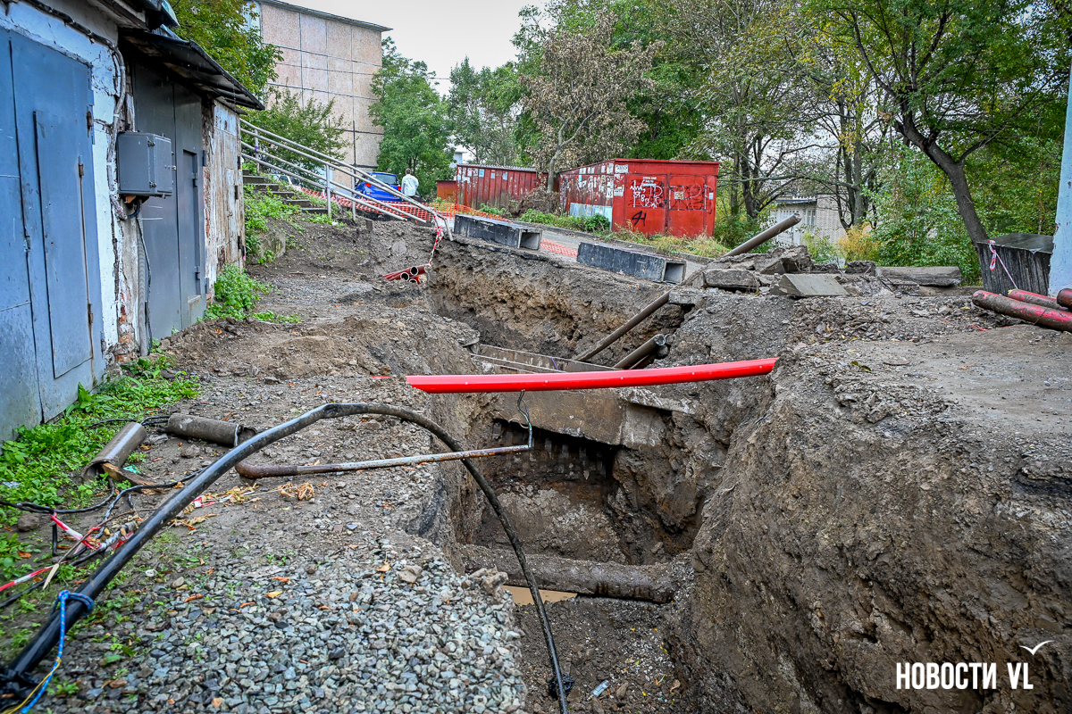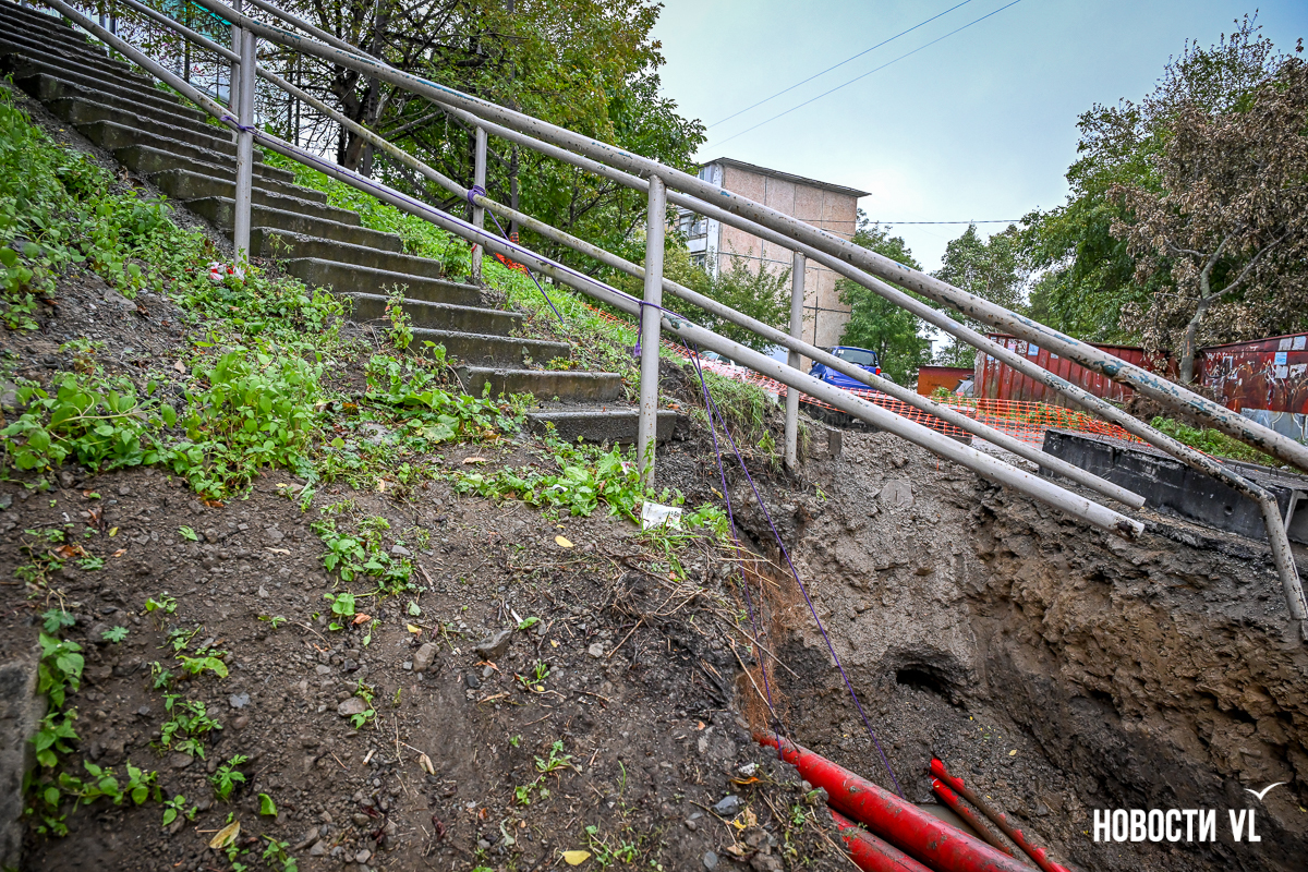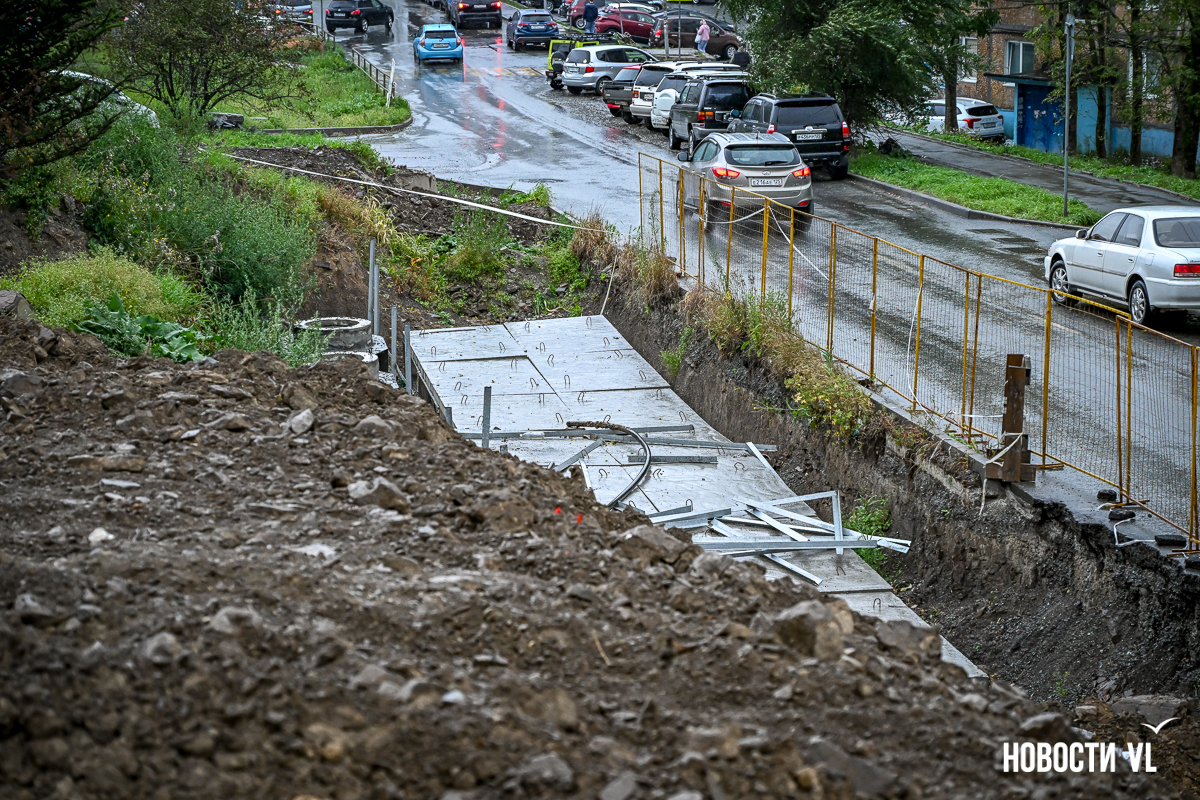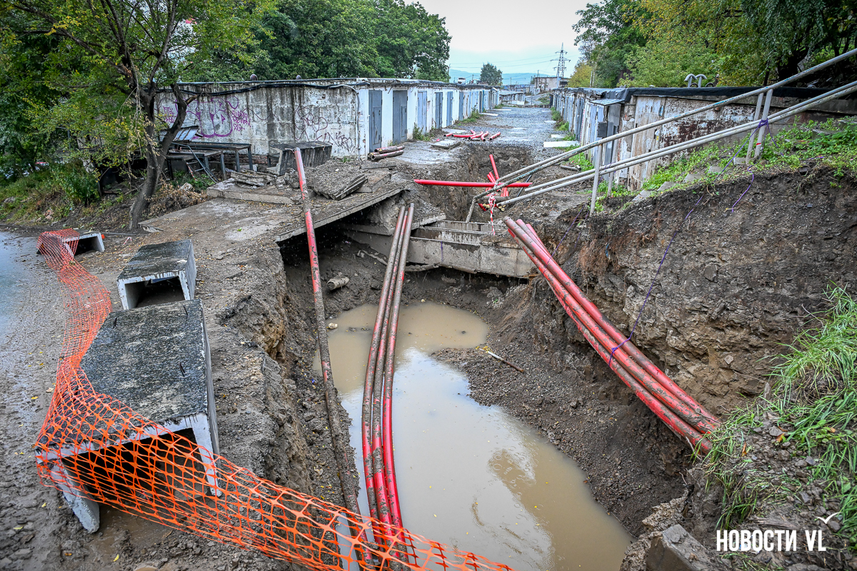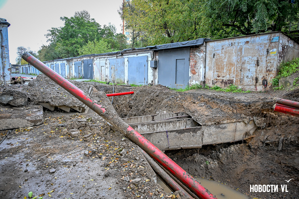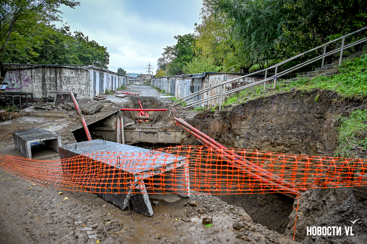 Гаражный кооператив «Восход» рядом с домом № 55 на Сахалинской во Владивостоке снова в осаде. Здесь почти два года тянут высоковольтный кабель в рамках реконструкции линии электропередачи 110 кВ «Владивостокская ТЭЦ-2 – Голдобин». В апреле тут уже полностью перекрывали проезд – из-за огромной ямы выбраться было невозможно. Сейчас история повторилась, всё снова перерыто. К тому же лестница, по которой люди идут к остановке и в поликлинику, теперь висит в воздухе – приходится шагать по проезжей части. Рабочих на объекте, по словам местных жителей, который день нет, а техника стоит без дела.
