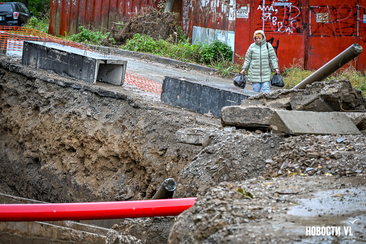 В апреле нынешнего года журналистам пришлось вернуться к этой истории. Если с «Дельфином» и «Союзом» к тому времени более-менее утряслось, то автомобилисты из «Восхода» больше месяца не могли ни въехать, ни выехать. Их единственную дорогу разрыли. Пресс-служба Дальневосточной распределительной сетевой компании отвечала, что котлован останется до конца мая, но – решается вопрос, чтобы положить плиту и прикрыть ради проезда часть ямы. Сейчас, в сентябре, выясняется – котлован есть, а проезда нет.