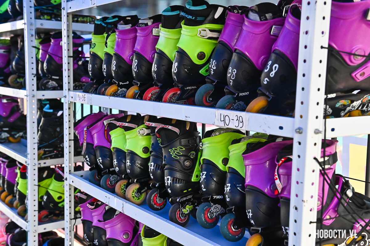 Роллердром организовали на парковке. Его огородили со всех сторон и сделали вход через пункт проката. Сегодня взять ролики и экипировку для катания можно бесплатно. Размеры предлагают от самых маленьких детских до 47-го взрослого. Покрытие асфальтовое, и к его подготовке подошли с большим трепетом – перед открытием с него собрали все камни.