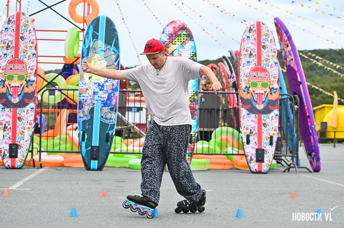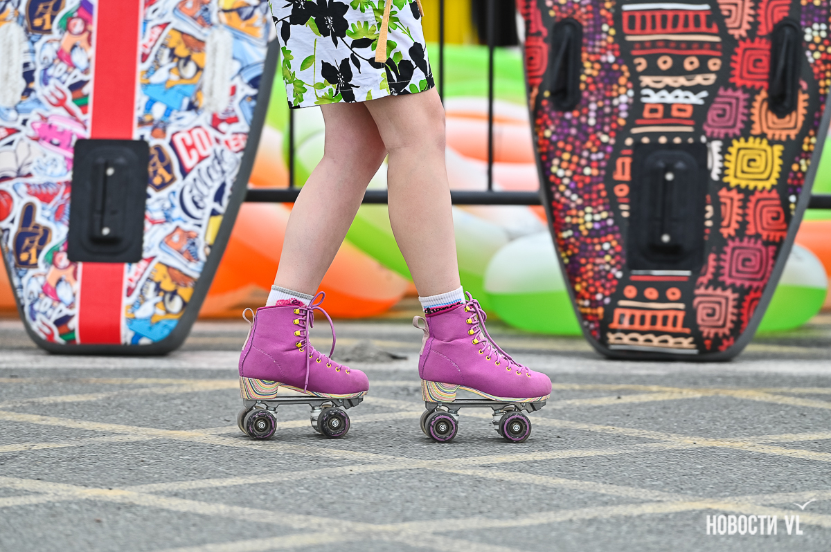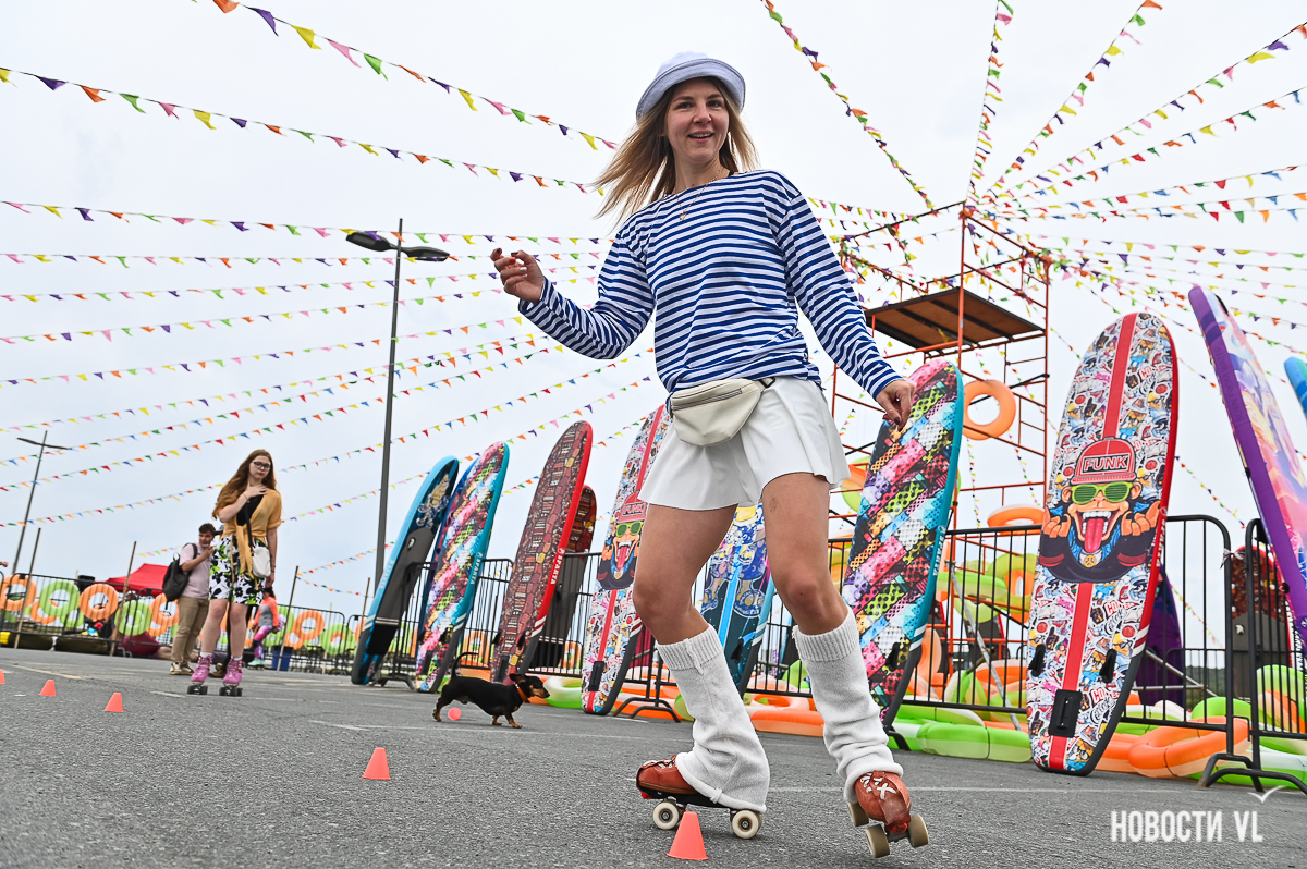 Громкая музыка 80-х и 90-х, сапы, надувные круги и яркие экзотические фотозоны – на самом деле и это даже ещё не всё. «На_Ролики фест» отметили совсем по-летнему в бухте Ахлёстышева. Здесь царит колоритная атмосфера, напоминающая настоящий праздник, которая буквально вытягивает из холодной и пасмурной погоды.