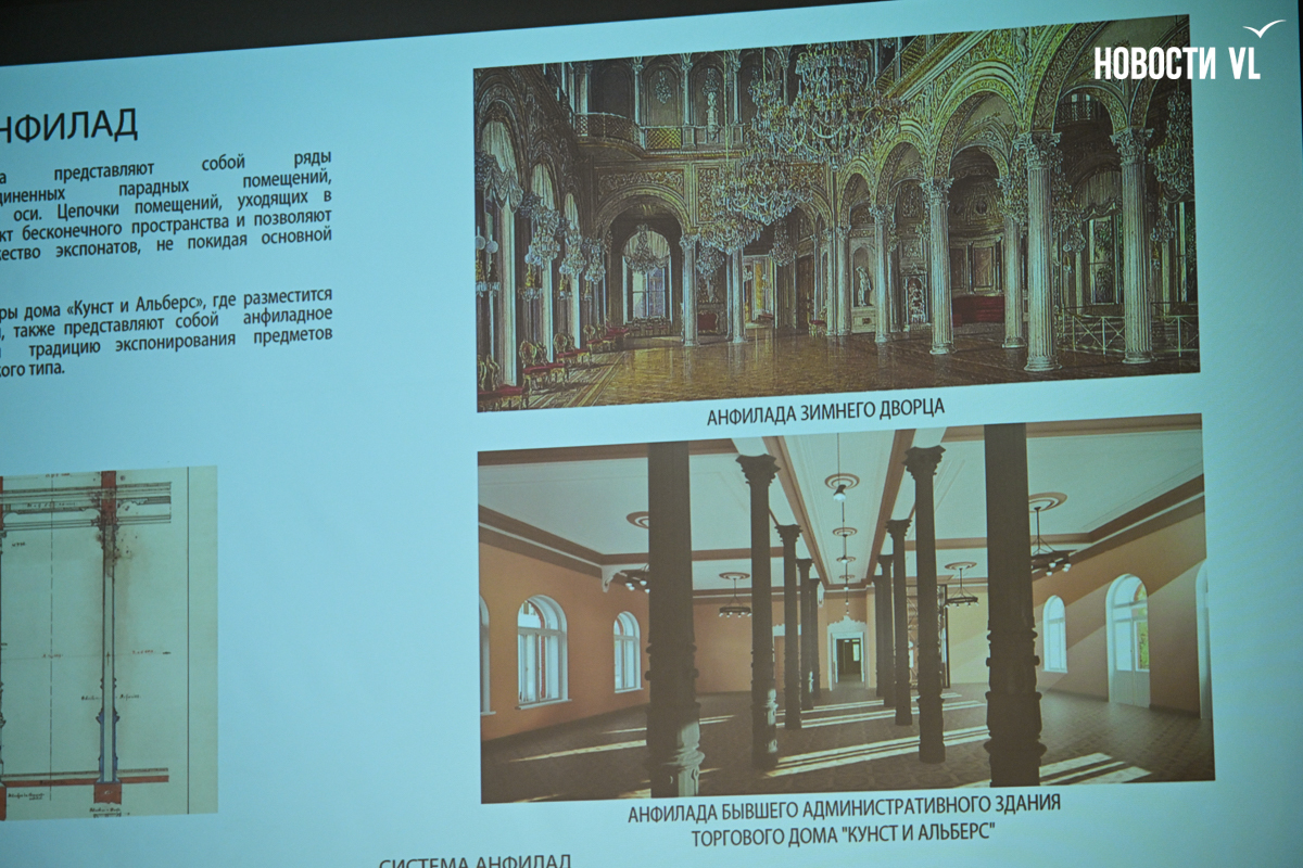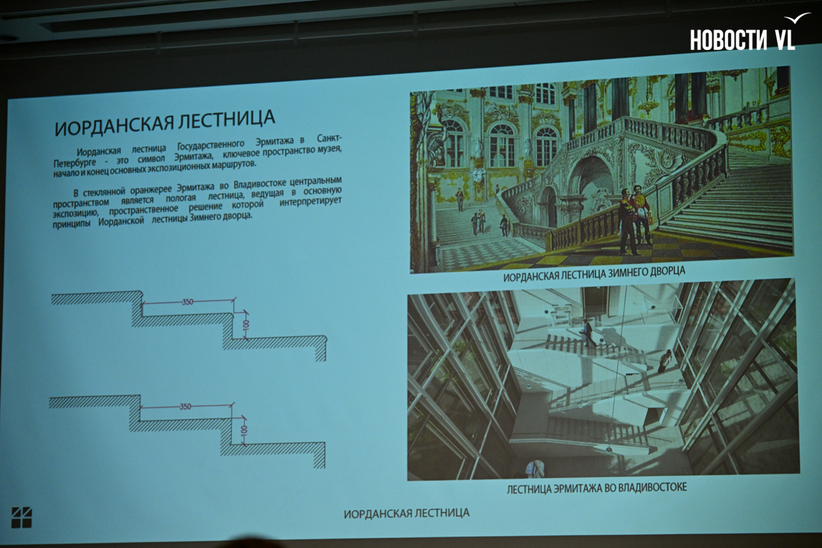 Свой проект архитекторы презентовали в завершающий день Дней Эрмитажа во Владивостоке. Вначале руководитель направления реставрации архитектурного бюро «Студия 44» Григорий Иванов напомнил, что торги проходили в конце прошлого года, и компании предложили в них поучаствовать из-за опыта работы с Эрмитажем – ранее компания делала проект Главного штаба на Дворцовой площади под филиал этого музея. Есть в портфолио фирмы и другие примеры музейного проектирования.
