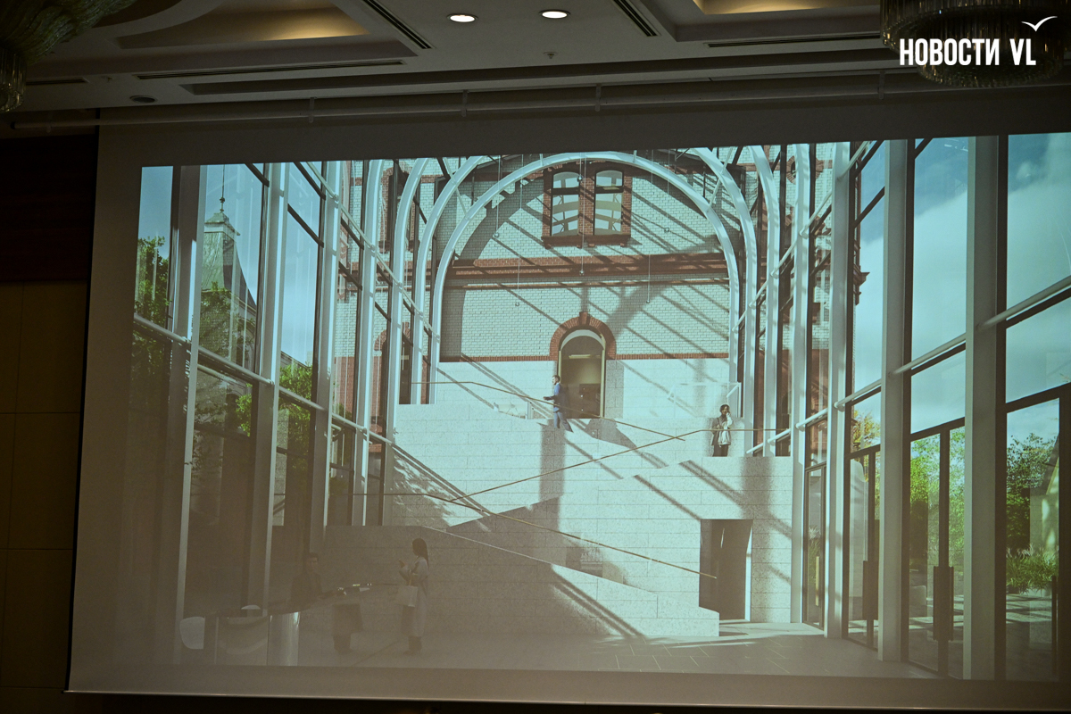 «Хочется, наверное, всем спросить, как можно сопоставить данные образы с тем, что было построено совершенно другими архитекторами во Владивостоке и имело изначально другое назначение? Однако оказалось, что все эти элементы, с поправкой на масштаб, можно воплотить. Например, на здании торгового дома Бриннера, если смотреть со стороны площади, есть аркада, поэтому это место мы выбрали для главного входа. Висячие сады – очень узнаваемый элемент, но здесь отсылка на них стала возможна как раз благодаря стеклянной вставке. Этот материал позволит со Светланской открыть вид на сквер во внутреннем дворе. Нашли мы и место для лестницы, по виду напоминающую иорданскую. Что касается анфилад, то нам очень повезло – в административном здании «Кунста и Альберса» именно такое расположение помещений», – рассказала Иляна Доника.