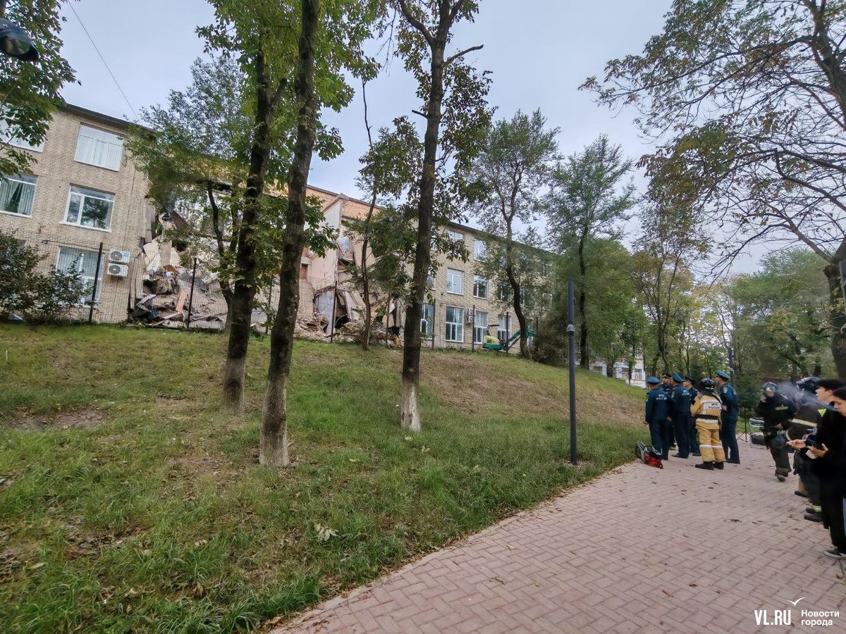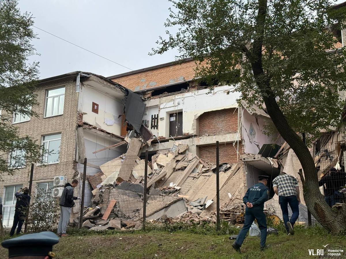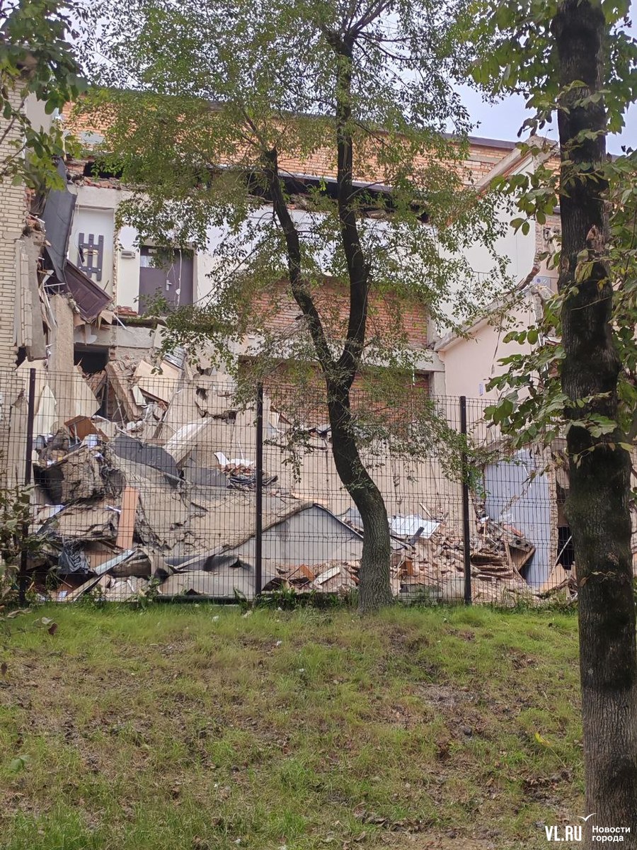 Обновление 08:42: Следком Приморья возбудил уголовное дело по факту обрушения здания. Сообщается, что оно произошло утром 3 октября при проведении строительно-монтажных работ. Дело возбуждено по части 1 статьи 216 УК РФ (нарушение правил безопасности при ведении строительных или иных работ). Уточняется, что во время обрушения никто не пострадал.