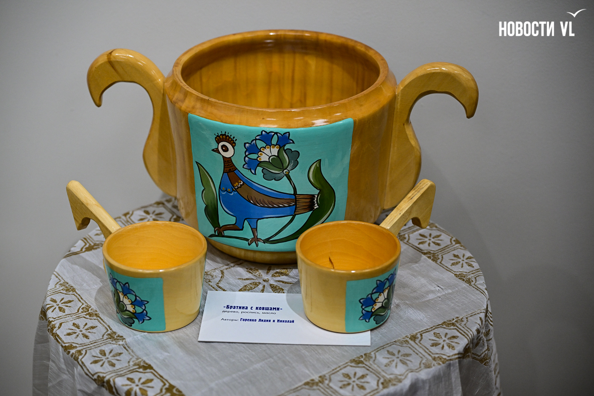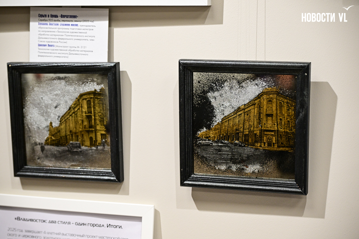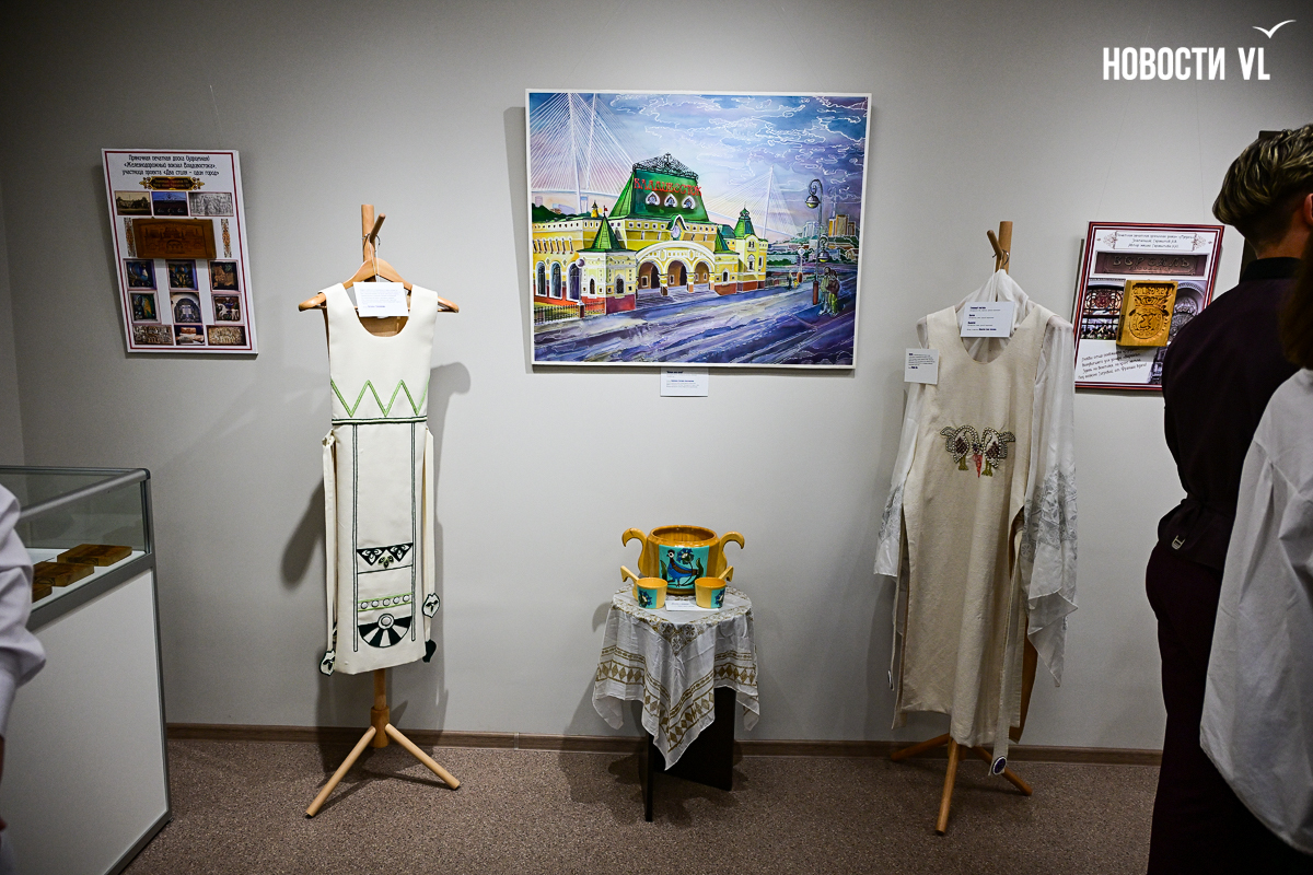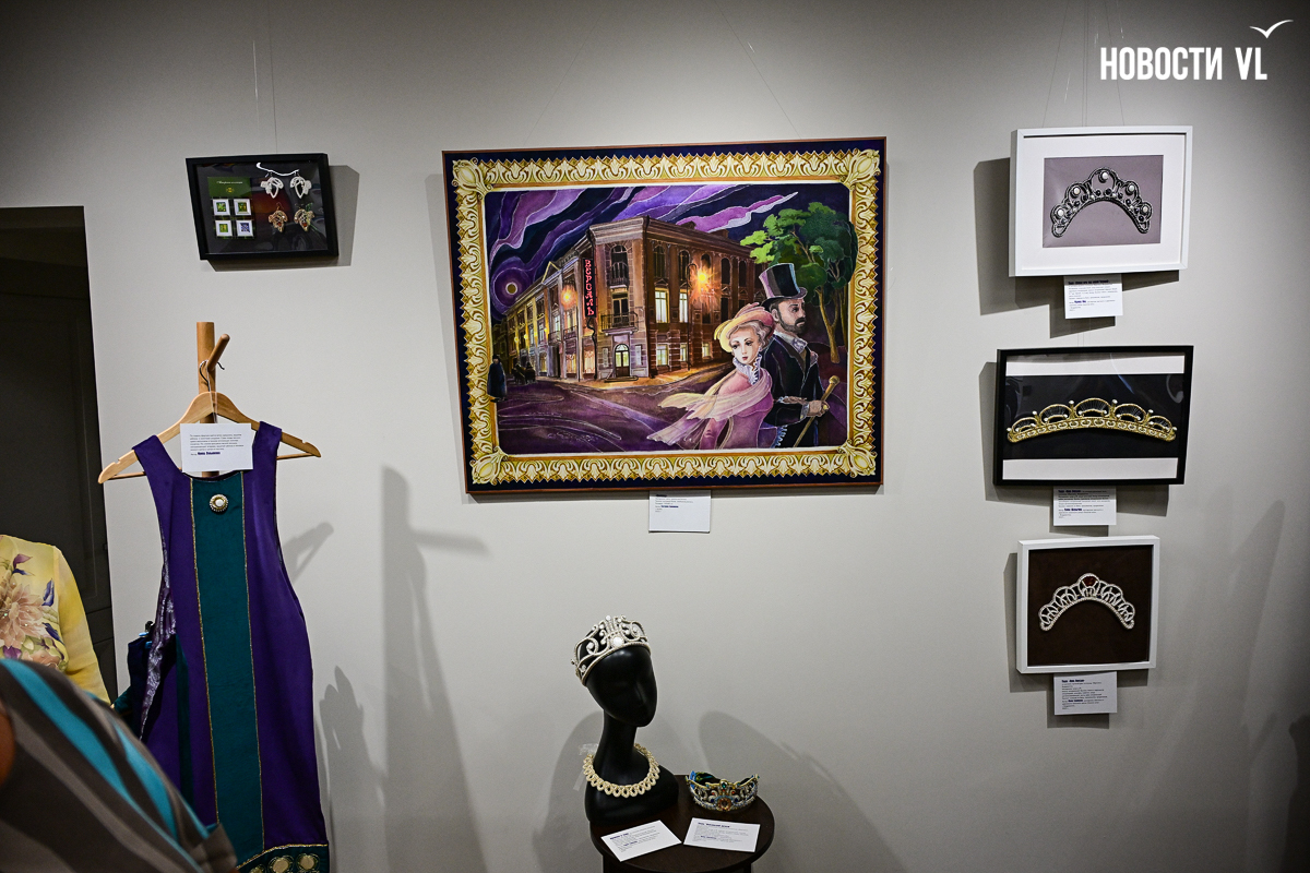 Обновлённый дом уже работает – здесь открыли финальную выставку «Владивосток: два стиля – один город». Проект, авторами которого стала мастерская светского и церковного золотного шитья «Золотая нить», длился четыре года и объединил более шестидесяти мастеров и художников со всего Приморья. Мастера постарались показать, как история города переплетается с наследием всей страны.