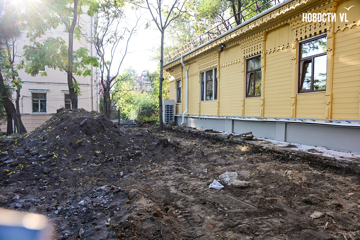 Во Владивостоке после капитального ремонта открылся краевой центр народной культуры. Здание на Пушкинской, 25 – памятник культурного наследия регионального значения. Одноэтажный деревянный дом построили в конце позапрошлого века. Он украшен резьбой в стиле сибирского зодчества. Его привели в порядок, а территорию вокруг закончат обустраивать в ноябре: заменят бетонную лестницу, разобьют сквер, отчистят и отреставрируют каменную подпорную стену.