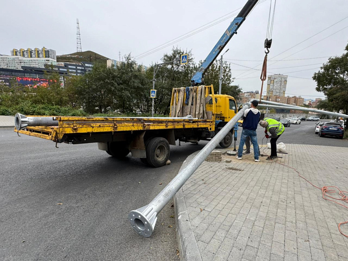 На перекрёстке улиц Жигура, Тобольской и Аллилуева во Владивостоке приступили к установке полноценного светофора. Сейчас регулировщик работает тут в «половинчатом» режиме – притормаживает поток со стороны Котельникова. Но в рамках реконструкции Жигура решили подкорректировать схему, и для каждого направления будет предусмотрена своя фаза проезда. Завершить работы на участке планируется до конца октября.